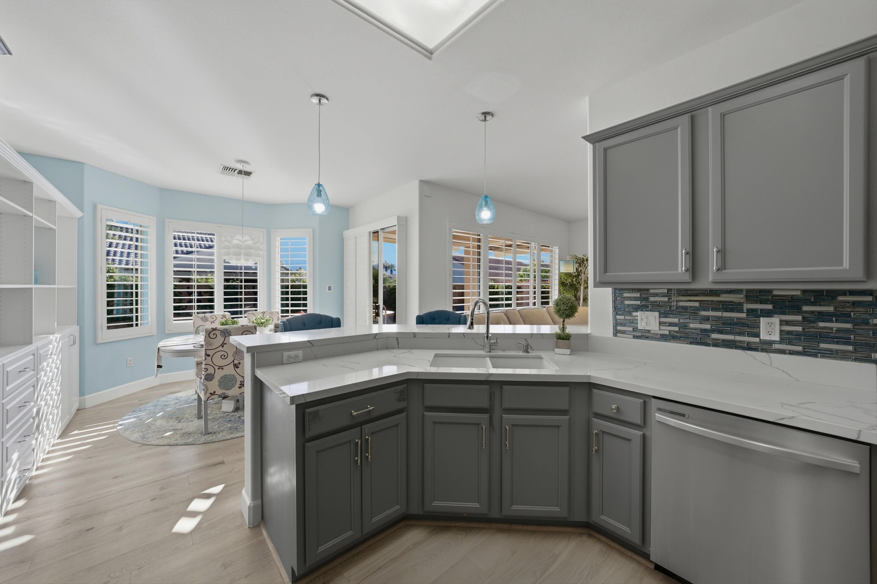 Welcome to 78301 Bovee Circle, a beautifully updated Barbados plan located on a desirable corner lot in Sun City Palm Desert. This home offers privacy, natural light, and a wonderful indoor-outdoor flow that makes desert living effortless! The south-facing rear yard is a true highlight. Elevated above the home behind it, the backyard enjoys extra privacy, wonderful natural light, and peekaboo mountain views. In 2024, a private saltwater pool and spa were added, creating an incredible retreat with covered patio seating, expandable shade coverings, turf, and easy-care landscaping. It is the perfect place to unwind, whether you are enjoying our amazing desert sunsets or relaxing through sun-filled days. Inside, the home has been tastefully updated with neutral laminate flooring and a cozy, modern feel throughout. The kitchen features quartz countertops, a gorgeous tile backsplash, refreshed cabinetry, stainless steel appliances, and additional built-in cabinetry with an abundance of storage! The primary suite offers a spacious walk-in closet and an upgraded bath with a conveniently designed walk-in tub and shower combo. The guest bathroom has also been fully updated with a designer tile shower, a newer vanity, and fresh finishes. This home sits just a short distance from the popular Sunset View Clubhouse, offering convenience along with comfort. With stylish upgrades, a stunning backyard, and the lifestyle Sun City is known for, this property delivers the ideal desert retreat!