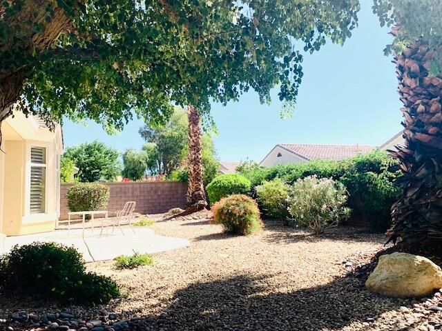 Welcome to the highly sought after Tangier model - south facing, in the guard gated, 55+ Sun City golf resort. Enjoy golf, community pools and spa throughout, as well as the club house and it's amenities, including a restaurant and many activities. This is a meticulously maintained and nicely upgraded main home, featuring two bedrooms and two baths, separate dinning area and fire place, with a detached casita (extra bedroom or office, with private bath). The casita features a nice built in office space with desk area and storage, and easy access to the main home from the courtyard. The main home has upgraded kitchen cabinets, granite counters throughout and upgraded baths. Custom built ins in master bedroom and living area, as well as the master bath gives you a lot of extra storage. The home's front yard has recently installed grass turf, so you will always have a green, low maintenance, front yard. The back yard has fruit trees, a nice large shade tree with other green vegetation, all on automatic drip system. Enjoy your morning coffee on the shaded covered south facing patio. This home is a must see. It will not disappoint. Furnishings negotiable.