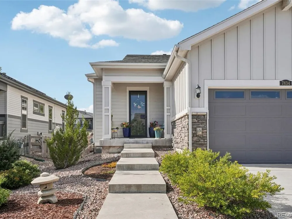 Welcome to 7834 Plateau Creek Lane, a beautifully designed half-duplex in the sought-after Sterling Ranch community. This spacious home offers 3 bedrooms, 2.5 bathrooms, and a finished basement, blending comfort, functionality, and modern style. Step inside to find an open and inviting floor plan filled with natural light. The well-appointed kitchen boasts abundant cabinet and countertop space including a generous island and pantry for convenience. Flexible layout flows seamlessly between the kitchen, dining and living areas, creating the perfect setting for everyday living and entertaining. Access the covered deck to enjoy a low maintenance fenced backyard. The primary suite offers a private retreat with a private spa like bath hosting two sinks and an oversized shower with bench seat. Walk through the spacious primary closet to access the laundry room! Secondary bedroom on the main level utilizes the full hall bath. The finished basement expands your living options, whether you need a media room, home gym, or office. The third bedroom and additional 3/4 bath offer privacy for family or guests, and the unfinished space provides additional storage. Located in Sterling Ranch, you’ll enjoy access to neighborhood parks, trails, and community amenities, all while being just a short drive from shopping, dining, and major highways. The Overlook Clubhouse boasts 4900 square feet of modern facilities, including a great hall with catering kitchen, fitness center with in-house classes, two outdoor pavilions and a beautiful deck area overlooking the spacious outdoor pool with family dressing rooms nearby. You'll enjoy use of the new pickleball courts and playground at Prospect Park. Sterling Ranch offers a destination lifestyle, this home is move-in ready and waiting for you!