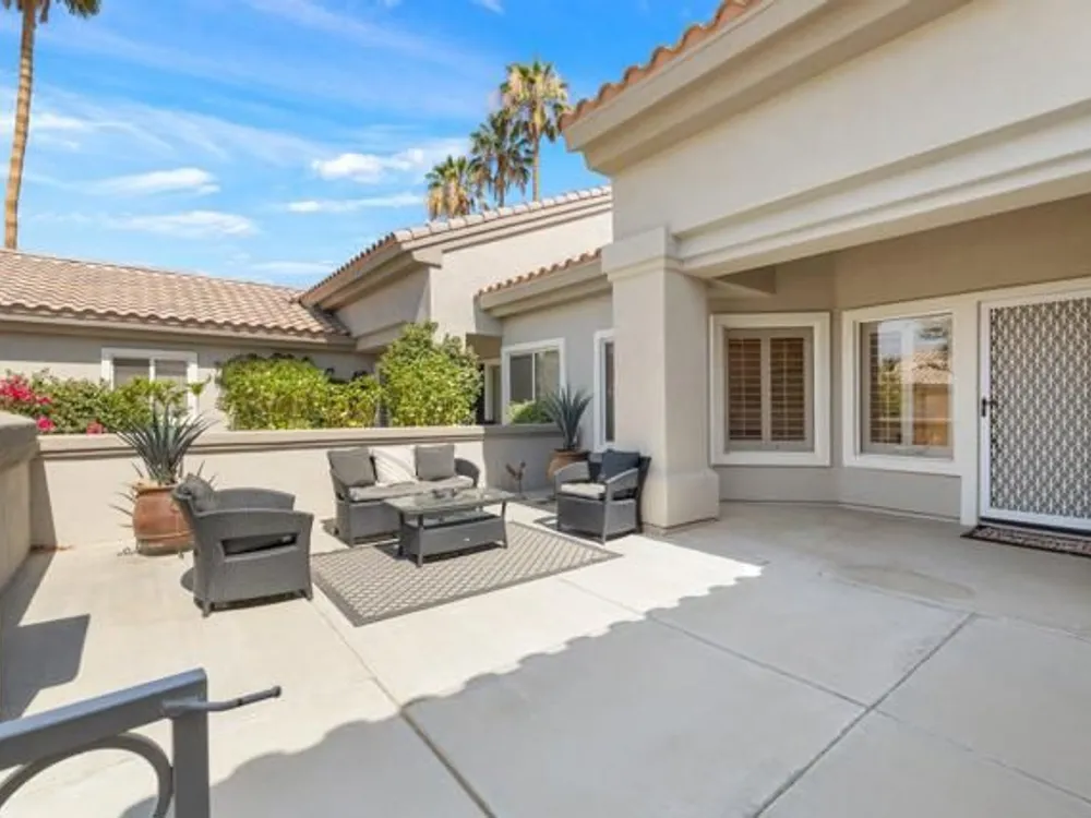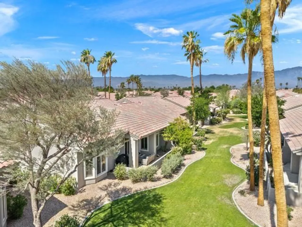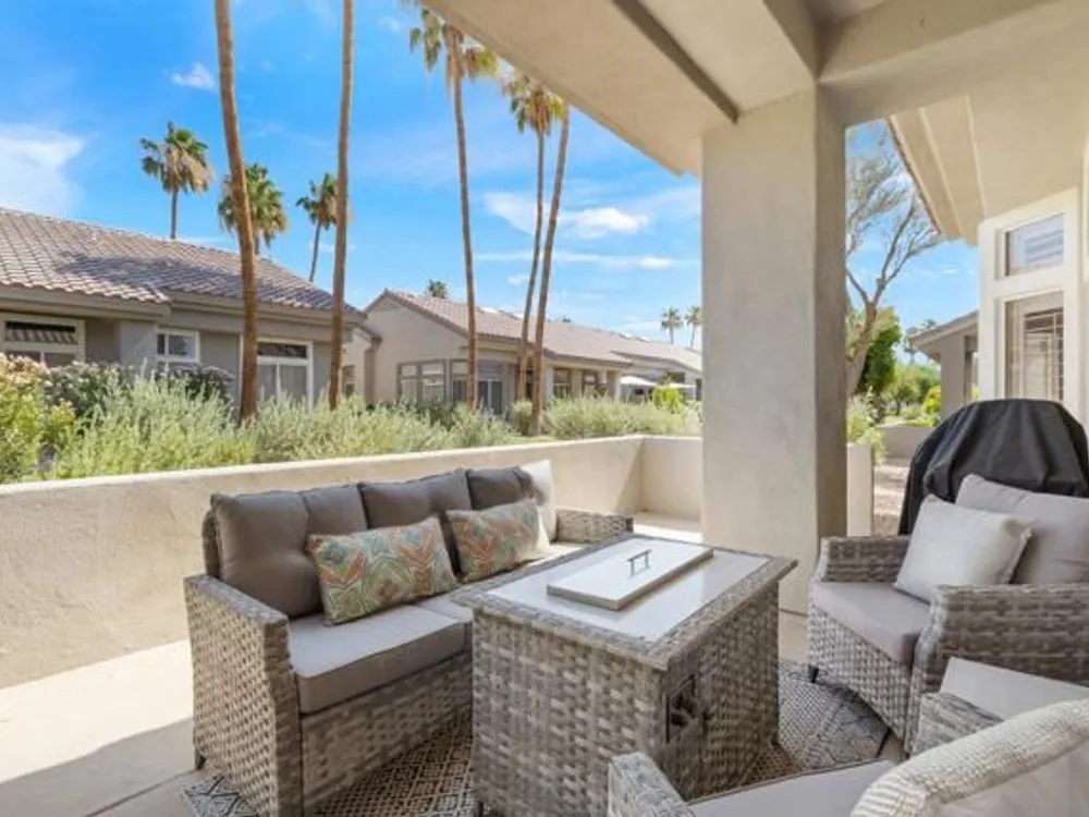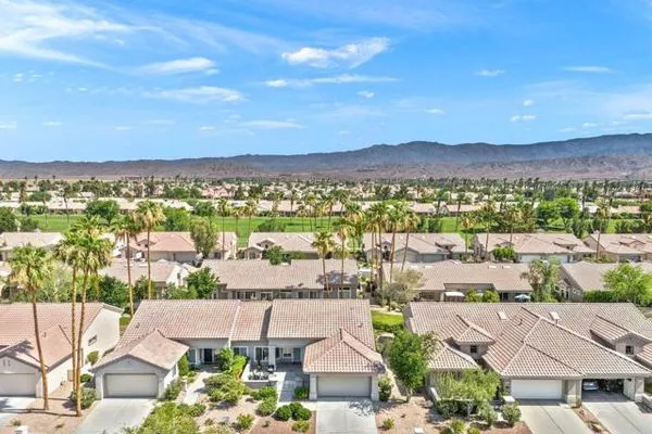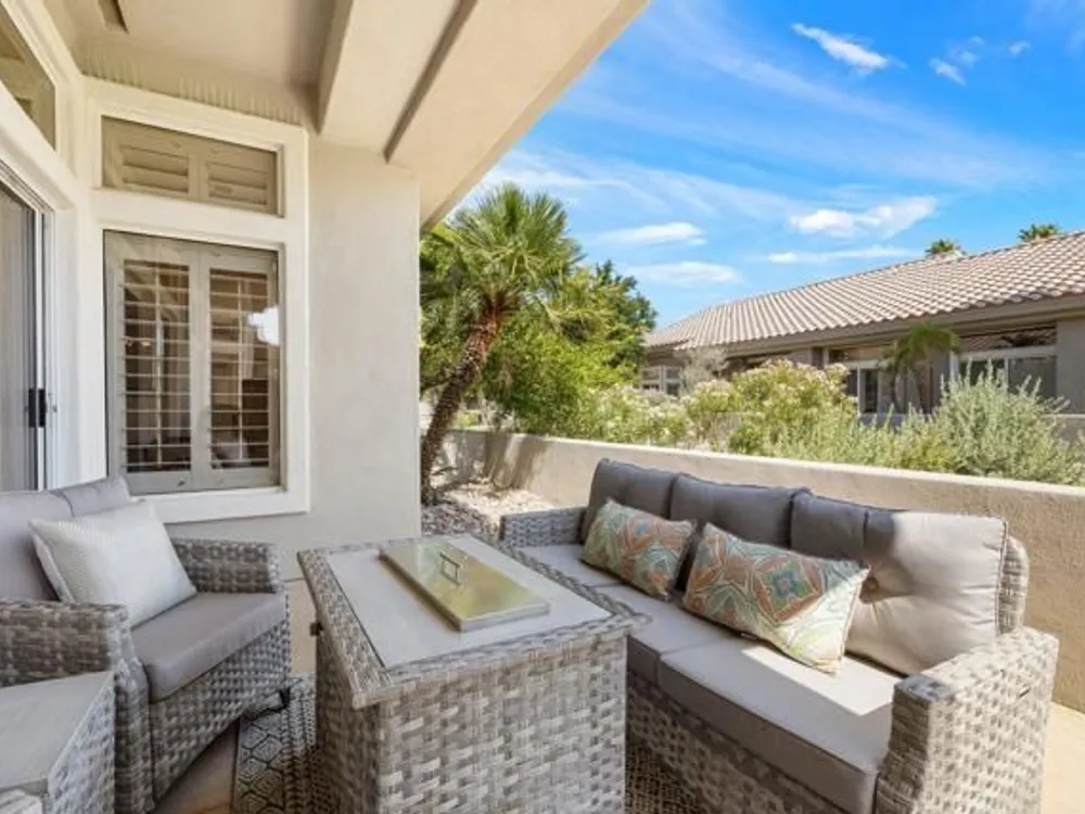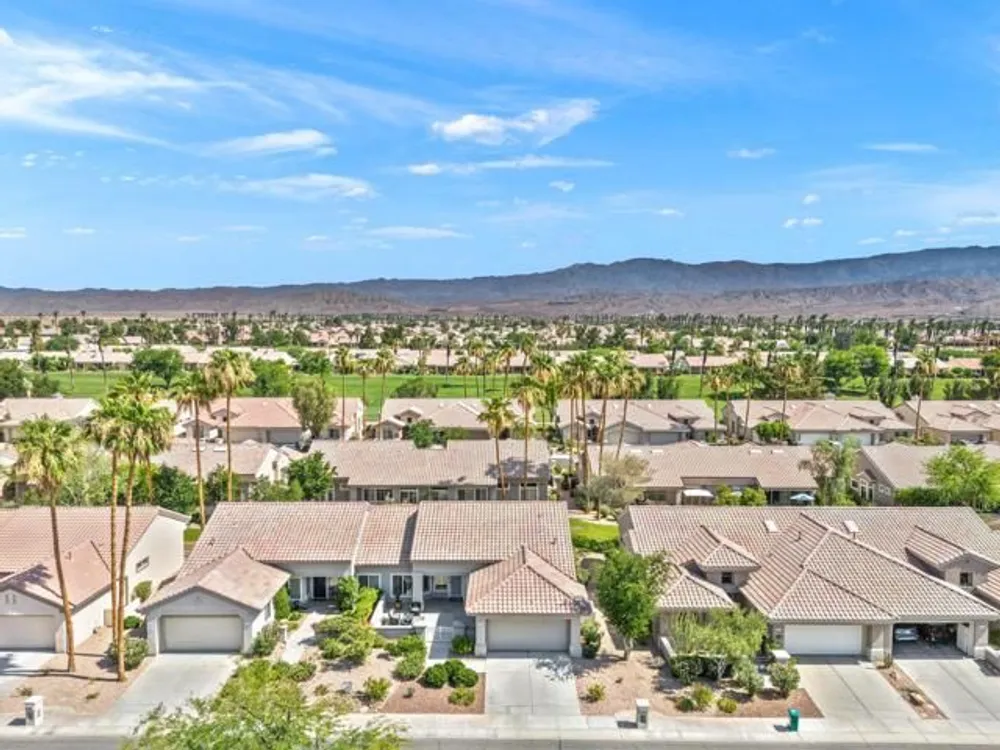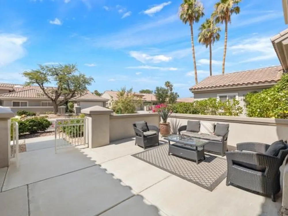 Located in the best 55+ community in the valley, Sun City Palm Desert, The Topaz is a fabulous ''patio home'' floor plan. It is an updated duplex on a lush greenbelt with the landscaping maintained by the HOA. It has new tile floors, plantation shutters. 2 bedrooms, 2 bathrooms and a 2 car garage. You'll enter through a large south facing courtyard, upgraded landscaping and new exterior paint. Going into the home, you'll immediately see a great view out to the greenbelt. The back patio faces cool north, for your afternoon BBQ's. The kitchen lies between the dining room and the cozy kitchenette. The master bedroom has a bay window that views to the greenbelt and has a nicely updated bathroom, with a custom tile shower, double quartz vanity, walk-in shower, and upgraded fixtures. The guest bedroom is adjacent to the 2nd full bathroom that is also updated, and views the courtyard. The laundry room has upper cabinets and includes the washer and dryer. The 2-car garage has a new garage door and opener, NEWER HVAC SYSTEM WITH A HEAT PUMP, and hot water tank, This ''carefree'' home is perfect for the person who doesn't want to do yardwork anymore. It can be locked up and left with confidence that it will be taken care of. SUN CITY PALM DESERT IS ALL ABOUT LIFESTYLE!! It has many clubs, activities, amenities, and low HOA dues. Play at 2 championship 18-hole golf courses and practice facilities, pickle ball, tennis, softball, bocci ball, an 18-hole miniature golf course, an honor library, arts and crafts, a ballroom for special entertainment, and 4 saltwater pools kept at 87 degrees with hot tubs. Enjoy 2 great restaurants, a martini/coffee bar, and even a post office. There is a newly renovated classy indoor/outdoor bar with fire tables to enjoy the awesome views and our beautiful desert weather.