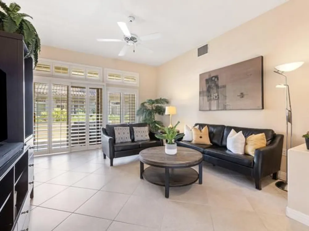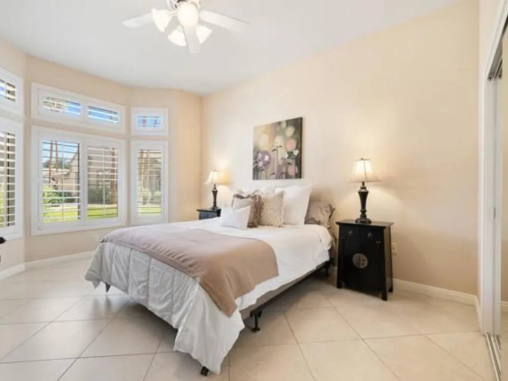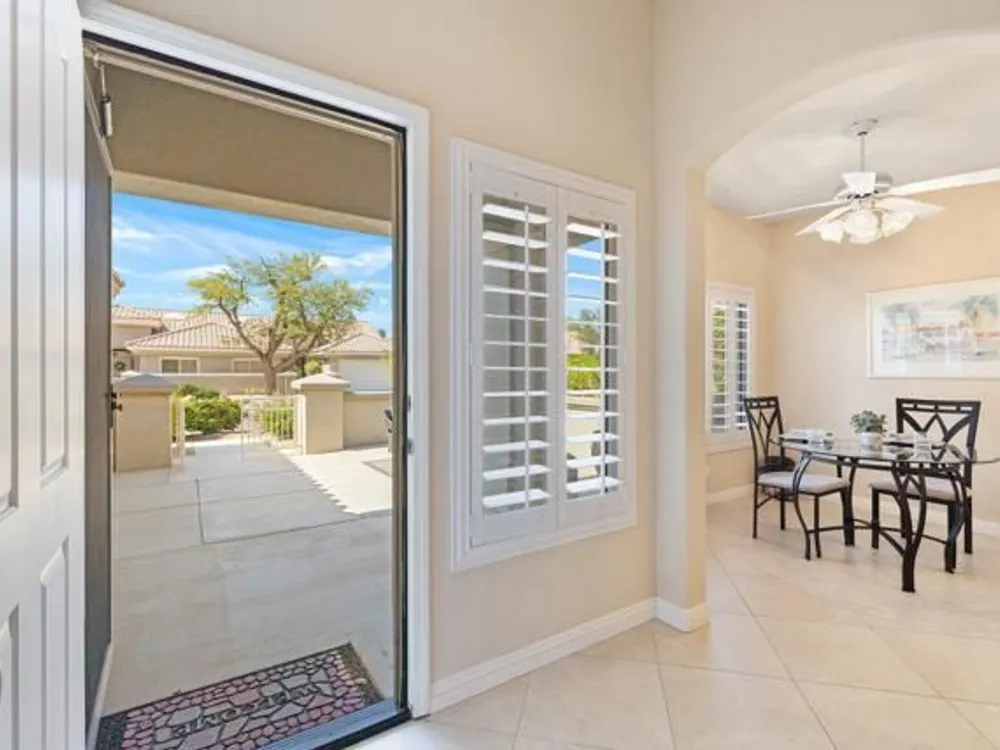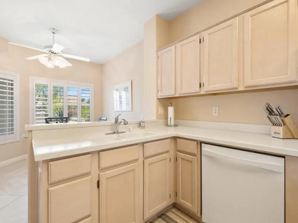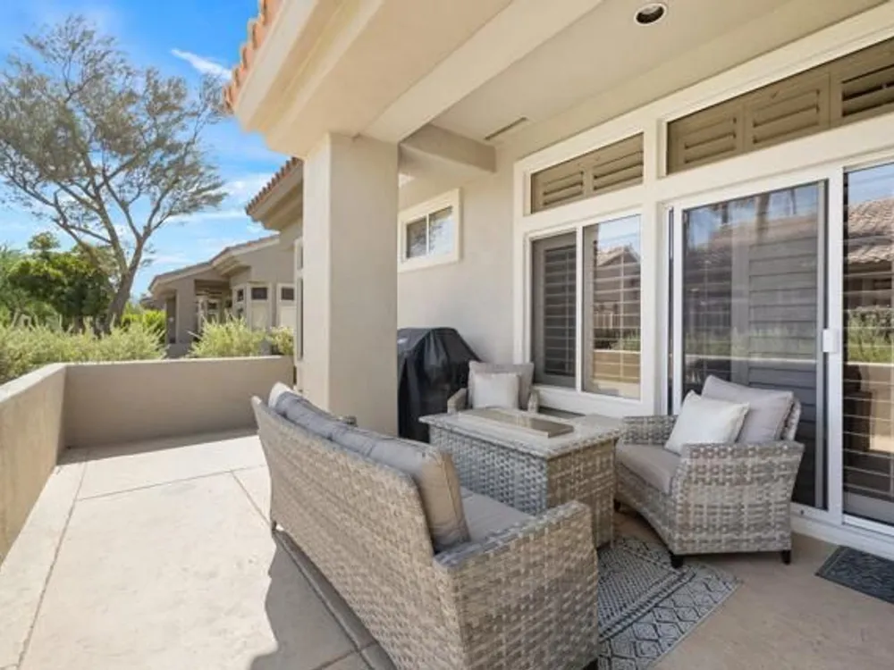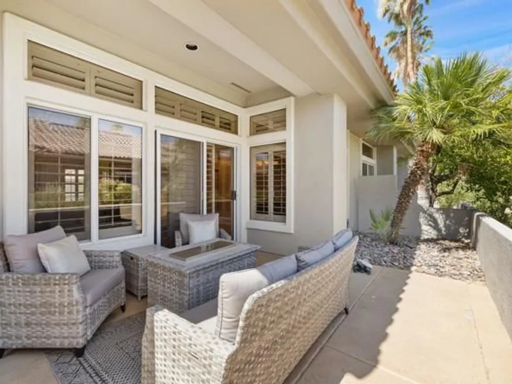 Located in the best 55+ community in the valley, Sun City Palm Desert, The Topaz is a fabulous ''patio home'' floor plan. It is an updated duplex on a lush greenbelt with the landscaping maintained by the HOA. It has new tile floors, plantation shutters. 2 bedrooms, 2 bathrooms and a 2 car garage. You'll enter through a large south facing courtyard, upgraded landscaping and new exterior paint. Going into the home, you'll immediately see a great view out to the greenbelt. The back patio faces cool north, for your afternoon BBQ's. The kitchen lies between the dining room and the cozy kitchenette. The master bedroom has a bay window that views to the greenbelt and has a nicely updated bathroom, with a custom tile shower, double quartz vanity, walk-in shower, and upgraded fixtures. The guest bedroom is adjacent to the 2nd full bathroom that is also updated, and views the courtyard. The laundry room has upper cabinets and includes the washer and dryer. The 2-car garage has a new garage door and opener, NEWER HVAC SYSTEM WITH A HEAT PUMP, and hot water tank, This ''carefree'' home is perfect for the person who doesn't want to do yardwork anymore. It can be locked up and left with confidence that it will be taken care of. SUN CITY PALM DESERT IS ALL ABOUT LIFESTYLE!! It has many clubs, activities, amenities, and low HOA dues. Play at 2 championship 18-hole golf courses and practice facilities, pickle ball, tennis, softball, bocci ball, an 18-hole miniature golf course, an honor library, arts and crafts, a ballroom for special entertainment, and 4 saltwater pools kept at 87 degrees with hot tubs. Enjoy 2 great restaurants, a martini/coffee bar, and even a post office. There is a newly renovated classy indoor/outdoor bar with fire tables to enjoy the awesome views and our beautiful desert weather.
