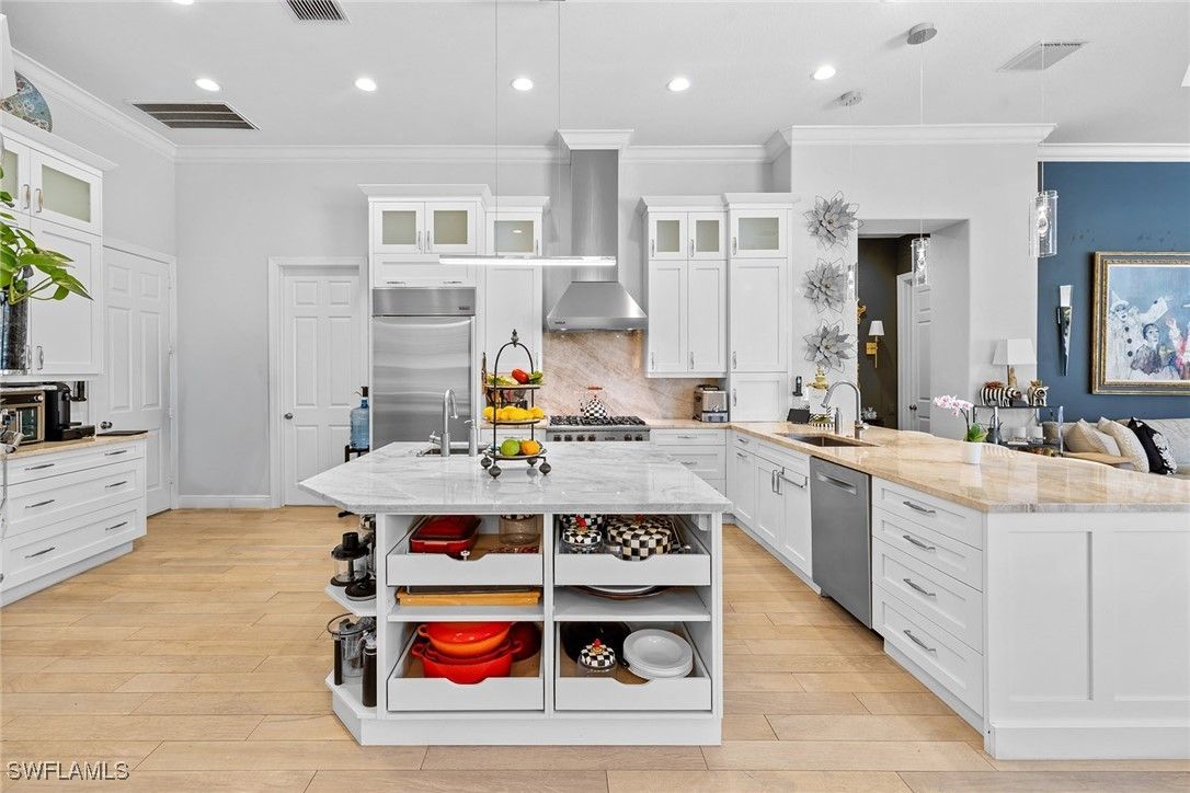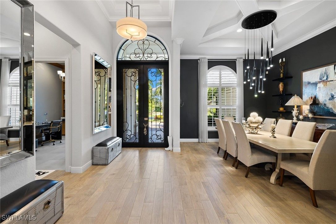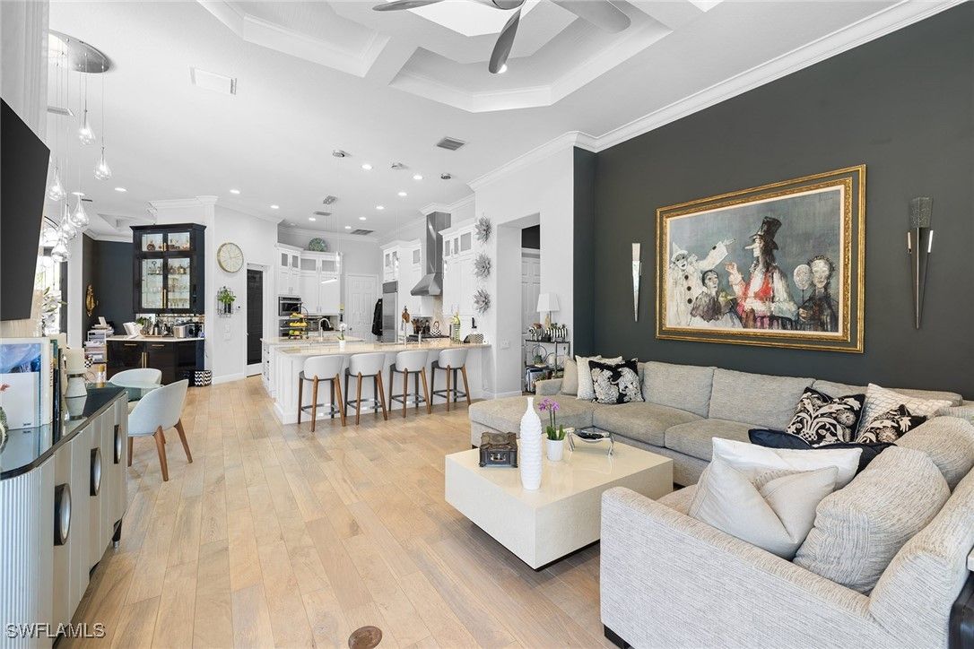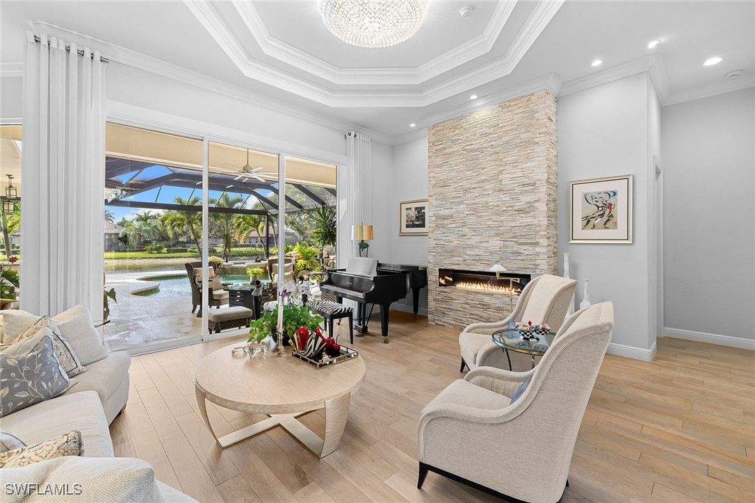 Remodeled custom home in The Classics at Lely Resort offering 4 bedrooms and 3.5 baths with desirable southern exposure. This residence showcases a spacious open layout and a 3-car garage, designed for both comfort and functionality. The gourmet kitchen is equipped with premium Viking gas appliances, complemented by custom lighting, designer touches, and custom ceilings throughout. Elegant finishes and thoughtful upgrades highlight the home’s modern appeal, making this property a standout in one of Naples’ most sought-after communities. A whole-house generator and 500-gallon buried propane tank provide peace of mind, while outdoor living is elevated with a custom pool and spa plus a fully equipped outdoor kitchen — perfect for entertaining year-round. Lely Resort is home to three championship golf courses — two public and one private — along with optional membership at the award winning Players Club & Spa, which is available but not mandatory.