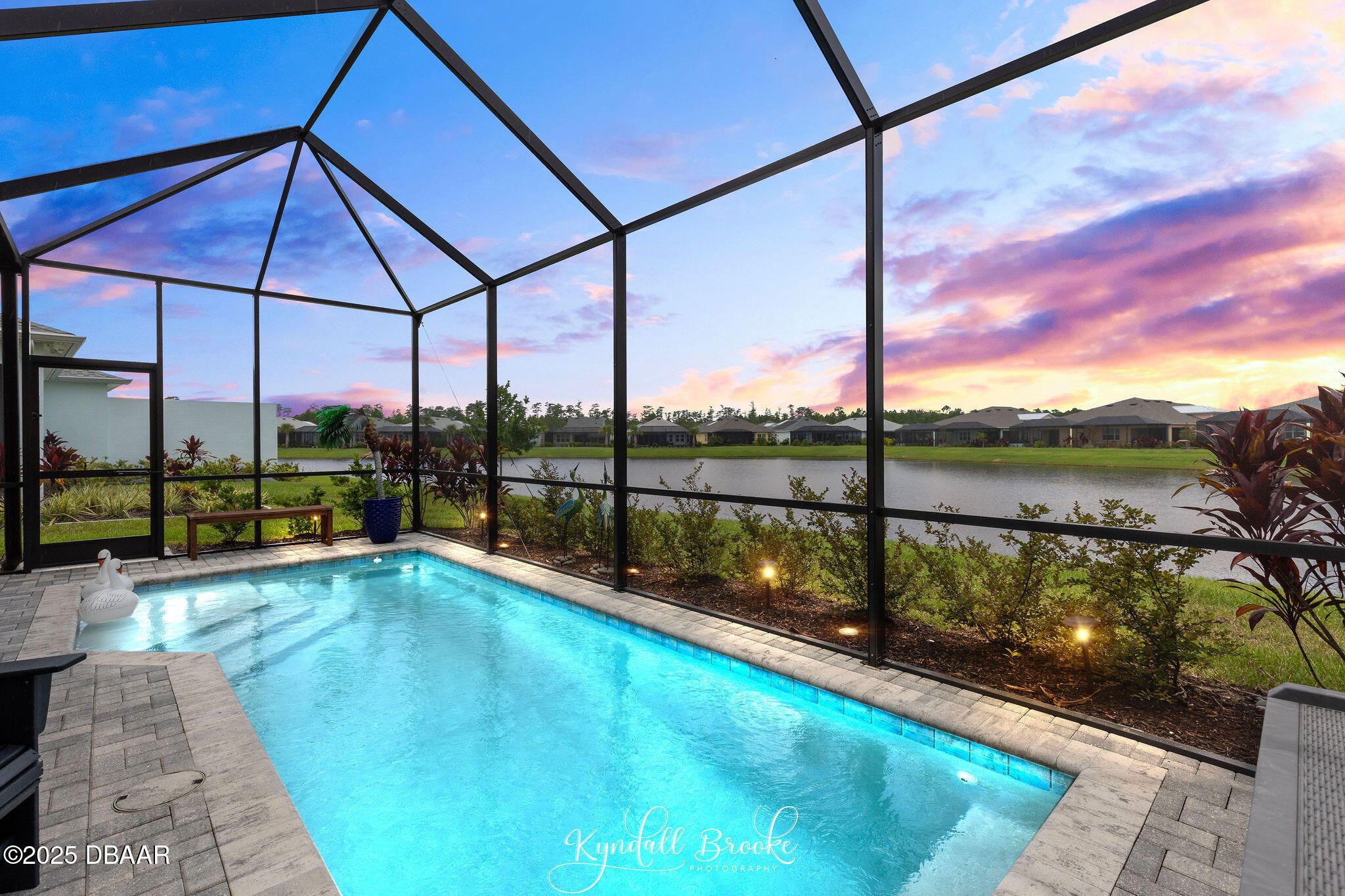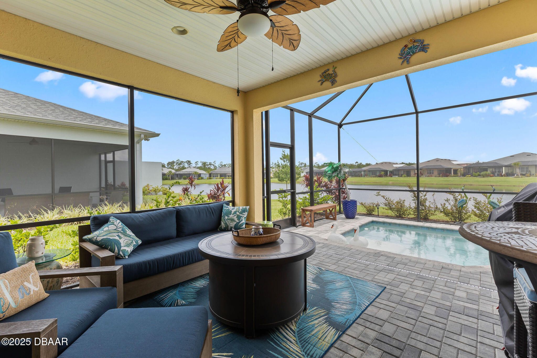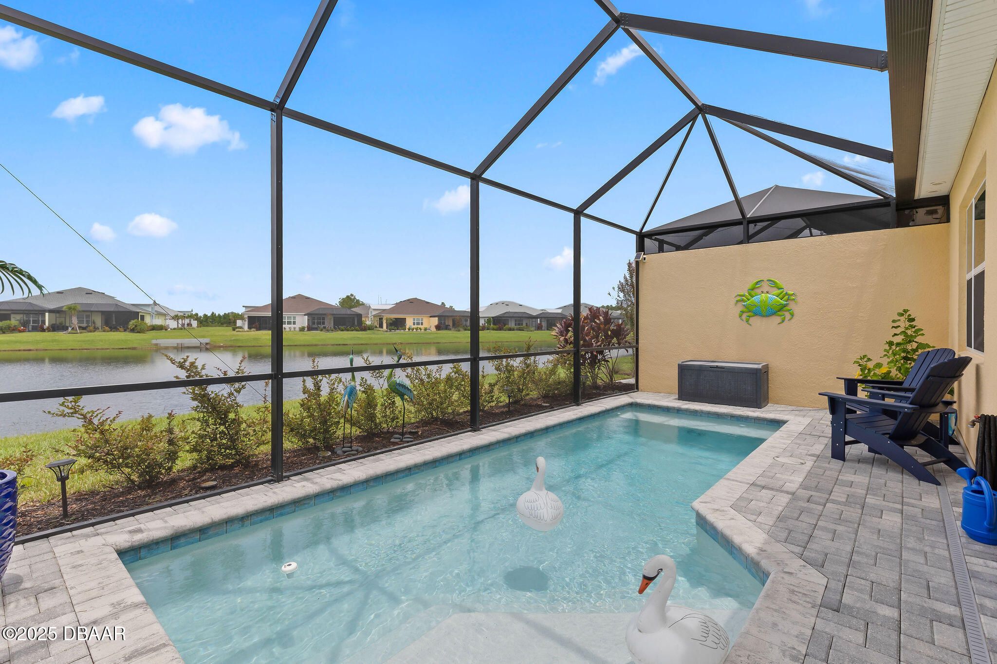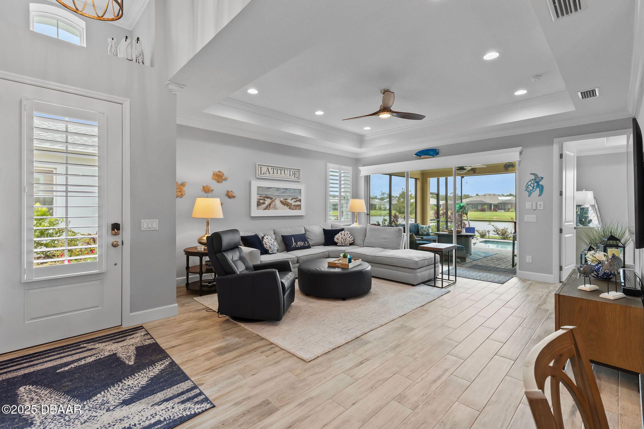 This one is a showstopper! Stunning Antigua villa overlooking a serene pond and featuring its own private pool—a rare find in Latitude Margaritaville! No expense was spared in the upgrades throughout this beautifully designed home. Enjoy Chesapeake Bay tile flooring, wide baseboards, and crown molding in every room, along with plantation shutters for a clean, coastal feel. The chef's kitchen offers 42'' white cabinets, gas cooktop, and quartz countertops throughout. The spacious primary suite includes a custom closet system, and the laundry room features a California Closet system for maximum organization. Step outside to the extended lanai, perfect for relaxing or entertaining while taking in the peaceful pond views and enjoying your private pool. Located in the award-winning Latitude Margaritaville 55+ community, where you'll enjoy world-class resort-style amenities! Amenities include pools, restaurant & bar, fitness center, pickleball, tennis, dog park, live entertainment and access to the private beach club. This is the lifestyle you've been dreaming of!