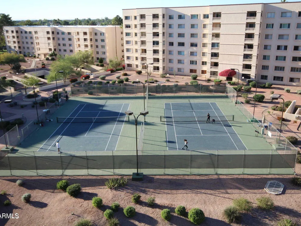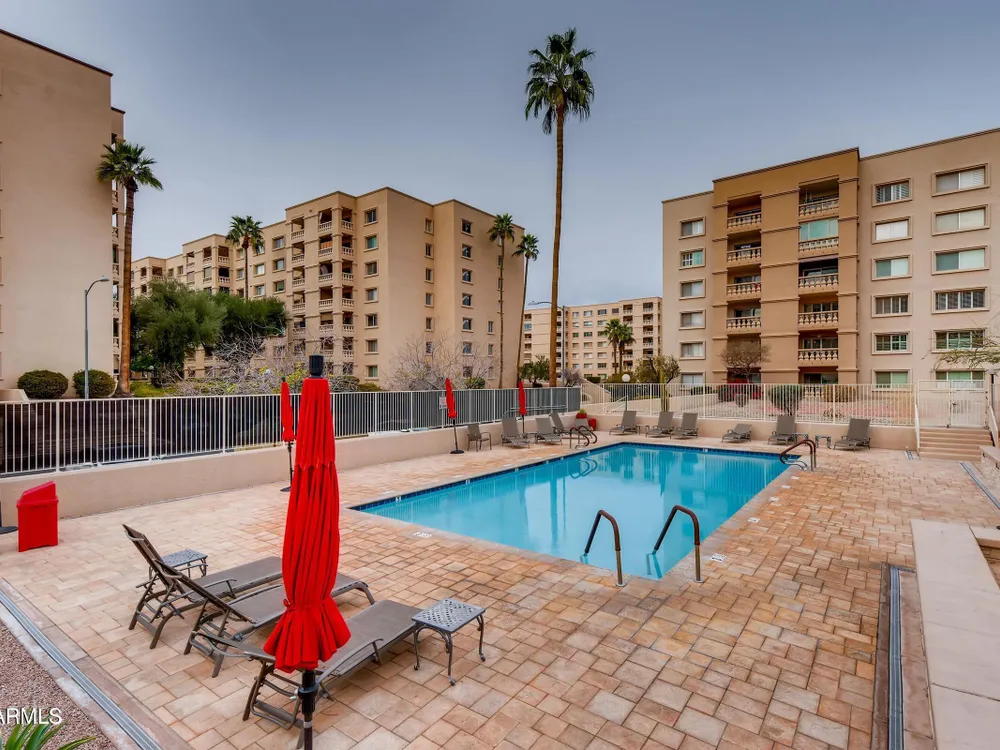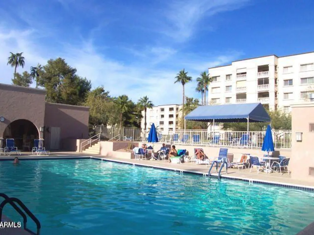 HONEY, STOP THE CAR! Affordable Old Town living with a million-dollar lifestyle. Why settle for ordinary when you can have it all? This light and bright unit delivers the views everyone wants — lake, fountains, and Camelback Mountain — from the most sought-after building in the community. Even better, your HOA covers everything: Utilities, free 9-hole golf, tennis, 3 heated pools and spas, fitness center, library, art and ceramics studios, wood shop, clubs, games, business center and more. Add in 24/7 guard-gated security, newer windows and carpet, and a location just blocks from Fashion Square, Old Town dining, galleries, and the 13-mile bike path — it all adds up to unbeatable value. Why keep driving? This one is worth stopping for.
