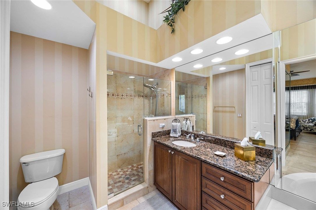 Live in refined luxury in this bright second-floor coach home in the desirable Hawthorne neighborhood at Lely Resort. This beautifully appointed three-bedroom plus den, three-bath condominium is ideally positioned in the Classics with landscape view, offering unforgettable sunset vistas. Offered turnkey furnished, the residence features an open and inviting floor plan designed for effortless living and entertaining. The spacious great room flows seamlessly into the dining area and gourmet kitchen, creating an ideal gathering space. A thoughtfully designed split-bedroom layout provides exceptional privacy, with a large open owner's suite, a generous guest suite and a versatile bonus room that can serve as a second owner’s suite, home office or media room. Notable upgrades include a private elevator, hardwood and ceramic tile flooring, granite countertops and a recently installed roof, ensuring comfort, style and peace of mind. Ownership includes membership to the award-winning Players Club & Spa, where residents enjoy a resort lifestyle with 13 tennis courts, two resort-style pools, a lap pool, bocce ball courts, a full-service spa, state-of-the-art fitness center and multiple dining options. Golf enthusiasts will appreciate access to two public golf courses, with the option to pursue private membership at prestigious Classics Golf & Country Club. Ideally located, this home is just minutes from Naples renowned Fifth Avenue dining and entertainment district, pristine white sand beaches and charm of Marco Island. Don’t miss the opportunity to make this exceptional residence your private Florida retreat.
