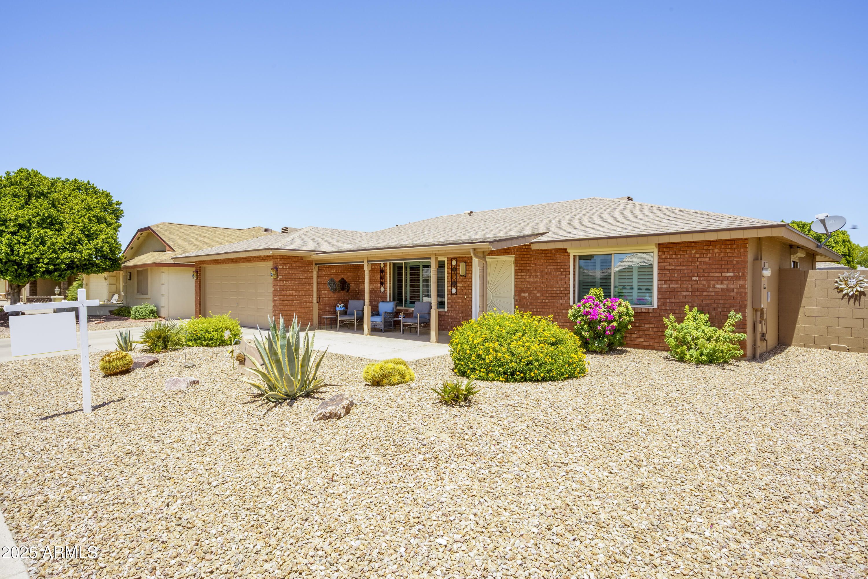 All big itmes upgraded, wood & tile floors, SS Appliances, gorgeous granite countertops! Sharp cabinets. Buyers favorites- Wood shutters! Big investment Roller Shelds. Custom, double hinged doors to patio( instead of sliders), from den and master bedroom! Handy for letting pets out! Tighter seal than sliders! Concrete coatings front & Back. Dynamite back yard leading to Fountain. Golf cart available. Hurry if you appreciate a split BR plan with two separate living areas for two TVs. ALLNEW WINDOWS and NEW front entry
