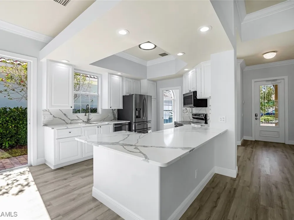 Welcome to your dream home in Verona Walk! This meticulously renovated single-family home offers a seamless blend of comfort and modern upgrades. Enjoy the Florida lifestyle with your own private pool, perfect for relaxing and entertaining. Inside, you'll find 3 bedrooms, 2.5 bathrooms, a versatile den, and a convenient 2-car garage. The heart of the home shines with brand-new stainless steel Samsung appliances, including a refrigerator, stove, microwave, dishwasher, washer, and dryer. Updates abound, including new flooring throughout, a new roof (2020), a new pool filter, a new hot water tank, and a fresh coat of paint. This Verona Walk gem is ready to move in and start enjoying the good life! Verona walk - single family house - with a pool - 3 bedroom 2.5 bathroom with a den - 2 car garage - completely renovated. New stainless steel Samsung refrigerator, stove, microwave, dishwasher, washer and dryer. new flooring throughout - new roof 2020 - new pool filter - new hot water tank - New paint throughout.