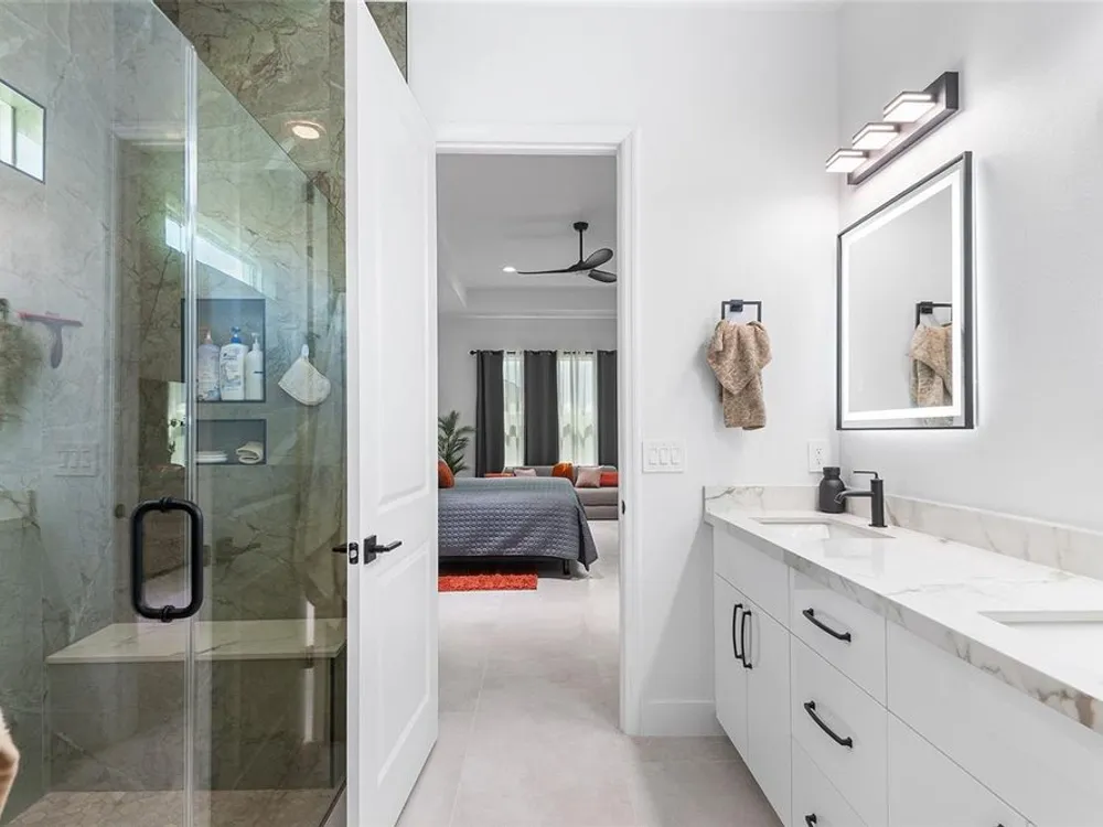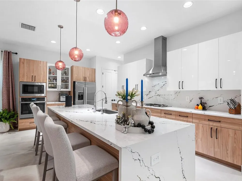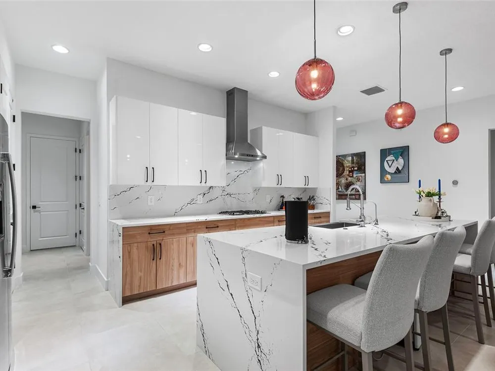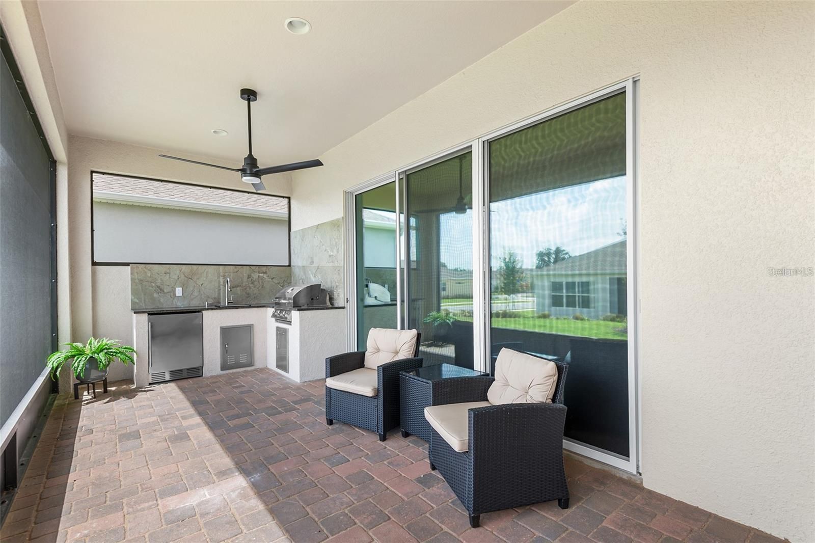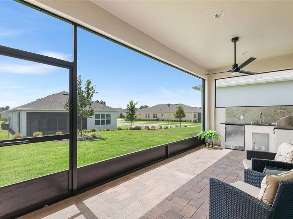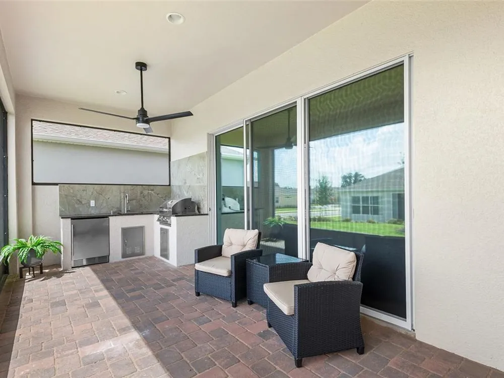 This stunning home, meticulously upgraded to embody luxury, welcomes you with low-maintenance, high-end tile flooring flowing seamlessly throughout. The gourmet kitchen, a chef’s dream, boasts top-of-the-line stainless steel appliances, including a built-in oven and gas cooktop, anchored by a massive oversized island adorned with exquisite stone that extends to the matching backsplash. The open-concept design effortlessly connects the kitchen to the dining space and living room, perfect for entertaining guests or enjoying quality time together. Just off the living room, a door leads to a spacious screened-in paver patio, complete with a remarkable outdoor kitchen featuring a beverage fridge, sink, and gas grill, ideal for al fresco dining. The expansive master bedroom serves as a serene retreat, complemented by an ensuite bath showcasing dual sinks, a striking stone countertop, modern fixtures, and a luxurious walk-in shower. Nestled in a vibrant community, this home offers access to an array of amenities, including tennis courts, a pool, clubhouse, shuffleboard, and more, with the added perk of discounted play at the renowned Mystic Dunes Golf Course. Beyond the community, you’re just minutes away from dining, retail, entertainment, and the magic of Disney, ensuring every convenience is within reach.