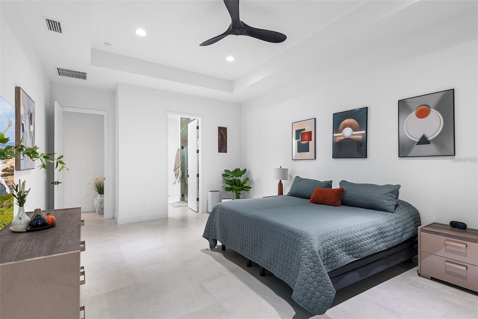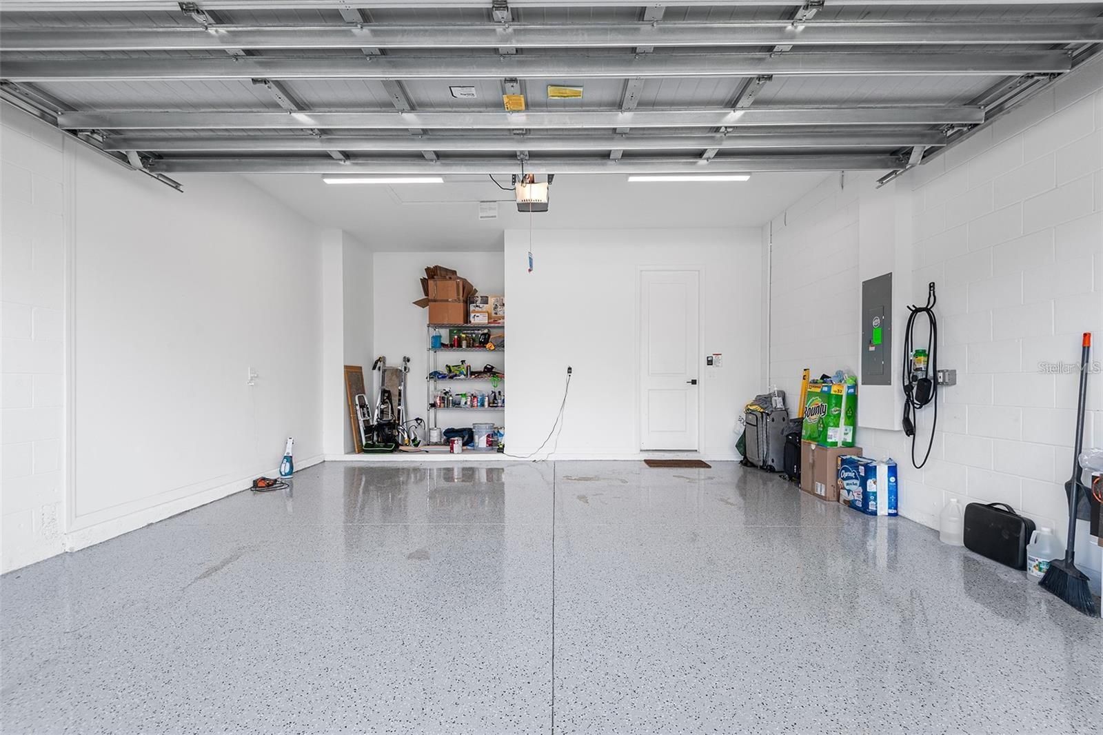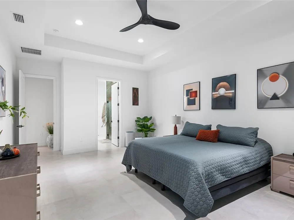 - Ceiling Fan(s), Eat-in Kitchen, High Ceilings, Kitchen/Family Room Combo, Living/Dining Room, Open Floorplan, Split Bedrooms, Stone Counters, Thermostat, Walk-In Closet(s)