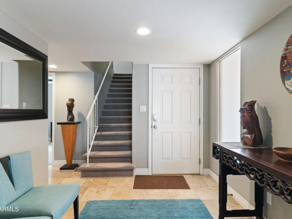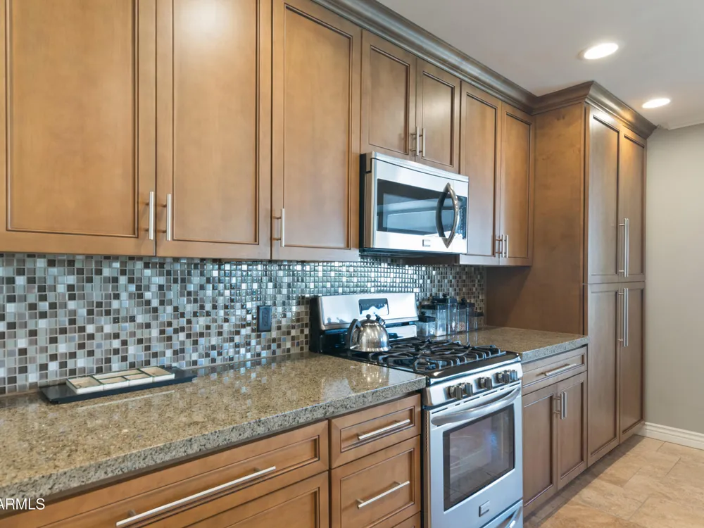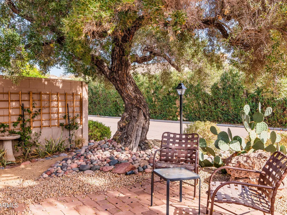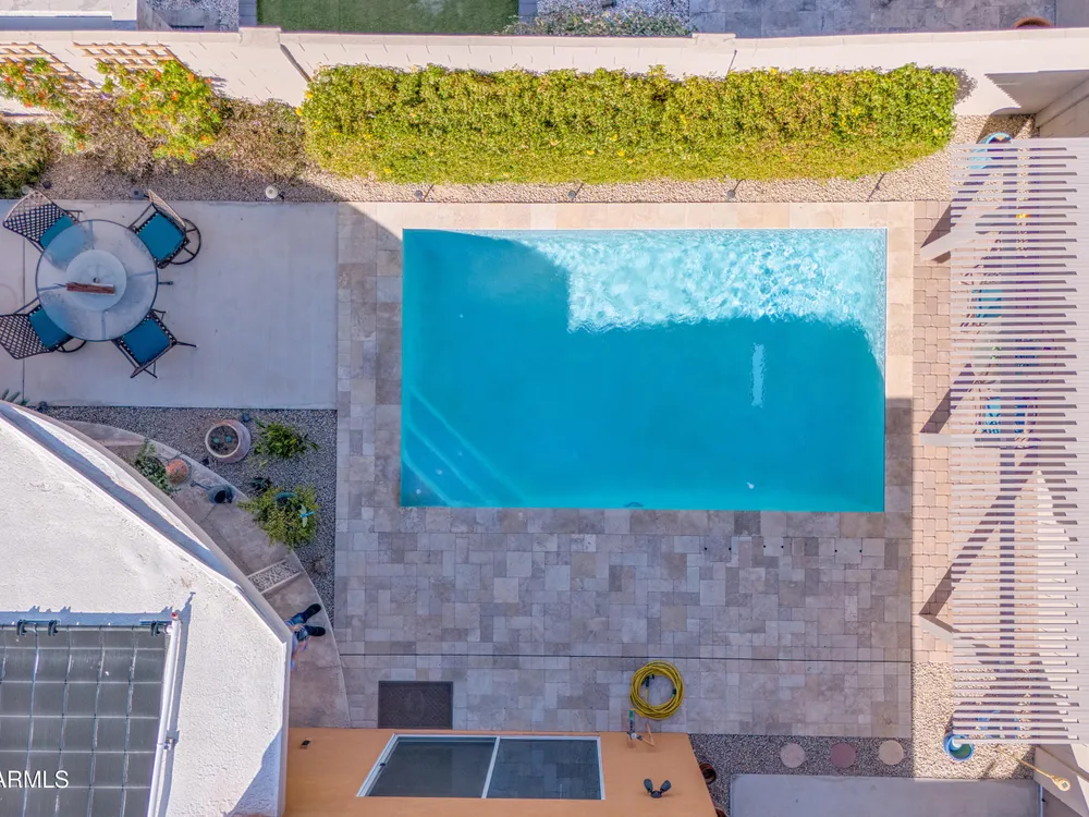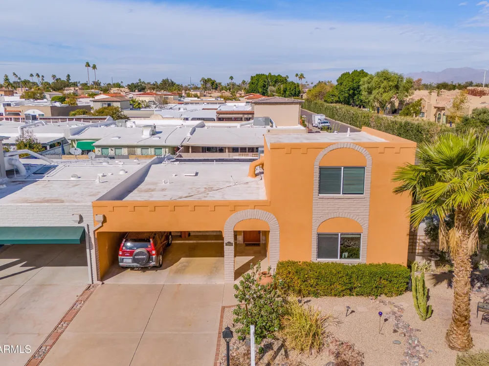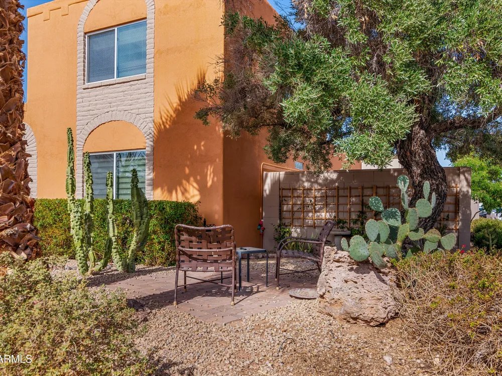 FABULOUS Villa Monterey home now offered for sale! This extensively remodeled home is in THE MOST DESIREABLE section of Villa Monterey with north facing backyard on a southeast corner. Tucked into the quietest section, this lovely home has it all! The Spacious kitchen with GAS oven, SS appliances is a cooks dream. Granite counters set off by beautiful glass tile backsplash. Storage galore, with cabinetry extending into laundry room. Both casual and formal dining spaces afford options for entertainment. Cozy gas fireplace for those occasional desert cold spells. Two en-suites, with Primary downstairs and a guest suite upstairs. This easy flow floor-plan has been remodel in a classic style with quality components you don't see often. Generous use of high end Travertine. Beautiful custom window coverings. Smart HVAC thermostat helps you control inside temps while traveling. Step outside to your private oasis, including Solar Heated PRIVATE POOL with low maintenance vacuum system, covered patio, meticulous border gardens, and private tool/storage shed can house bikes, tools, etc. Resort like landscape is easy care. Custom gate to side street is a huge bonus, desirable corner lot. This home recently updated with Nu-flow waste system in 2024. Villa Monterey is Scottsdale Premier 55 plus community. Zoned Historic, and pride of ownership shows throughout this charming subdivision. Old style lamplights line the streets adding a real ''hometown'' neighborhood feel. Enjoy community pool and spa gatherings. Clubhouse hosted planned events. Follow the canal path into Old Town for dining, cocktails, etc. Close to art galleries, spring training, car shows. Hayden Park and Chaparral Lake with biking paths. exercise circuit, fishing, sports courts; all the wonderful amenities of Scottsdale Living!