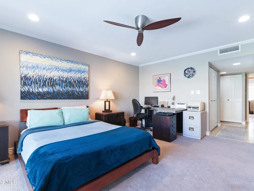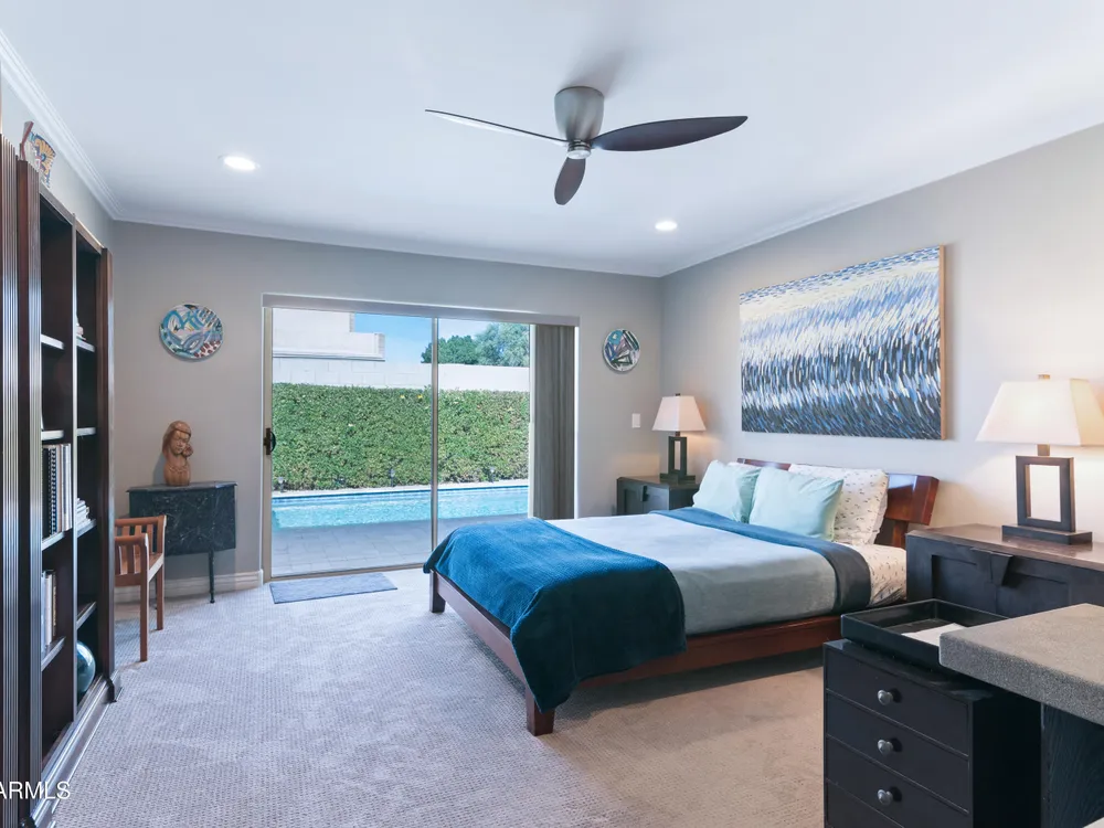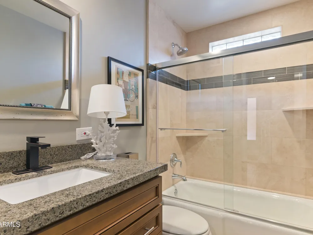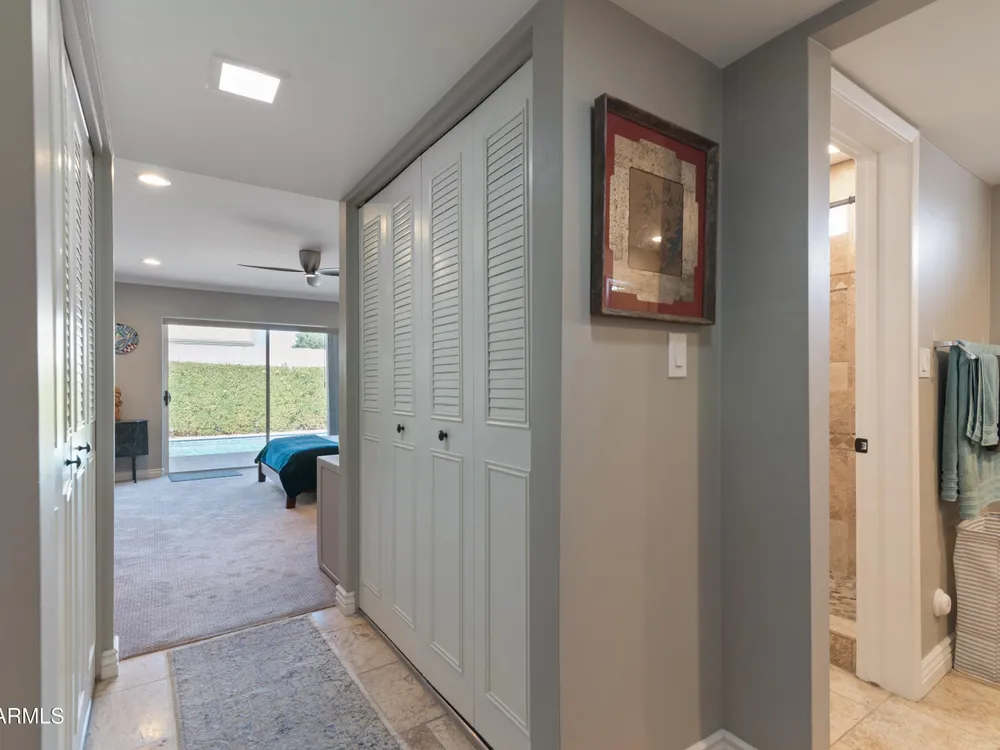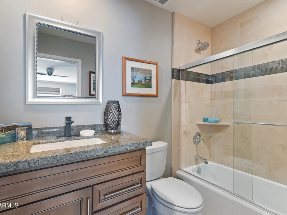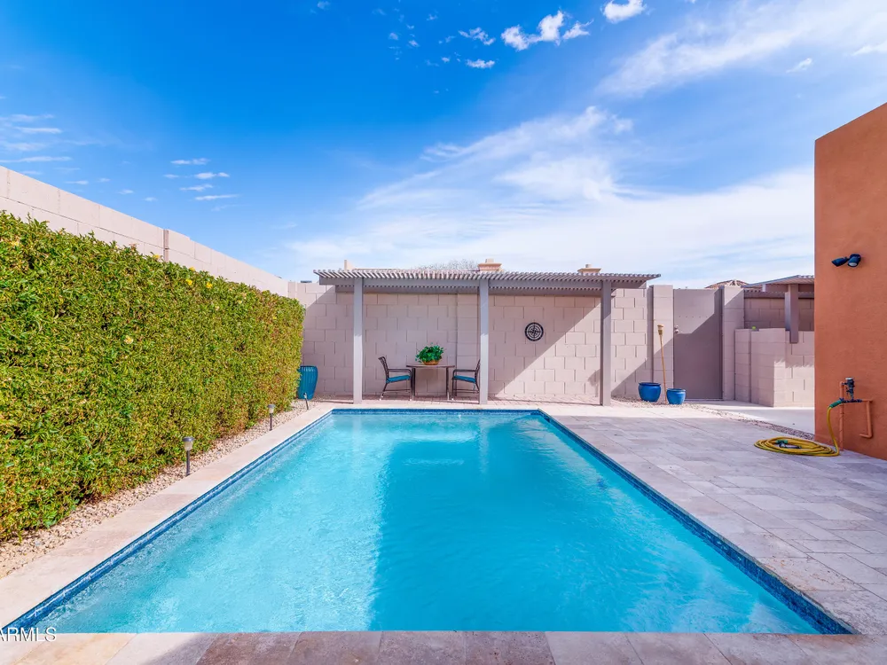 FABULOUS Villa Monterey home now offered for sale! This extensively remodeled home is in THE MOST DESIREABLE section of Villa Monterey with north facing backyard on a southeast corner. Tucked into the quietest section, this lovely home has it all! The Spacious kitchen with GAS oven, SS appliances is a cooks dream. Granite counters set off by beautiful glass tile backsplash. Storage galore, with cabinetry extending into laundry room. Both casual and formal dining spaces afford options for entertainment. Cozy gas fireplace for those occasional desert cold spells. Two en-suites, with Primary downstairs and a guest suite upstairs. This easy flow floor-plan has been remodel in a classic style with quality components you don't see often. Generous use of high end Travertine. Beautiful custom window coverings. Smart HVAC thermostat helps you control inside temps while traveling. Step outside to your private oasis, including Solar Heated PRIVATE POOL with low maintenance vacuum system, covered patio, meticulous border gardens, and private tool/storage shed can house bikes, tools, etc. Resort like landscape is easy care. Custom gate to side street is a huge bonus, desirable corner lot. This home recently updated with Nu-flow waste system in 2024. Villa Monterey is Scottsdale Premier 55 plus community. Zoned Historic, and pride of ownership shows throughout this charming subdivision. Old style lamplights line the streets adding a real ''hometown'' neighborhood feel. Enjoy community pool and spa gatherings. Clubhouse hosted planned events. Follow the canal path into Old Town for dining, cocktails, etc. Close to art galleries, spring training, car shows. Hayden Park and Chaparral Lake with biking paths. exercise circuit, fishing, sports courts; all the wonderful amenities of Scottsdale Living!