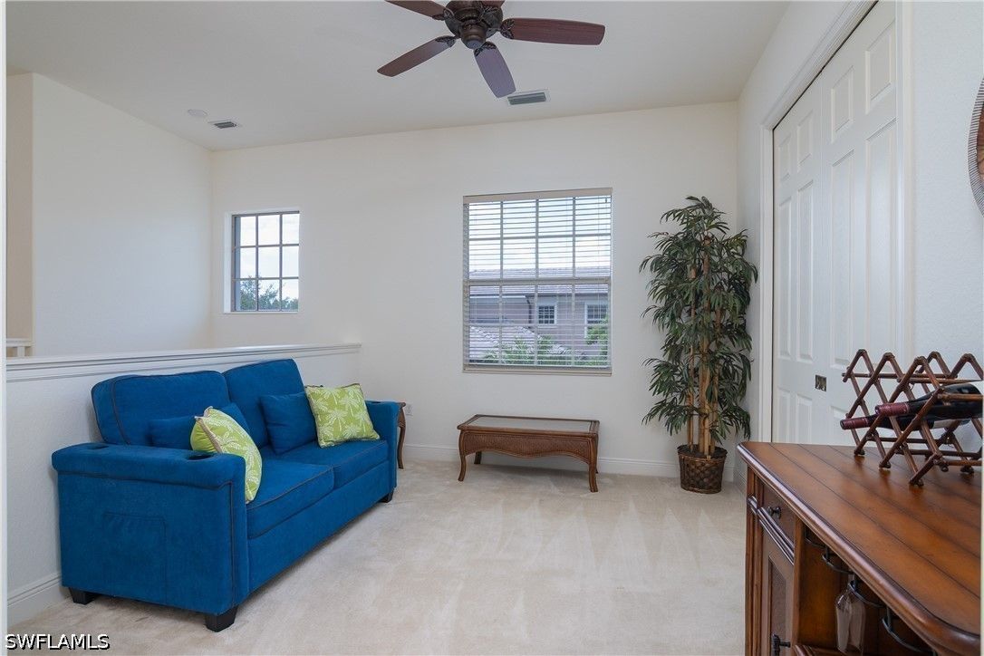 Welcome to an exceptional opportunity in Hawthorne at Lely Resort; one of Naples’ most desirable gated communities. With only 76 residences, Hawthorne offers an intimate, upscale setting surrounded by lush landscaping and resort-style amenities. This spacious carriage home includes coveted membership to The Players Club & Spa, allowing the next owner to bypass the current two-plus year waitlist and immediately enjoy one of Southwest Florida’s premier lifestyle clubs. Offering over 2,500 square feet of living space, this turnkey furnished residence blends comfort, flexibility, and elegance. The thoughtfully designed floor plan features three bedrooms, a den/flex room, three full baths, and an attached two-car garage with space for two additional vehicles in the driveway. Rarely found guest convenience is enhanced by ten guest parking spaces directly across the street. Inside, soaring volume ceilings create an airy, open feel in the expansive living room, which flows seamlessly to a peaceful screened lanai overlooking a tranquil preserve with prized western rear exposure. The kitchen is well-appointed with granite countertops, stainless steel appliances, center island, and a generous walk-in pantry. Ample storage throughout adds everyday practicality. The primary suite offers a spa-like bath complete with soaking tub, walk-in shower, and skylight that fills the space with natural light. A unique bonus feature includes dedicated downstairs and upstairs closets designed to accommodate a future private elevator installation if desired. Residents of Hawthorne enjoy a private pool, community room, and fitness room just a short walk or bike ride away. Recent community improvements include all new roofs and freshly painted buildings, providing added peace of mind. Ownership here means carefree, maintenance-free living, with dues covering lawn care, water/sewer, irrigation, basic cable, Wi-Fi, reserve funding, professional management, and pest control. Membership to The Players Club & Spa elevates the lifestyle even further with resort pools, fitness center, tennis, pickleball, dining, spa services, social events, and a vibrant year-round atmosphere. Ideally located; you are minutes from everyday conveniences including grocery stores, pharmacies, dining, golf, and shopping, while world-famous Fifth Avenue South, downtown Naples, and Gulf beaches are just a short drive away. Marco Island, known for its white-sand beaches, boating, waterfront dining, and island lifestyle, is also conveniently located just to the south, making spontaneous day trips or sunset dinners incredibly easy. For buyers seeking luxury, convenience, community, and immediate access to one of Naples’ finest resort clubs, this is a rare and compelling offering.