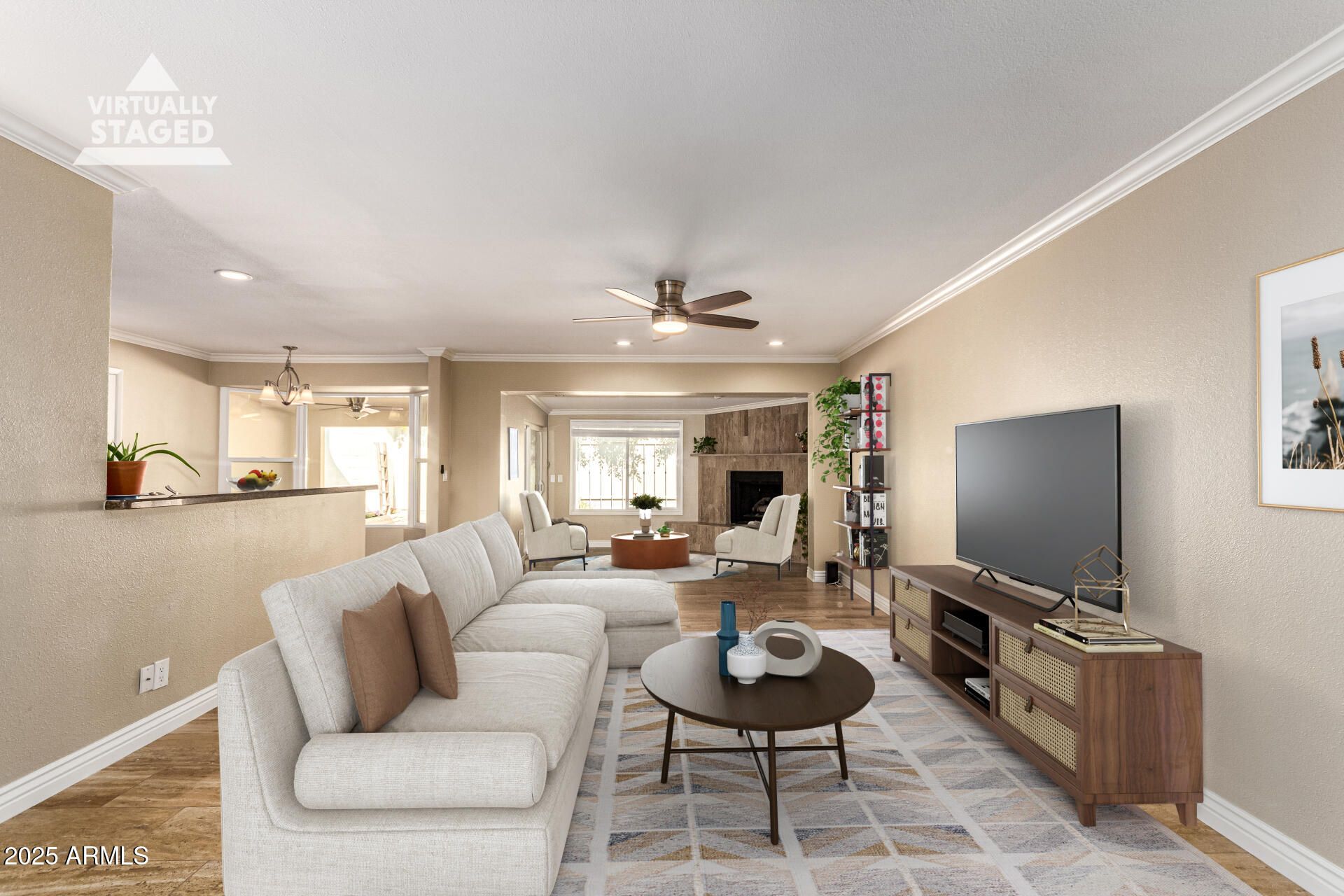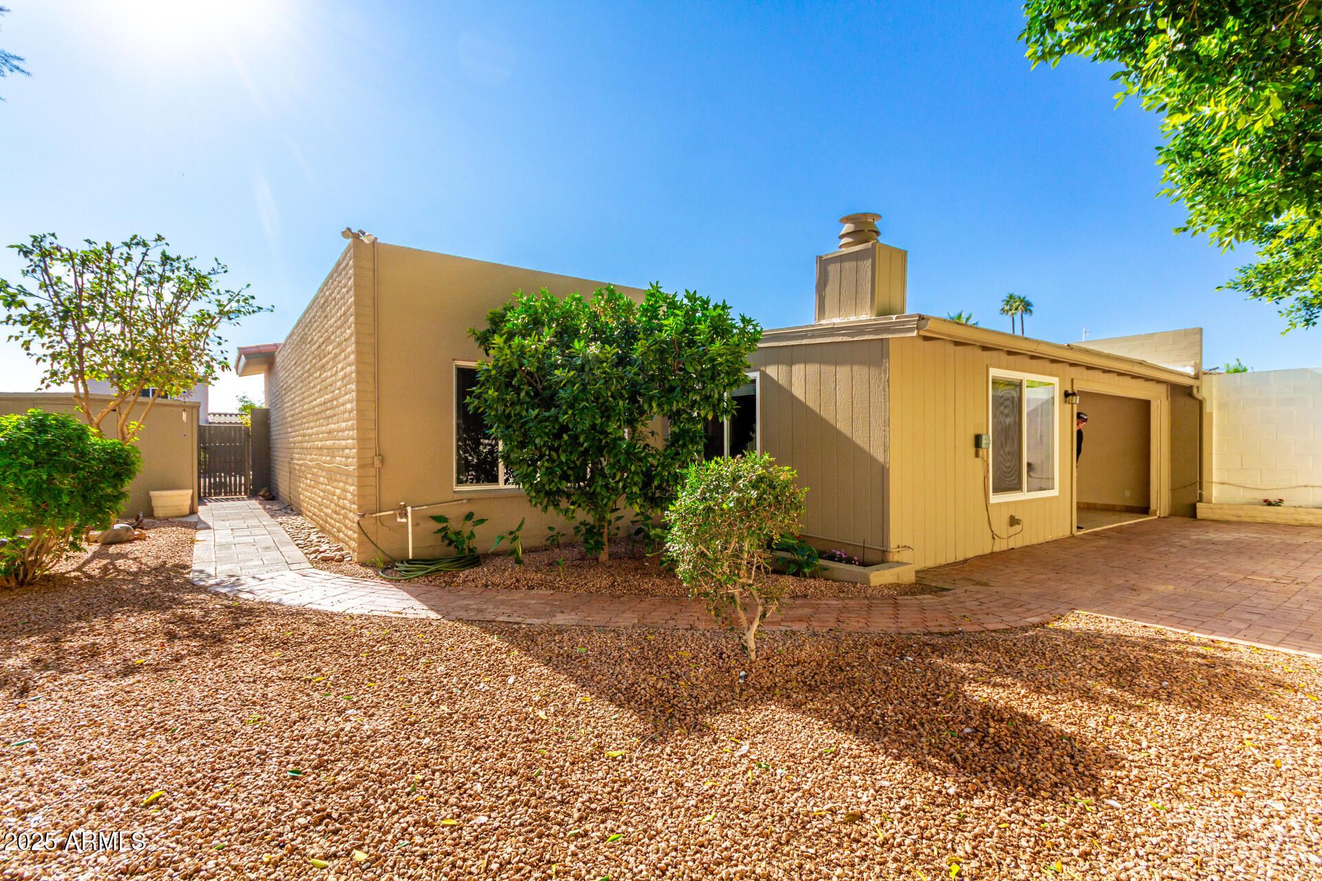 This is the one you've been waiting for! TOTALLY REMODELED stunning townhome on an oversized lot in highly sought-after Villa Monterey. END UNIT with a coveted side gate and access to backyard. 2-car carport, with epoxy flooring! Beautiful tumbled travertine flooring, crown molding, 5'' baseboards & recessed lighting for starters. Eat-in kitchen features granite slab counters, custom cabinetry, new SS appliances & GAS STOVE, W/ an adjacent formal dining room. Both bedrooms are oversized & offer abundant closet space. Granite counters and travertine surrounds in both baths; double sinks in master. doors & windows are low-E dual pane throughout. RARE Rinnai tankless water heater! Energy-efficient block construction! Large utility room with loads of shelving & storage. A must see!