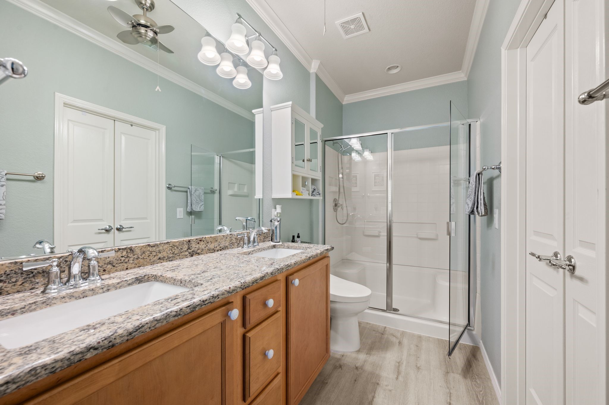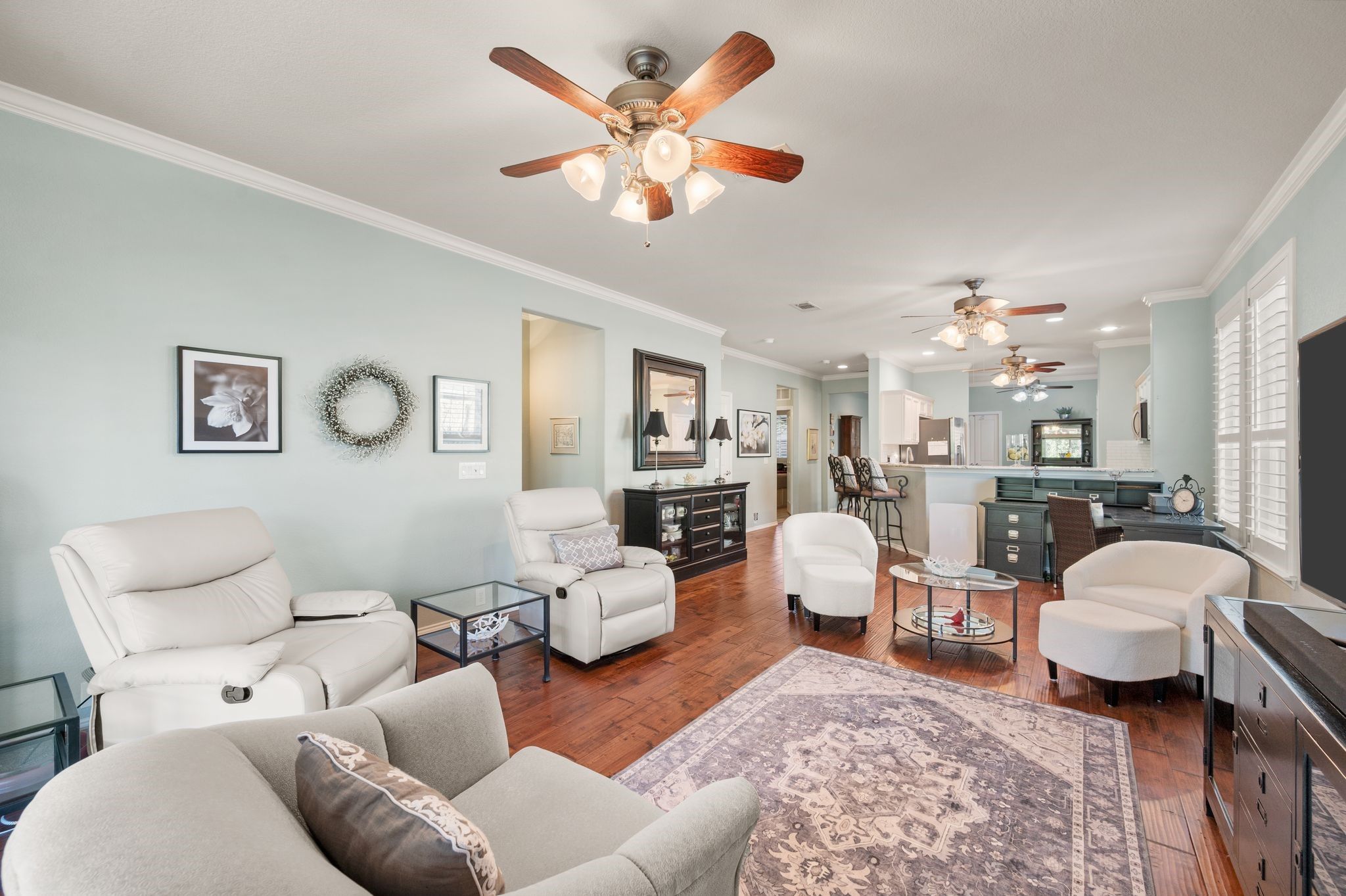 Stunningly upgraded home in highly sought-after Frisco Lakes 55+ Community. When walking into this home you’ll feel elegance. Enjoy the open floorplan with high ceilings and crown molding, the calming paint color, the stylish granite countertops, white painted cabinets, modern backsplash, and recently upgraded appliances. Hardwood flooring flows seamlessly throughout the home, sliding glass doors to patio add warmth and sophistication, and everyone loves planation shutters! Energy-saving solar tubes fill the home with natural light, while triple-pane windows, a new garage door, attic fans, and additional insulation ensure year-round comfort and efficiency. Both bathrooms feature premium Toto toilets, and the guest bathroom was recently remodeled. Step outside view the spacious backyard retreat and enjoy the private, oversized, patio with a beautiful pergola. Residents of Frisco Lakes enjoy first-class amenities including three state-of-the-art amenity centers, fitness areas, indoor and outdoor pools, tennis and pickleball courts, and scenic walking trails around Lake Lewisville. This fully upgraded home on a corner, oversized, and privately landscaped homesite is a true find! Don’t miss out on this opportunity to begin your next chapter and new lifestyle at Frisco Lakes.