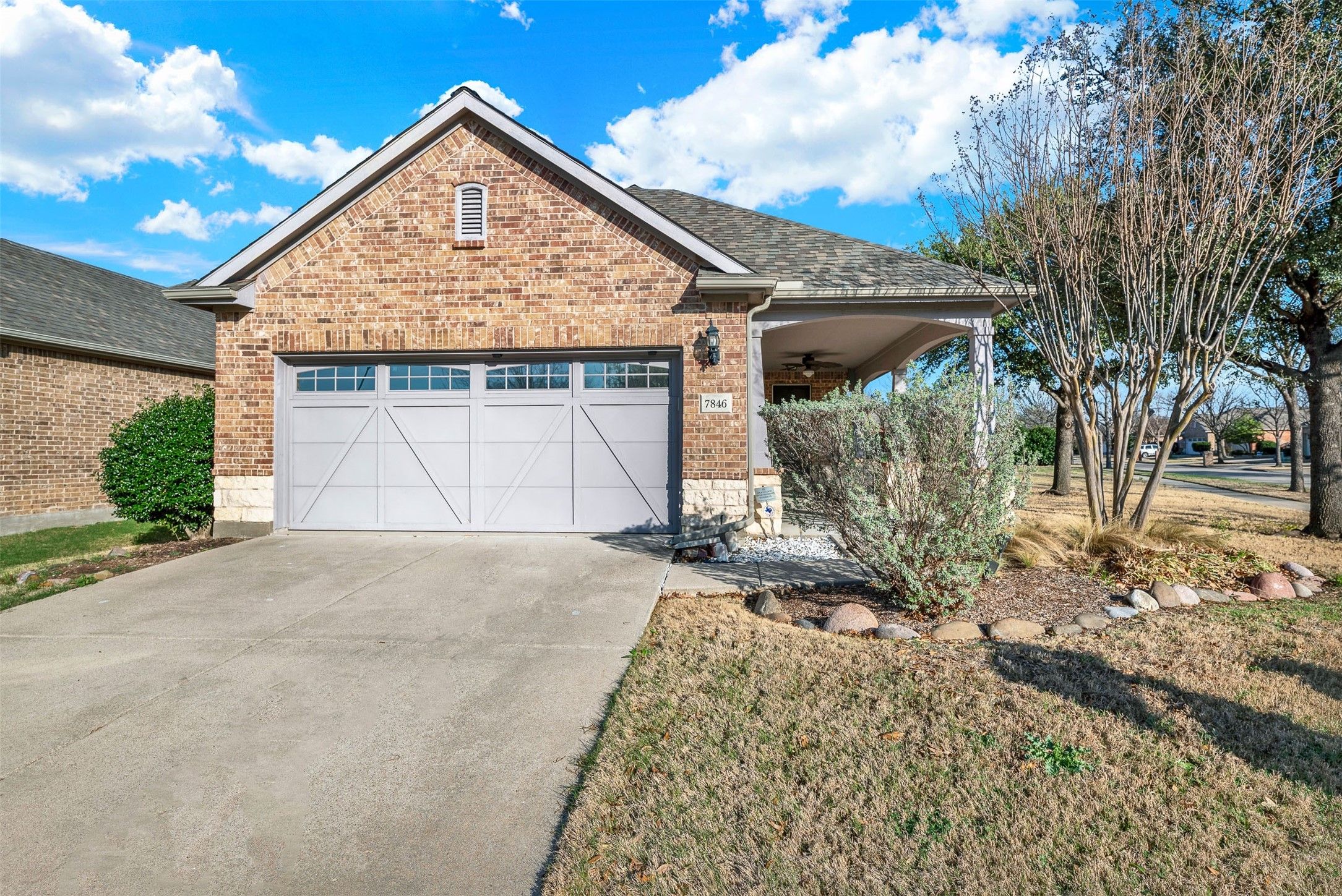 Stunningly upgraded home in the highly sought-after Frisco Lakes 55+ community. From the moment you step inside, you’ll feel the elegance. This open floor plan features high ceilings, crown molding, calming designer paint colors, stylish granite countertops, white painted cabinetry, a modern backsplash, and recently upgraded appliances. Rich hardwood flooring flows seamlessly throughout the home, while sliding glass doors to the patio add warmth and sophistication. Plantation shutters and energy-saving solar tubes fill the space with abundant natural light. Designed for comfort and efficiency, the home includes triple-pane windows, a 2017 HVAC system, a new garage door, a 2022 roof with attic fans, and additional insulation. Both bathrooms are equipped with premium Toto toilets, and the guest bathroom has been recently remodeled. Step outside to a spacious backyard retreat and enjoy the oversized private patio with a beautiful pergola, perfect for relaxing or entertaining. As a bonus, all built-in garage storage cabinets and the refrigerator are included. Residents of Frisco Lakes enjoy resort-style living with three state-of-the-art amenity centers, fitness facilities, indoor and outdoor pools, tennis and pickleball courts, and scenic walking trails along Lake Lewisville. Situated on a corner, oversized, and privately landscaped homesite, this fully upgraded home is truly a rare find. Don’t miss this opportunity to begin your next chapter and embrace the Frisco Lakes lifestyle.