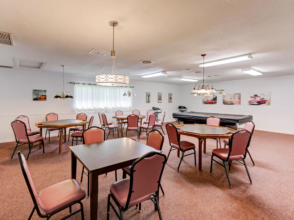 - Clubhouse, Laundry, Community Room, Elevator, Fitness Center, Game Room, Golf, Internet Included, Library, Property Manager On Site, Picnic Area, Pool, Sauna, Shuffleboard, Tennis Court(s)