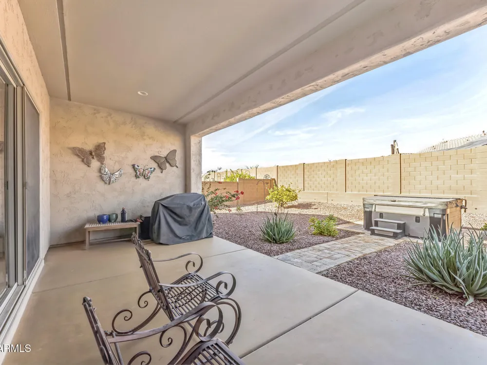 3.1% Assumable Loan! Incredible Opportunity in Anthem Ranch! Step into resort-style living with this stunning retreat in the coveted Merrill at Anthem Ranch community and take advantage of a rare 3.1% assumable mortgage! Why settle for today's rates when you can assume a low one and move into your dream home? From the moment you arrive, you'll know this is more than just a house, it's home. The charming curb appeal welcomes you with a 2-car garage plus golf cart storage, and a secure iron gate leads into a private courtyard, perfect for soaking in the mountain air. Inside, you'll find a true showstopper: a chef-inspired kitchen complete with gas stove, upgraded hood, and an expansive island ideal for entertaining. The open layout includes 2 spacious bedrooms, 2.5 bathrooms, and a split floor plan that offers privacy for you and your guests. You'll also enjoy a dedicated office/den, formal dining room, cozy sitting area, and a spacious living room with an extended sliding glass wall that opens to your beautiful backyard featuring your very own spa for relaxing evenings under the stars. Additional upgrades include: Tankless water heater Water softener Hanging shelves in garage Thoughtfully landscaped backyard And the best part? This home isn't just about beauty it's about lifestyle. Anthem Ranch offers one of the most comprehensive active adult communities in Arizona with a 48,000 sq. ft. Recreation Center, indoor and outdoor pools, golf, pickleball, tennis, walking trails, a clubhouse, on-site restaurant, and dozens of clubs and activities to enjoy year-round.