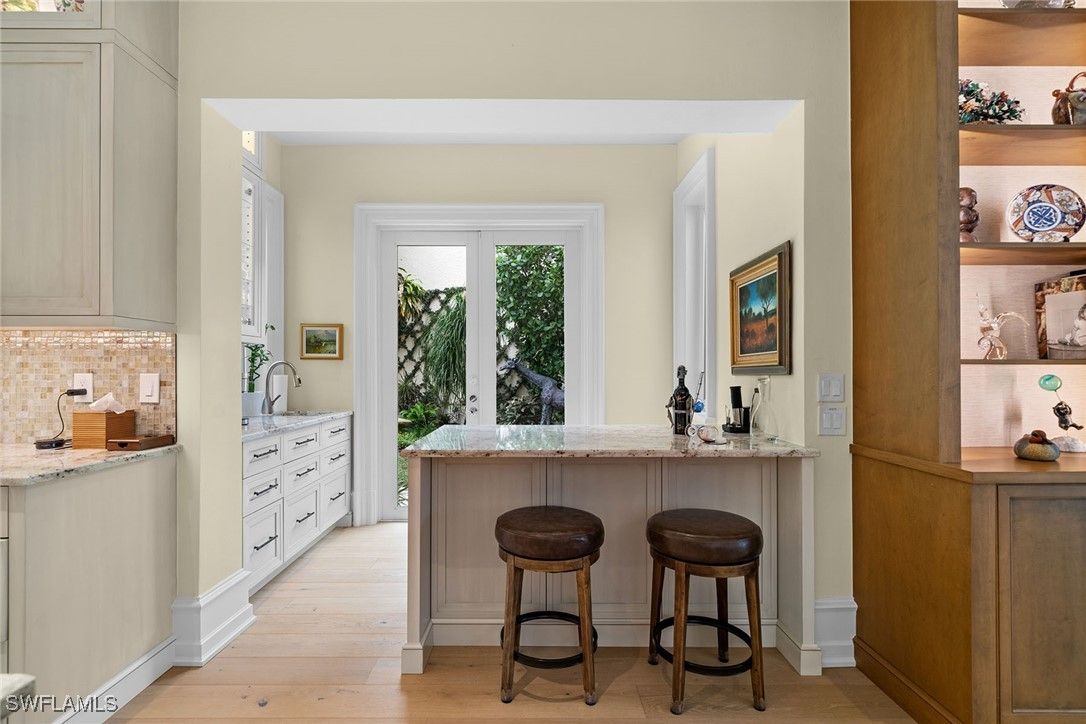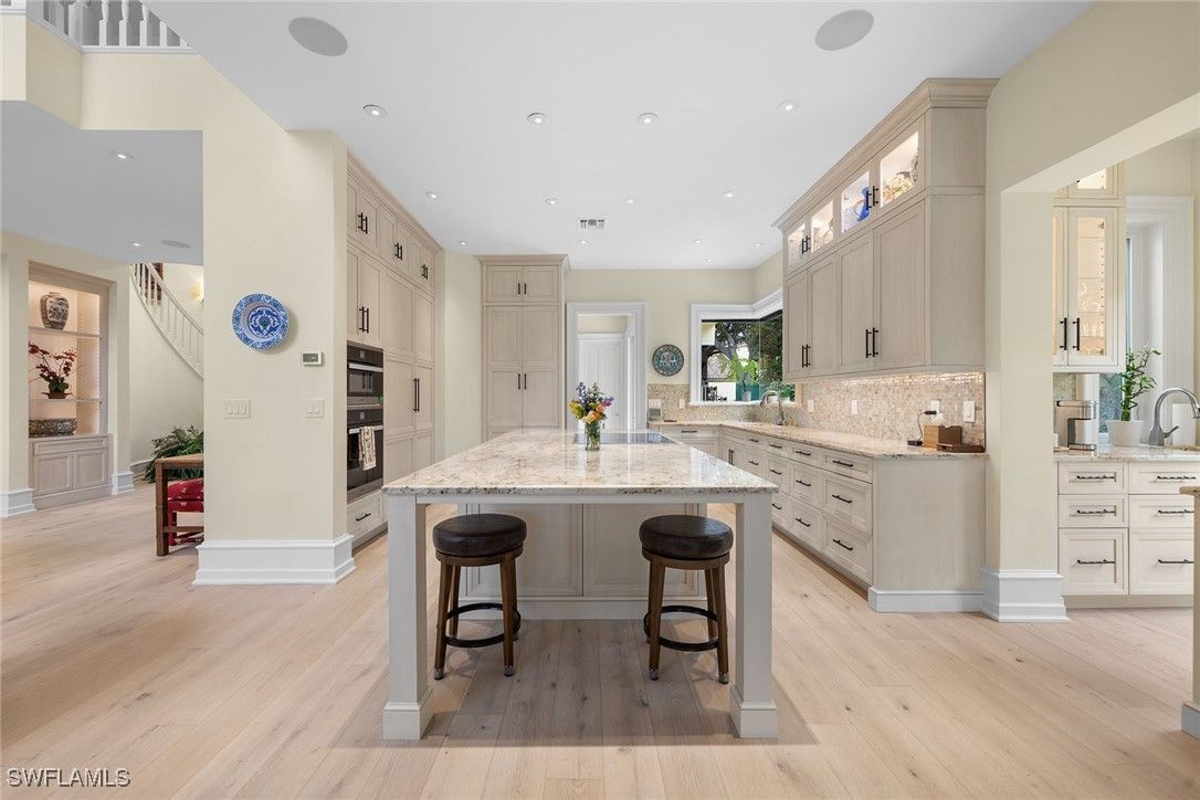 Stunning detached villa in the prime location of Bay Colony, in this pet-friendly neighborhood where luxury meets tranquility. This custom remodeled masterpiece by 41 West sits on one of the largest sites in Vizcaya and boasts spectacular views of the water and the mangroves, creating a serene backdrop for your everyday life. With four spacious bedrooms and four full plus two half baths, this home offers 4,583 total square feet of elegant living space. Step inside to discover gorgeous white oak wood floors that flow seamlessly throughout the open-concept design, enhancing the villa’s coastal charm. The heart of the home features a stylish gourmet kitchen ideal for culinary enthusiasts. Step outside to your private oasis, complete with a screened pool and spa, ideal for relaxing under the sun or entertaining guests. The fenced side yard is unique for a villa community. It can be excellent space for a pet or children to play. It is beautifully landscaped and includes custom lighting, adding an enchanting touch to your outdoor space. Don’t miss the opportunity to own this exceptional villa in Bay Colony and enjoy all Bay Colony and Pelican Bay have to offer including a private full service beach club and tennis center. and state-of-the-art fitness center.