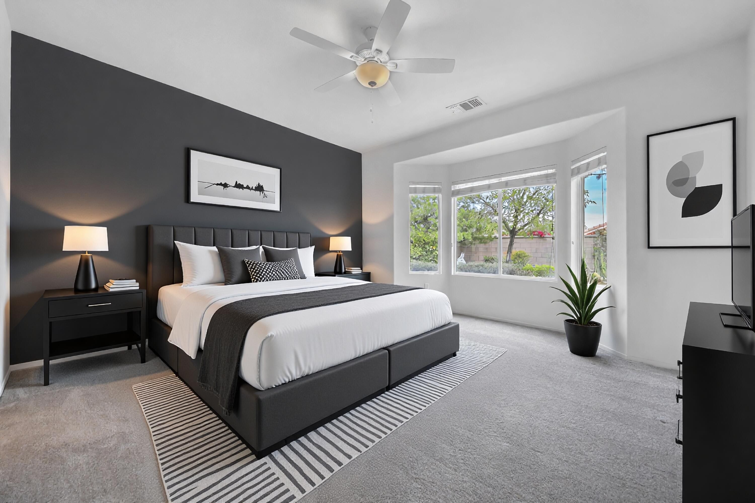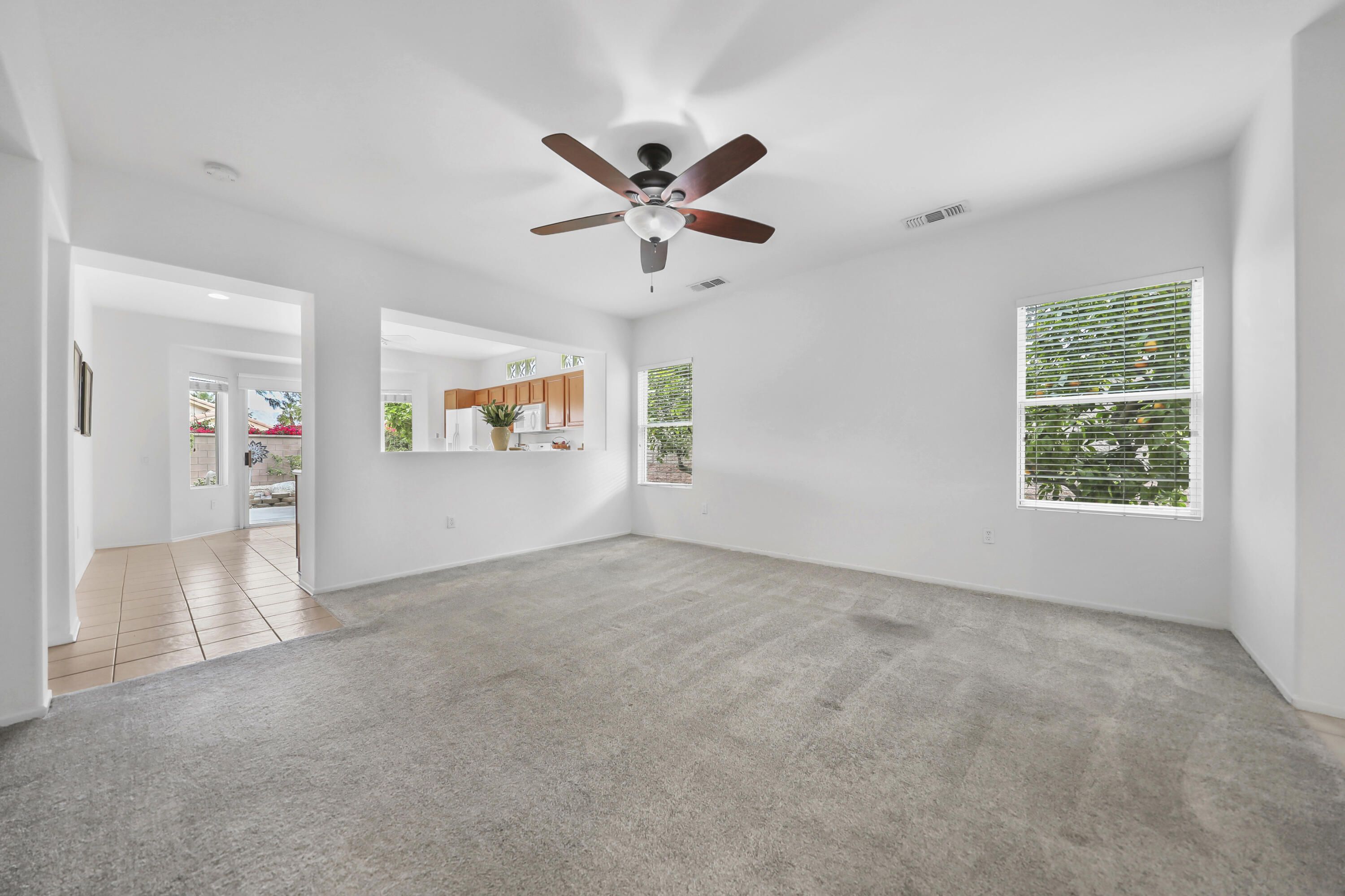 This darling home sits on a private end of cul-de-sac lot with a charming backyard. This great room floor plan lends to easy living and lots of privacy. The primary bedroom is large with partial views of the Chocolate Mountains. The kitchen offers ample room to cook and share dining experiences. You don't want to miss out on this lovely home.