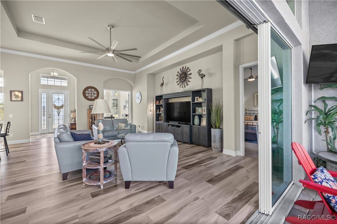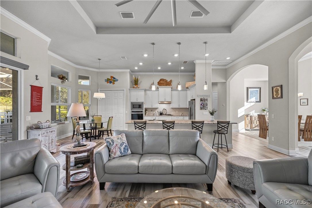Significant Price Reduction – Incredible Opportunity! Don’t miss your chance to own this stunning 2022 Tiffany-style pool home—now offered at a remarkable new price! Perfectly positioned on fenced, and beautifully landscaped homesite 107 feet above sea level (NO flood insurance required), this home combines elegant design with peace of mind in the gated, amenity-rich community of Terra Vista of Citrus Hills. Step through the custom fused-glass entry door into a bright, open Great Room that overlooks the gas-heated saltwater pool and waterfall. The gourmet kitchen features granite counters, crown molding, tile flooring, and soft, neutral tones that flow seamlessly throughout. With 3 bedrooms, a private office, and a spacious 14x26 pool area, this home was made for both relaxation and entertaining. The luxurious primary suite offers pool access, two large closets, dual vanities, a soaking tub, and a walk-in shower. Practical touches include an extended 23-ft garage for two cars plus a golf cart, three laundry closets, a large pantry, and modern energy-efficient construction featuring foam insulation and a radiant barrier attic. Enjoy the Florida lifestyle you’ve dreamed of—meet friends at the Tiki Bar, play pickleball, golf, or tennis, unwind at the spa, explore miles of walking and biking trails, or join one of the many social clubs. Outdoor adventures like kayaking, boating, and fishing await just minutes away in beautiful Citrus County—Florida’s hidden gem!