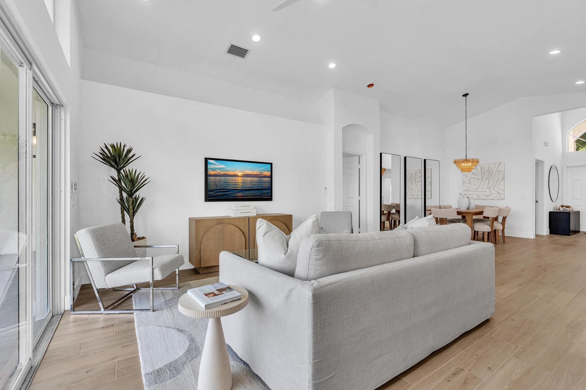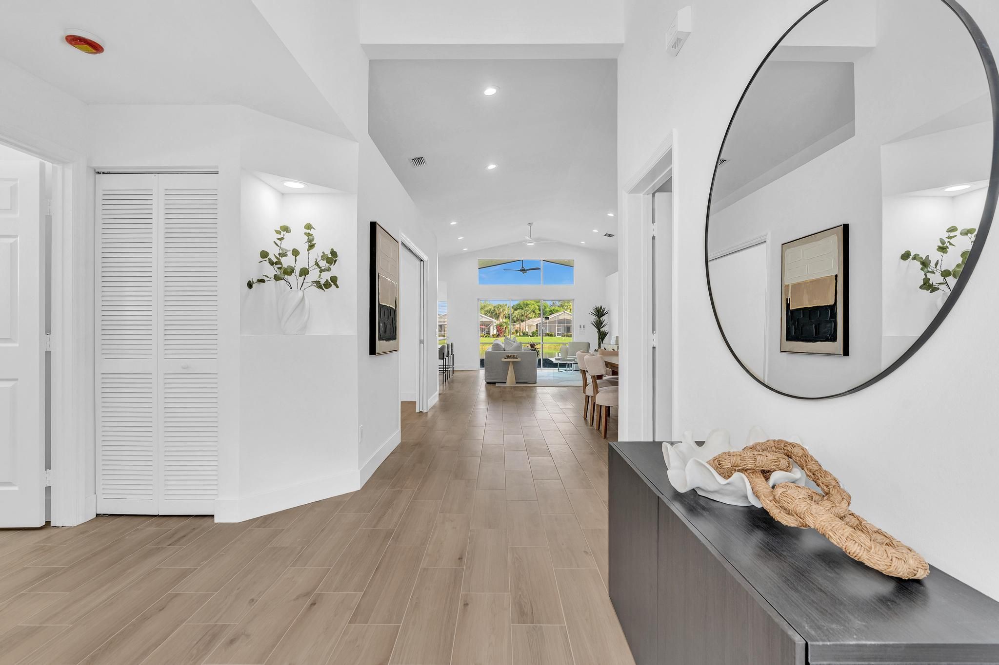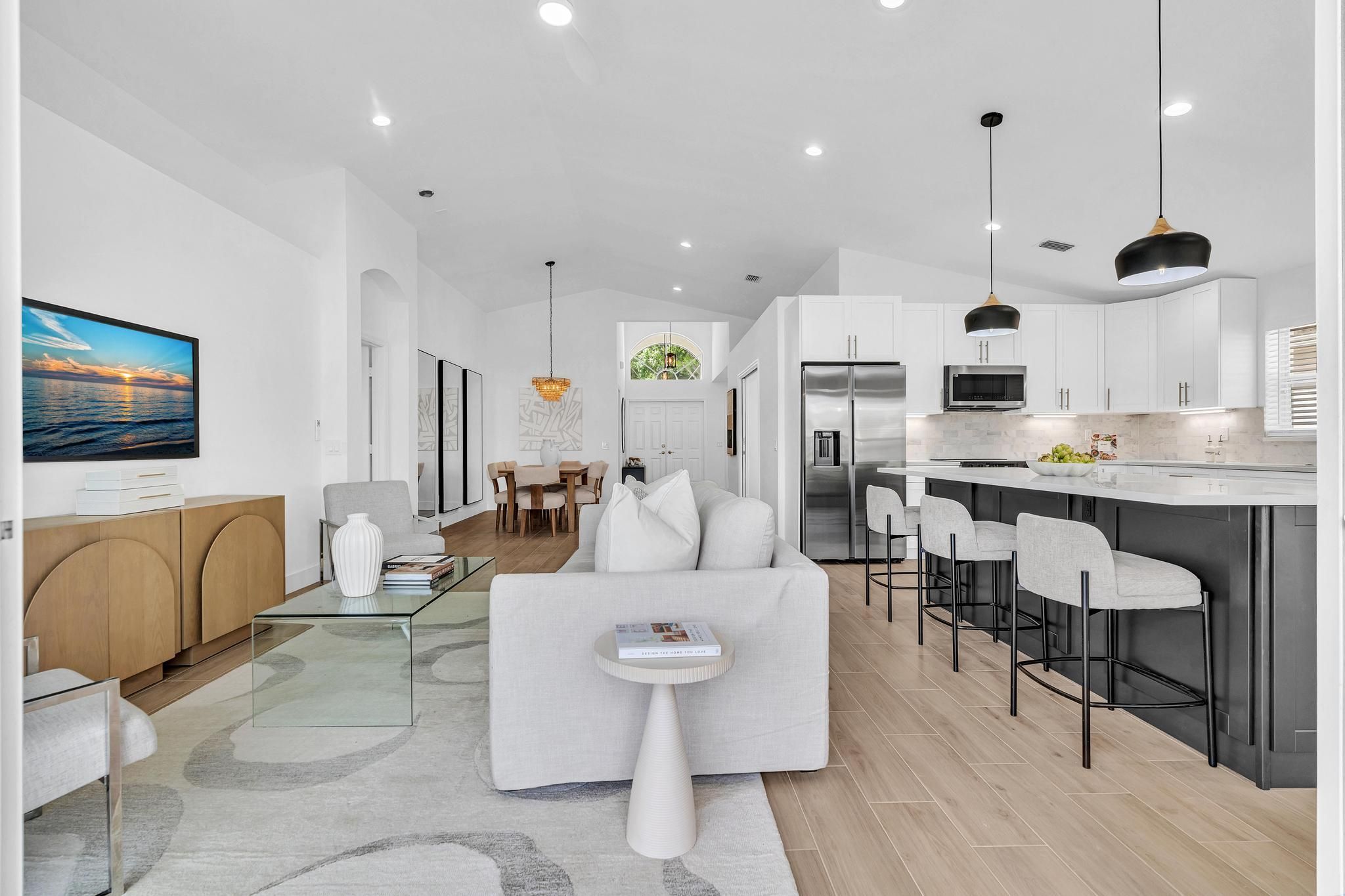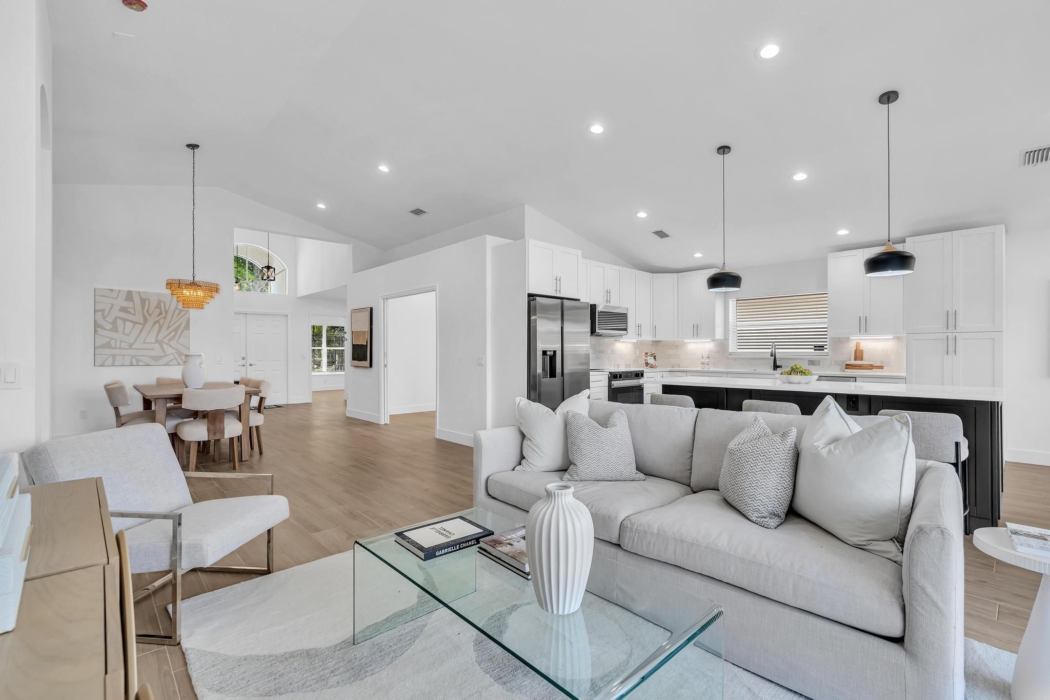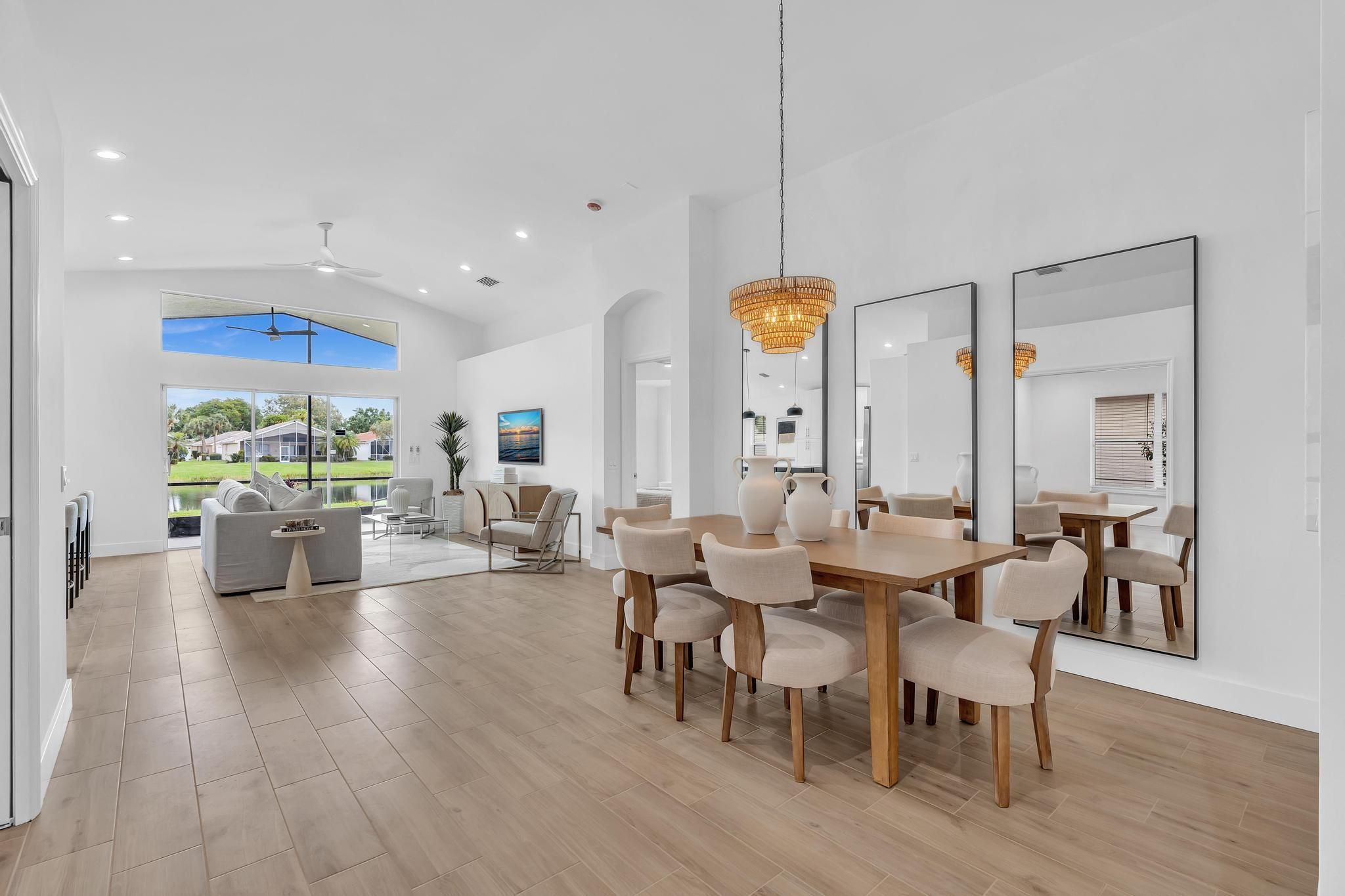 COMPLETELY RENOVATED and move-in ready, this spectacular 3BR/2BA home offers beautifully refined living space with water views and no detail overlooked. Enjoy total peace of mind w/ FULL IMPACT WINDOWS & DOORS, NEW ROOF, New HWH indoor-outdoor livinand AC 2018 combining modern efficiency, storm protection and exceptional curb appeal. The chef's kitchen is truly the heart of the home, showcasing brand new stainless steel appliances, wine refrigerator, and premium finishes throughout. It's both functional and striking perfect for everyday living and effortless entertaining. Designer-curated bathrooms elevate the home with spa-like elegance, featuring a freestanding soaking tub and walk-in showers that create a serene retreat. The Screened in Florida room offers water views and seamless indoor-outdoor living. Ideal for relaxing mornings, sunset evenings, or hosting guests year-round. Located in the prestigious, gated, and pet-friendly community of Valencia Lakes, residents enjoy a newly renovated clubhouse with café, resort-style pools, spa, tennis, pickleball, and an active lifestyle calendar. Just minutes to beaches, dining, and shopping. This is true lakefront luxury, completely turnkey and ready to enjoy.