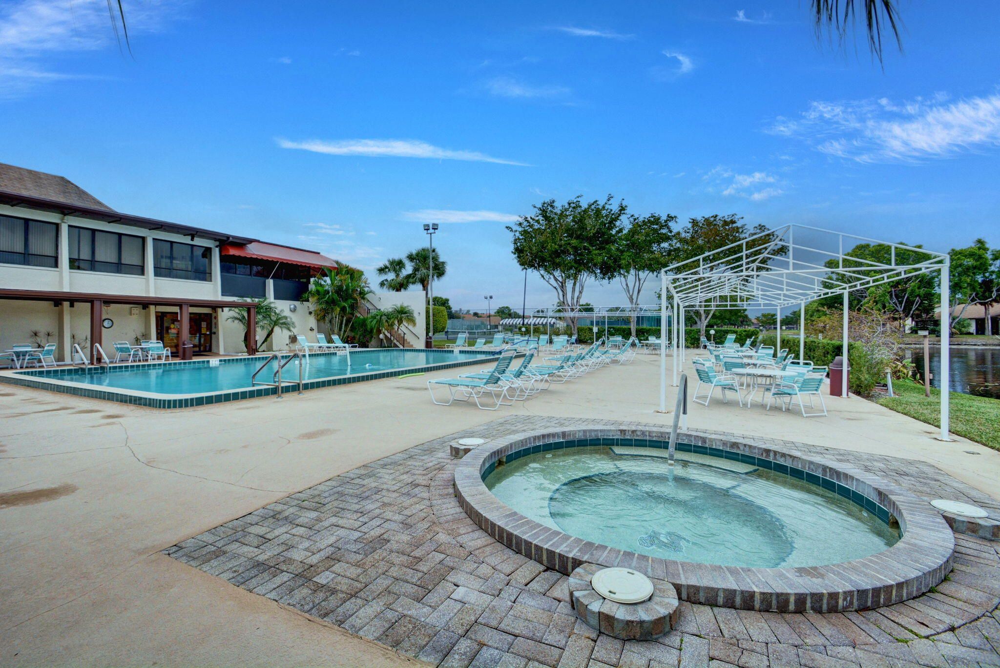 - Association Fee Includes: Billiard Room, Cabana, Clubhouse, Fitness Center, Game Room, Jogging Path, Management, Park, Picnic Area, Parking, Pool, Shuffleboard Court, Spa/Hot Tub, Tennis Court(s), On Site Manager/Engineer, Bocce Court, Community Room, Library, Sidewalks, No, Cable TV, Insurance, Maintenance Grounds, Sewer, Trash, Water, Common Areas