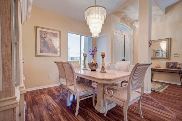 With this very well maintained ''Pave'' model, you'll find a beautiful 3 bedroom, 2 and a half bath home in Sun City Palm Desert that offers both comfort and style. This home also has a uniquely upgraded office/den. The beautiful entryway leading into the formal living and dining areas creates an inviting atmosphere for entertaining guests or simply enjoying daily life. The newer flooring and upgraded kitchen add a touch of modern elegance, while the 6-year-old appliances and dual A/C units ensure practicality and energy efficiency. The hot water heater was also replaced 3 years ago and as part of this home being energy efficient, there is a Solar Lease on the property that has provided a lot of savings on the electricity bill. The inclusion of a two-car garage with a golf cart space, upgraded with a split unit, enhances the convenience and functionality of the property, catering to the lifestyle needs of its residents. Overall, this listing seems to offer a perfect blend of luxury and practicality within the vibrant 55 and over community of Sun City Palm Desert. Call Kyle Garman @360-319-1053 for showing!