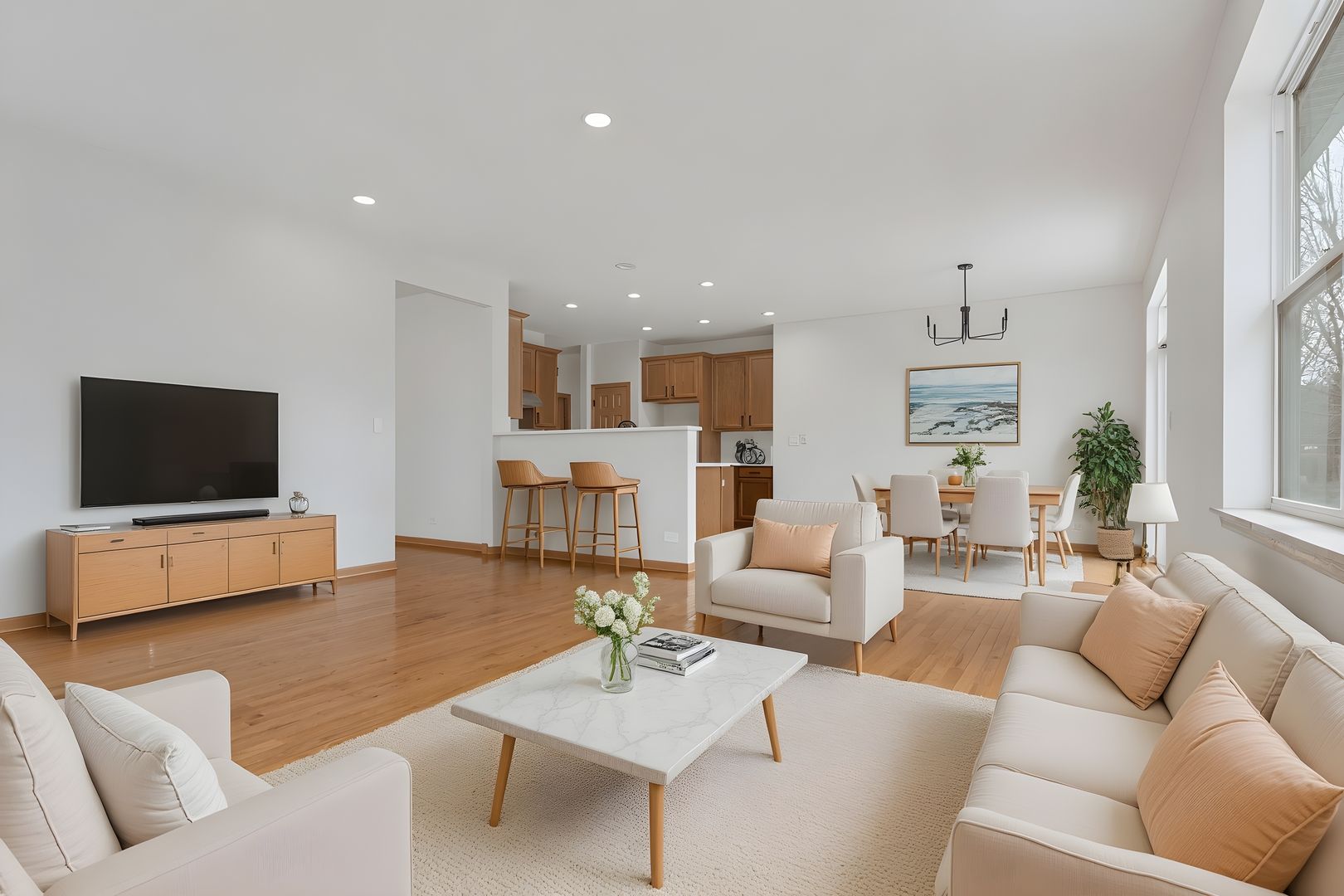 Be prepared to fall in love with this beautifully maintained 2-bedroom, 2-bath ranch located in the highly sought-after 55+ community of Steeplechase. A charming front porch welcomes you into a new ceramic tiled foyer and a bright open floor plan that is flooded with natural light. Great updates throughout the home include hardwood floors, newly updated bathrooms, new lighting, new carpets, and all new hardware and six paneled doors, The large family room is open to the well-appointed kitchen which includes new quartz countertops and backsplash, a center island, 42" dark maple cabinets, a pantry closet, a stainless steel stove and dishwasher, a new new stainless sink with a new black faucet and a new slider that opens to the patio. A versatile den at the front of the home offers the perfect space for an office, hobby room, or cozy reading nook. The extra-large primary bedroom easily accommodates a sitting area and includes an expansive walk-in closet. Its beautifully tiled en-suite bath features a rare, and highly desirable walk in shower along with a new water-saving toilet. You'll also appreciate the large laundry room with wash tub and storage closet, plus a concrete crawl space-perfect for additional storage needs. Step outside to a large patio overlooking mature landscaping with an open view to the conversation area, offering a peaceful setting for outdoor dining or simply unwinding. Enjoy low-maintenance living with low HOA fees(105/month) and no Master HOA fees. Lawn care and snow removal is an optional service that is available for an approx. fee that equals $77.00/month in 2025. Gather with your friends in the well appointed clubhouse or at the pool in the summer which are all a part of the community. Fences allowed. Scenic walking paths wind throughout the community, adding to its welcoming atmosphere. All of this is just minutes from shopping, restaurants, parks, and a golf course, -everything you're looking for in a 55+ community!