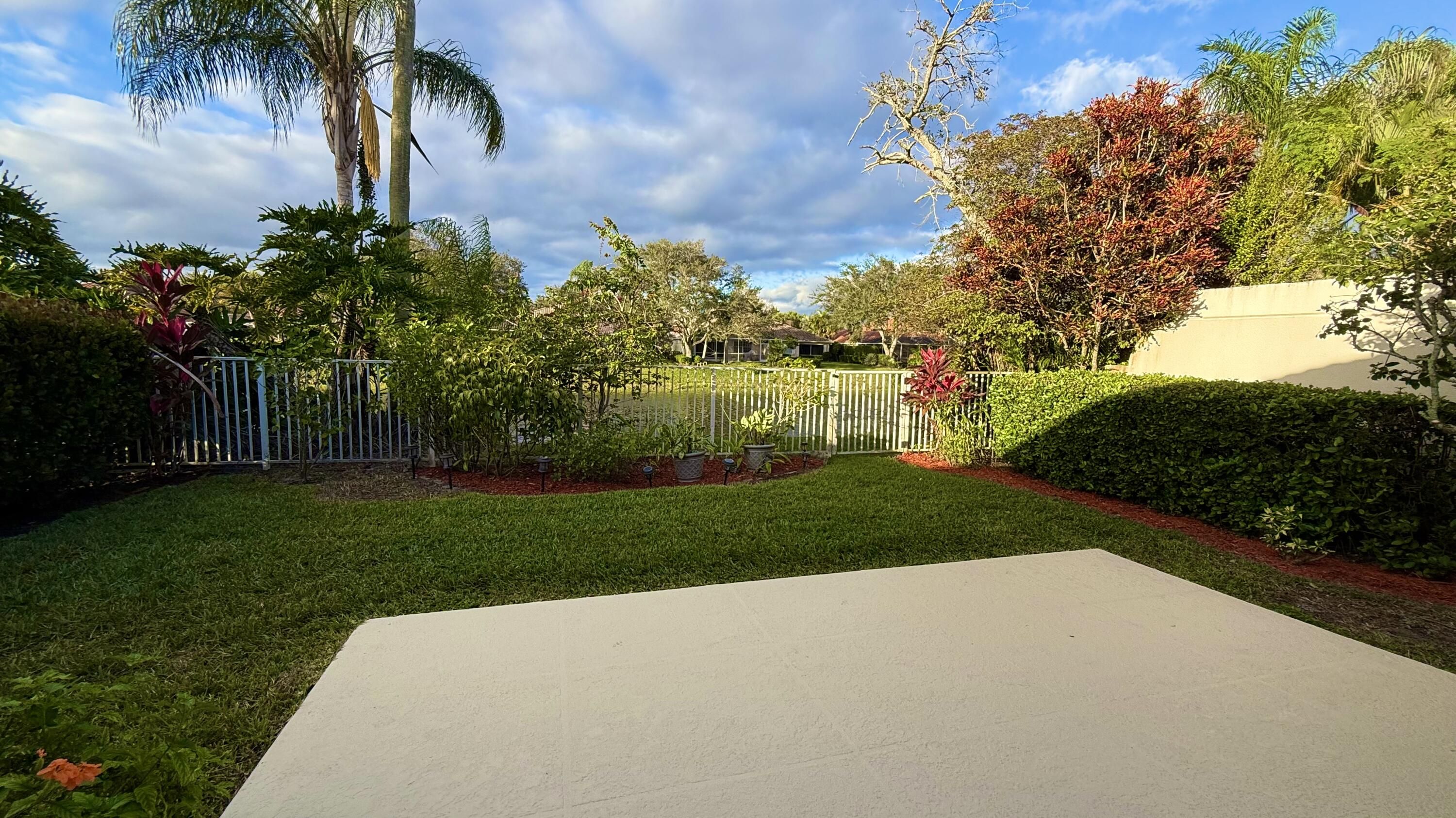 Lakefront living at its finest—discover this beautifully designed two-bedroom villa in Riverwalk.'' This ''Expanded'' Capri model features tile flooring throughout the main living areas, new carpeting in the bedrooms, vaulted ceilings in the great room, and a built-in entertainment center, creating a bright and inviting space ideal for entertaining. The split-bedroom layout provides privacy, with both bedrooms located at opposite ends of the home—each with its own bathroom and walk-in closet. Enjoy tranquil lake views from a fully fenced backyard, perfect for outdoor enjoyment. The heart of this unique residential community is its waterfront Town Center where you can grab lunch or dinner at the on-site "Centanni" Italian restaurant; enjoy the tennis and pickle ball experience on the eight Har-tru lighted courts with on-site tennis instructor and active tennis program. Take a swim in one of the three heated pools, fish from one of the many picturesque bridges; stop by the library, play ping pong or pool. Also located in the Town Center is the full service Illustrated Properties real estate office, beauty salon, mail facility and children's playground. Enjoy 12 miles of scenic pedestrian pathways, take a bike ride or enjoy a vigorous work out in the renovated fitness center or play bocce - all for the exclusive use of River Walk residents! Yoga, mahjong, bridge, aqua aerobics, foreign language classes, crafts and more are some of the other fun activities offered! River Walk offers luxury resort-style living, without extravagant ''country club'' fees! Conveniently located near the turnpike, Palm Beach International Airport, the Outlet Malls, Kravis Center, Downtown, and Palm Beach Island.