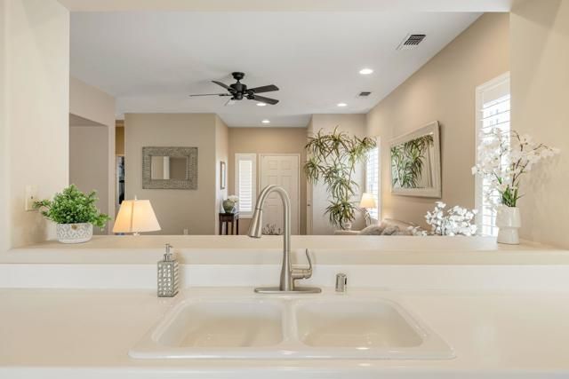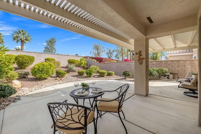 Located in the best 55+ community in the Valley, Sun City Palm Desert, this Pasadena model is one of the favorites. It has a NEW HVAC in 2024, Plantation Shutters throughout, 2 bedrooms, 2 bathrooms, and a 2-car attached garage. The kitchen opens to the living room with an open concept, and has a slider to the large, private backyard with an Alumawood cover, built-in BBQ, and extended patio. The master suite views the backyard and has a walk-in shower, and a walk-in closet. The guest bedroom has a Murphy bed, and is adjacent to the 2nd full bathroom. The 2-car garage has the laundry, which is included, and a newer hot water tank. This is a great home at a great price. SUN CITY PALM DESERT IS ALL ABOUT LIFESTYLE!! It has many clubs, activities, amenities, and low HOA dues. Play at 2 championship 18-hole golf courses and practice facilities, pickle ball, tennis, softball, bocci ball, an 18-hole miniature golf course, an honor library, arts and crafts, a ballroom for special entertainment, and 4 saltwater pools kept at 87 degrees with hot tubs. Enjoy 2 great restaurants, a martini/coffee bar, and even a post office. There is a newly renovated classy indoor/outdoor bar with fire tables to enjoy the awesome views and our beautiful desert weather.