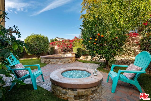 Welcome to this beautifully maintained, fully furnished Pasadena model located in the highly sought-after Sun City Palm Desert community. Designed for effortless desert living, this home is truly ready for immediate enjoyment. Step outside to your own private backyard retreat featuring a sparkling 8-person in-ground spa, covered patio, firepit, BBQ, and lush landscaping - perfect for relaxing or entertaining under the desert sky. A new, large 4-passenger golf cart is also included for added convenience and fun. Inside, the spacious great room seamlessly connects to the bright eat-in kitchen, which opens directly to the covered patio for ideal indoor-outdoor living. The ensuite primary bedroom overlooks the stunning backyard and offers an oversized walk-in closet and walk-in shower. A guest bedroom (or optional den) is thoughtfully situated on the opposite side of the home for privacy. Plantation shutters adorn all windows, adding timeless style and comfort. Located in this premier 55+ active adult community often described by residents as "summer camp for adults "Sun City Palm Desert is a four-time recipient of the "Best of Desert" award and was recognized by Money as one of the Best Places to Retire in America. Residents enjoy resort-style amenities, Golf, Pickleball, Tennis, Bocce, indoor, outdoor pools and loads of activities & clubs...too many to mention - and 2 restaurants. This home also includes a nearby semi-private neighborhood pool and BBQ area. Your HOA dues cover cable, internet & pest control. Convenient golf cart access to the adjacent shopping center. This home is an exceptional value and comes fully appointed with tasteful furnishings - simply bring your suitcase and start living the lifestyle you deserve.