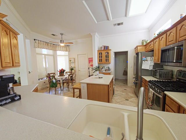 This Stunning Morocco Model Offers The Perfect Blend Of Comfort, Style, And Flexibility With 2 Bedrooms, An Office/Den, And A Detached Guest House/Casita Ideal For Visitors, Hobbies, Or A Private Workspace.Inside, The Home Features Raised Panel Cabinetry, Custom Flooring, 10' Ceilings, Transom Windows, And Custom Window Treatments That Create A Bright, Elegant Atmosphere. The Spacious Eat In Kitchen Includes A Large Center Island, Newer Appliances, And A Convenient Breakfast Bar--Perfect For Casual Dining And Entertaining.The Detached Guest House/Casita Provides Exceptional Privacy And Versatility, Making It A Standout Feature For Hosting Family And Friends Or Creating A Dedicated Office Or Studio.This Home Offers Excellent Curb Appeal With Lush, Mature Landscaping That Enhances Its Beauty And Value. Additional Conveniences Include A Separate Laundry Room And A 2 Car Garage.Buyer to pay HOA Reclamation fee, equal to 6 months HOA dues