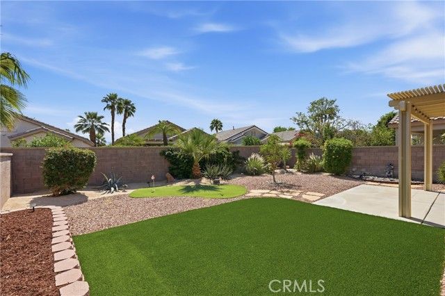 Welcome to Sun City Palm Desert-one of the most sought-after active adult communities in the Valley. This home offers comfort, style, and an easy desert lifestyle.The home features 2 bedrooms, 2 bathrooms, and a 2-car attached garage, along with plantation shutters throughout. The kitchen and living areas offer a comfortable and functional layout, ideal for both everyday living and entertaining. Step outside to your private backyard, complete with your very own putting green-perfect for relaxing or practicing your short game. The home is well maintained and has been lovingly cared for. The primary suite overlooks the backyard and includes a walk-in shower and generous walk-in closet. The guest bedroom is equipped with a convenient Murphy bed and sits adjacent to a full second bathroom. The garage houses the laundry area (included) and a newer water heater. Beyond the home, the community truly shines. Sun City Palm Desert is all about lifestyle-offering a wide array of clubs, social activities, and resort-style amenities with low HOA dues. Residents enjoy two championship 18-hole golf courses, practice facilities, pickleball, tennis, softball, bocce ball, and even an 18-hole putting course. Additional highlights include an honor library, arts and crafts studios, a grand ballroom for events, and four saltwater pools with hot tubs maintained at a comfortable 87 degrees.Dining and socializing are just steps away with two on-site restaurants, a martini and coffee bar, a post office, and a newly renovated indoor/outdoor bar featuring fire tables-perfect for taking in the stunning desert views and beautiful weather.This is an exceptional opportunity to enjoy resort-style living at an incredible value.