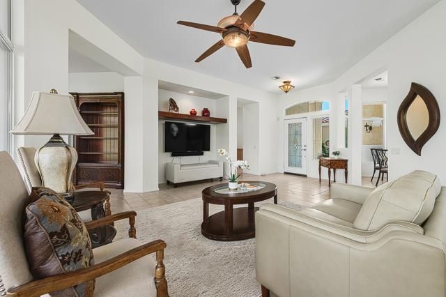 New Price -- Now the Best Value on a Morocco Floorplan on the Golf Course!With a new price and unmatched upgrades, this is the best value you'll find on a Morocco model with a detached casita--perfect for guests or a private retreat. This bright and inviting home features an impressive list of 2023 updates, including new HVAC, water heater, dishwasher, gas stove/oven, washer/dryer, refrigerator, and wine fridge.The light-filled layout offers 2 bedrooms, 2 bathrooms, a den/office, and a private casita with wet bar and refrigerator. Additional highlights include freshly painted interiors, a new mini-split and mini refrigerator in the casita, and a two-car plus golf cart garage with its own A/C split.Ideally located near the Sunset View Clubhouse and overlooking the 18th tee of the San Gorgonio Course, this furnished home captures the essence of resort-style living in Sun City Palm Desert, the Coachella Valley's premier active 55+ community.