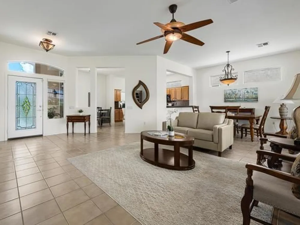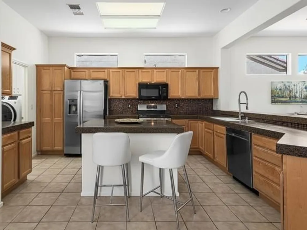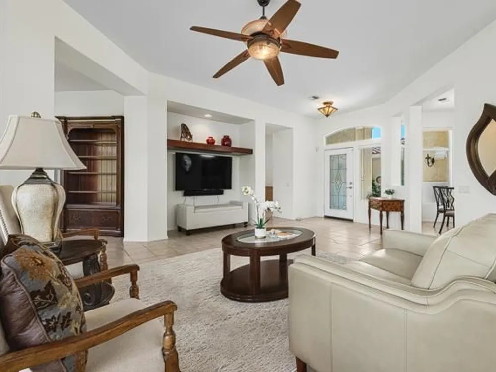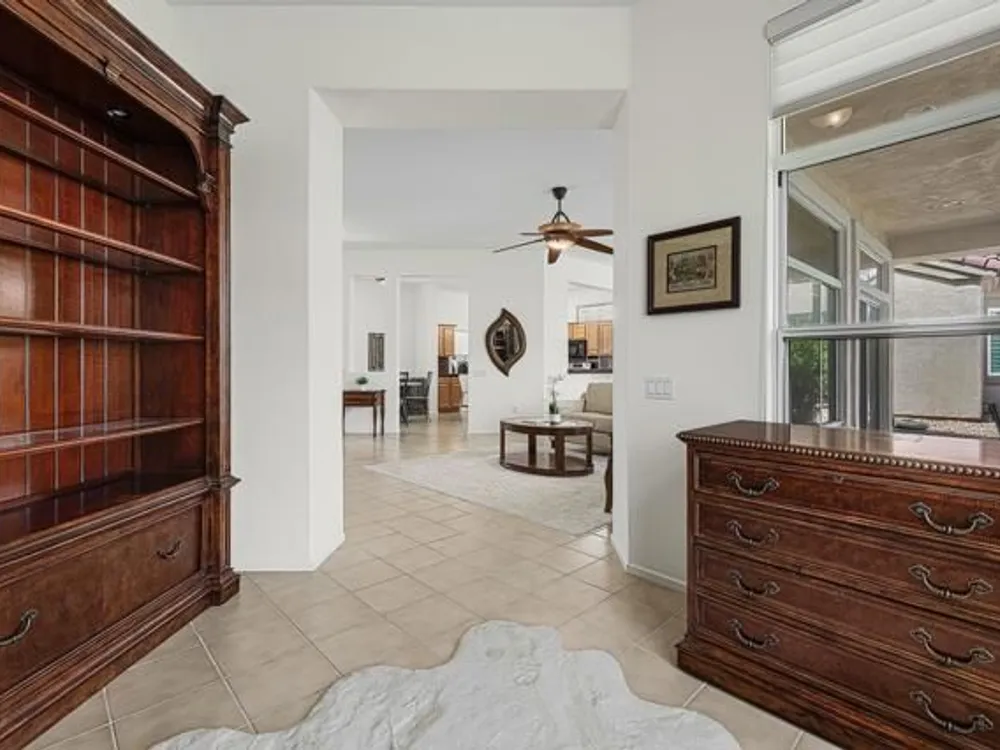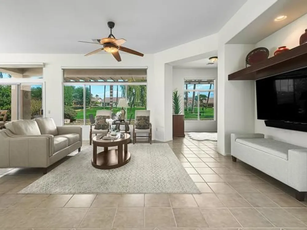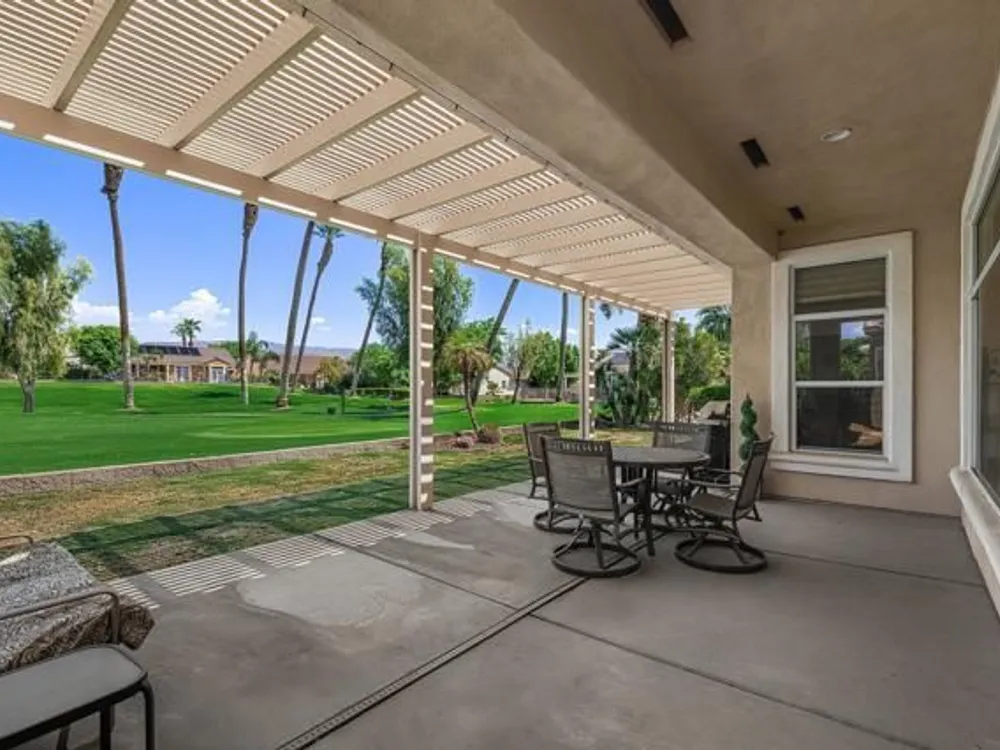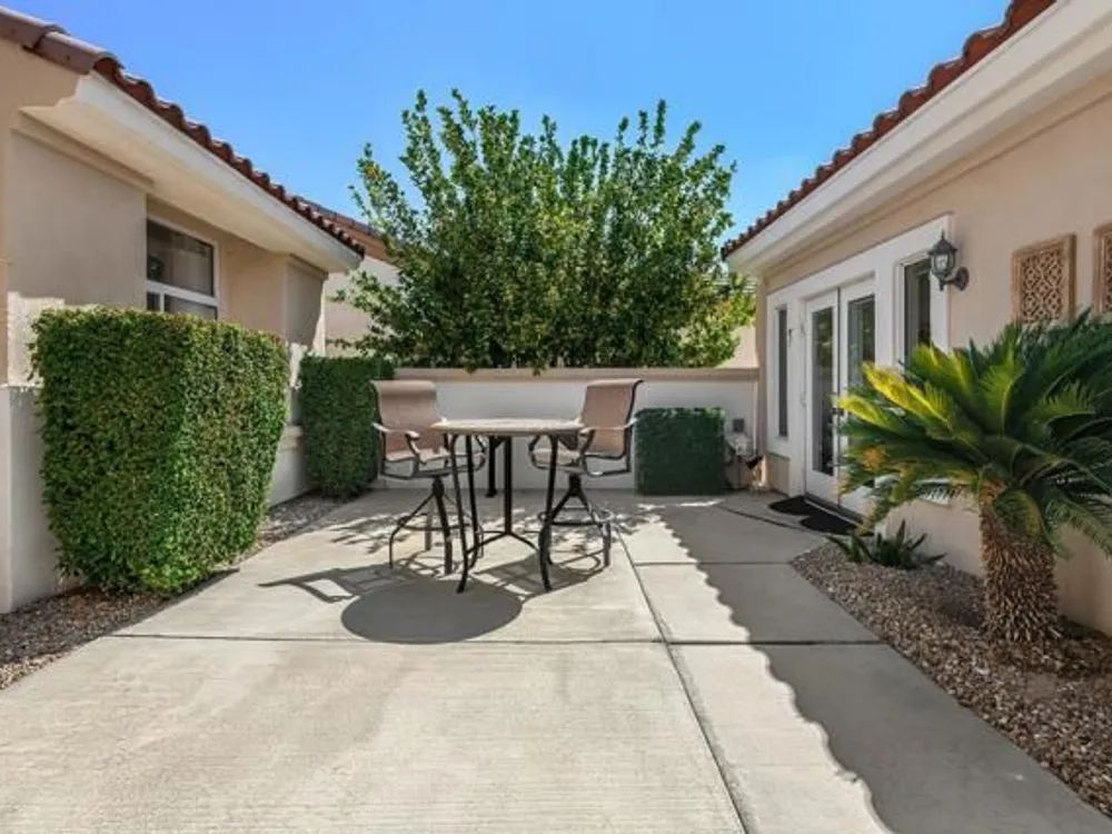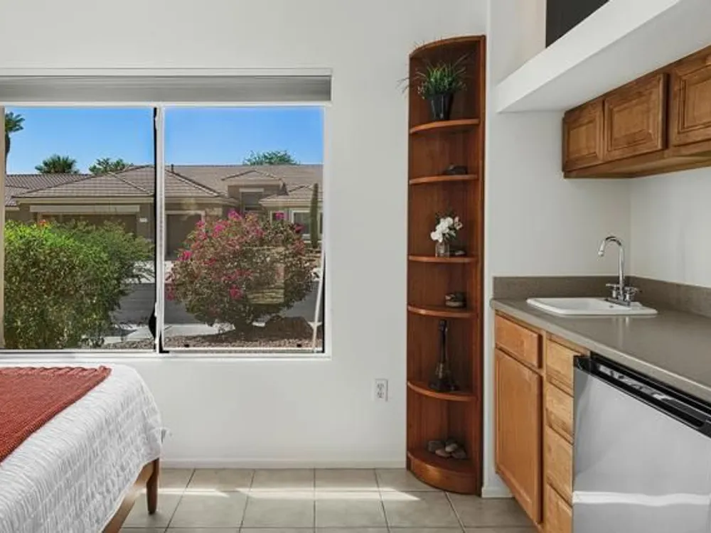 This bright, light, and spacious Morocco model offers 2 bedrooms, 2 bathrooms, a den/office, and a private detached casita with wet bar and refrigerator, perfect for guests or a private retreat. Offered FURNISHED, this home features numerous 2023 UPGRADES, freshly PAINTED INTERIOR, new HVAC, WATER HEATER, DISHWASHER, GAS STOVE/OVEN, WASHER/DRYER, REFRIGERATOR and WINE FRIDGE. Enhancements also include a NEW MINI-SPLIT & MINI REFRIGERATOR in the CASITA. Together, the spaces capture the essence of resort-style living in Sun City Palm Desert, the Coachella Valley's premier active adult community. This home is also conveniently located near the Sunset View Clubhouse, with a backyard overlooking the 18th tee of the San Gorgonio Course. The two(2) car garage with extra room for a golf cart has its own A/C split. Don't miss your chance to own a stunning property in one of the desert's most desirable active adult communities, offering two golf courses, pickleball and tennis courts, a dog park, and countless other amenities. View the full list at scpdca.com Tour today and step into the lifestyle you've been waiting for.