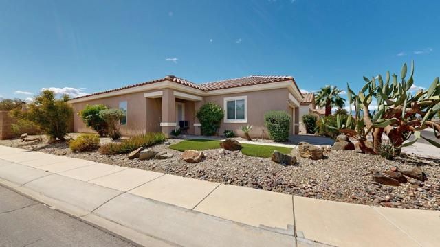 This is a short sale subject to lender approval. One of the largest backyards in the entire community--paired with rare access to a private pool and spa just down the street. This beautifully upgraded corner-lot home offers 2 spacious bedrooms, 2 full bathrooms, of open-concept living designed for comfort, connection, and easy indoor-outdoor flow.Set on one of only nine streets in Sun City Palm Desert with direct access to the private Newcastle pool and spa, this home is a rare find. The oversized backyard is a true highlight--an entertainer's dream and a peaceful escape all in one. It features low-maintenance native landscaping, pet-friendly smooth river rock that's gentle on paws, and a full misting system to keep the outdoor living area cool and enjoyable even in the summer. The living area is bright and welcoming, with large windows that let in the desert sunshine and provide views of the lush backyard.The kitchen features crisp white cabinetry, ample counter space, and a gas range, making it perfect for both daily use and entertaining. The seamless flow into the dining and living spaces invites connection and ease.The primary suite includes a walk-in closet, private en-suite bathroom with a walk-in shower, and modern fixtures. The guest bedroom is equally comfortable and versatile--ideal as a guest space, office, or hobby room. Both bathrooms include built-in bidets, adding a touch of comfort and luxury to daily living.Evenings are made magical thanks to a ceiling-mounted 4K projector and 126' retractable outdoor screen--perfect for watching sports, movies, or music under the stars. A private jacuzzi adds the finishing touch to this custom backyard retreat.Additional highlights include low-cost electricity from Imperial Irrigation District (IID), a covered patio for shaded lounging or dining, and the quiet privacy of a premium corner lot.Sun City Palm Desert is a nationally recognized 55+ community--named one of the top 10 places to retire in the U.S. by Money Magazine. With low HOA fees, award-winning amenities, and an active social calendar, this is one of the best values in the desert.
