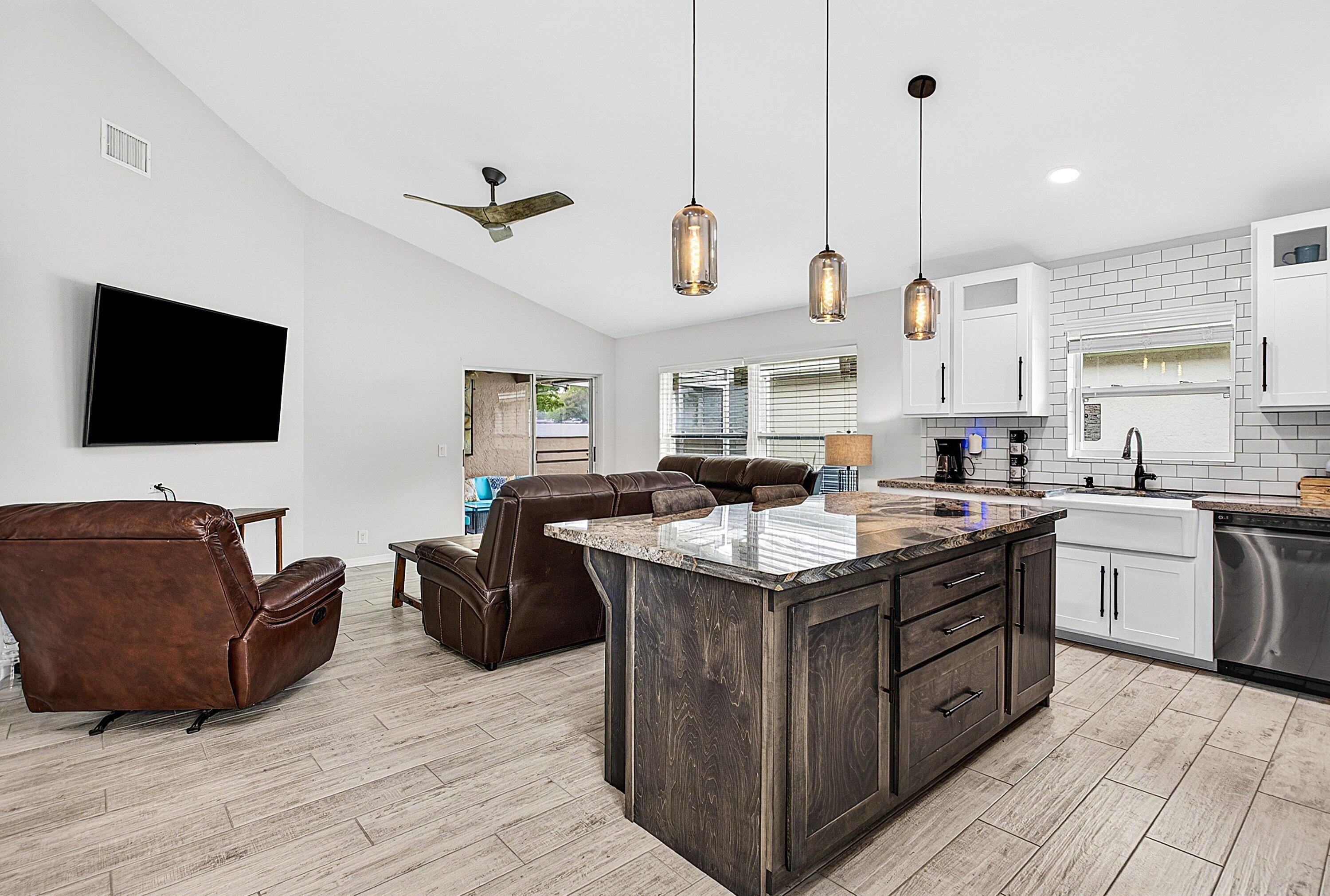 Beautifully remodeled 3-bedroom, 2-bath single-family home with 2-car garage in the 55+ community of Pine Ridge at Delray. Set on a large corner lot directly across from the pool and tennis courts, this bright, open-concept home features designer custom finishes, cathedral ceilings, recessed LED lighting, wood-look porcelain tile, and all-new impact windows and doors. The gourmet kitchen offers hand-made custom cabinetry, stone countertops, and stainless steel appliances. The primary suite features vaulted ceilings, outfitted walk-in closet, and spa-inspired bath with custom glass zero-entry shower. Two additional bedrooms offer flexible guest/office space. The insulated, air-conditioned garage includes wall-to-wall cabinetry—ideal for a craftsman, hobbyist, or extra storage. Pine Ridge of Delray amenities include a clubhouse, two pools, hot tubs, tennis, shuffleboard, bingo, yoga, and an exercise room. The low HOA fee covers exterior house painting, lawn care, driveway and walkway pressure washing, common area maintenance, exterior pest and weed control, basic ADT security, and front tree trimming where owned by the HOA. Excellent location in a growing area near Delray Marketplace, shopping, dining, movies, downtown Delray Beach, the beach, and the Florida Turnpike.