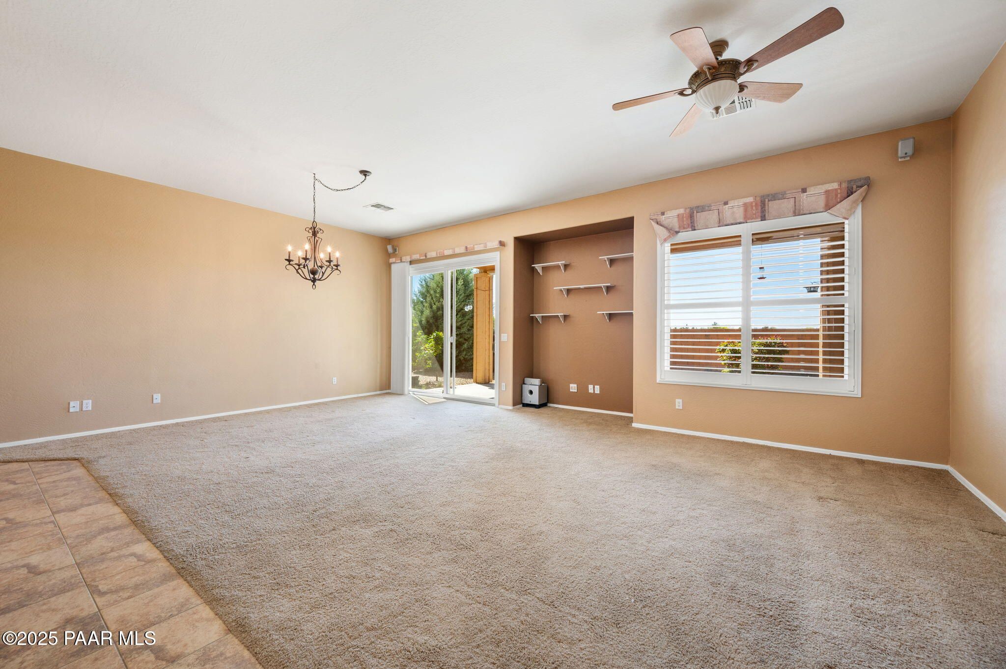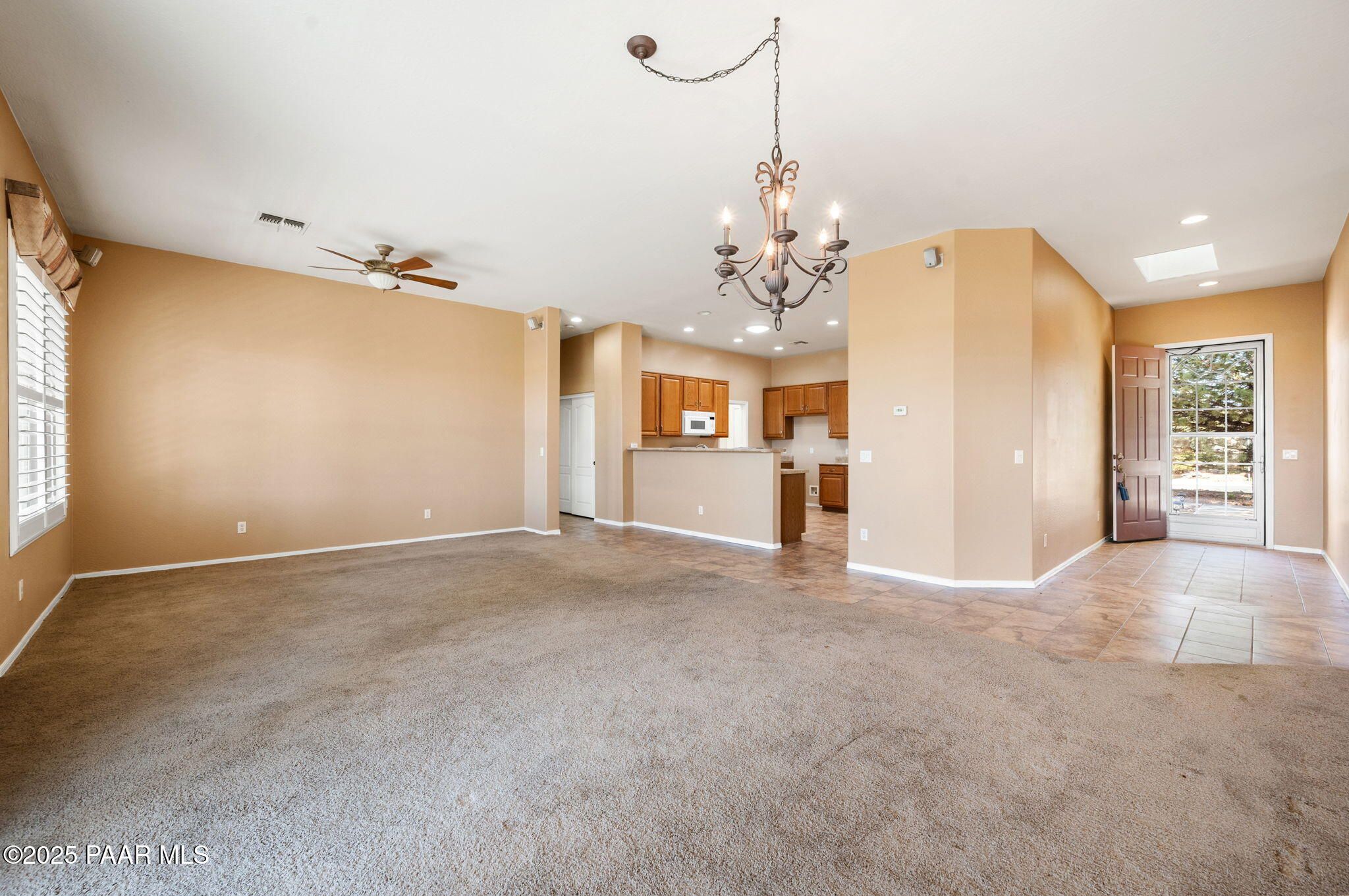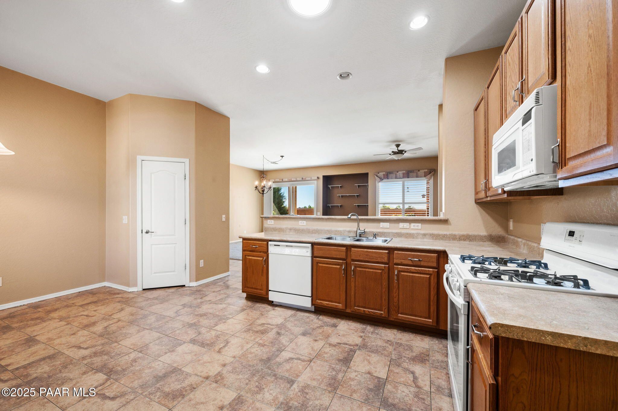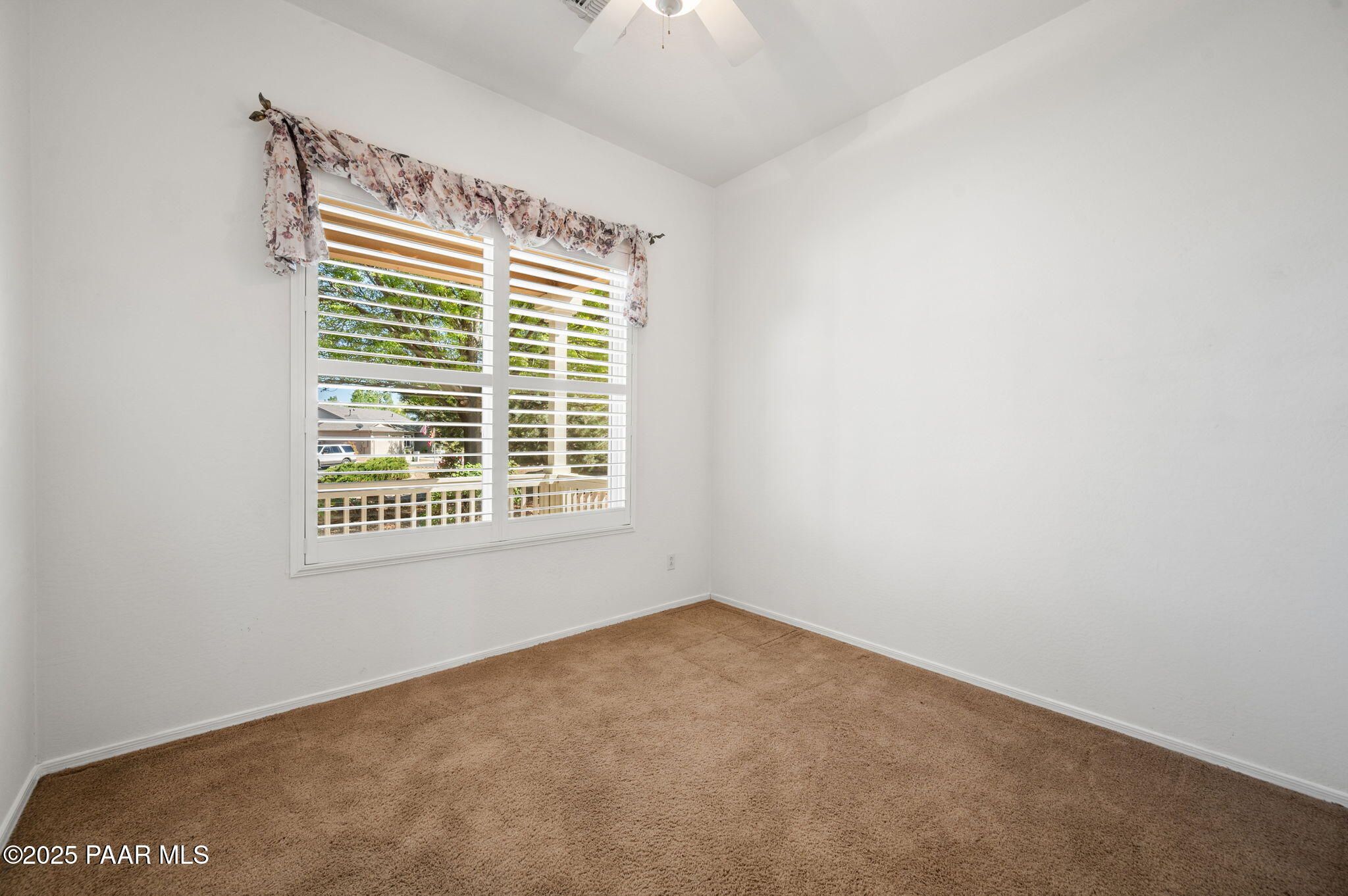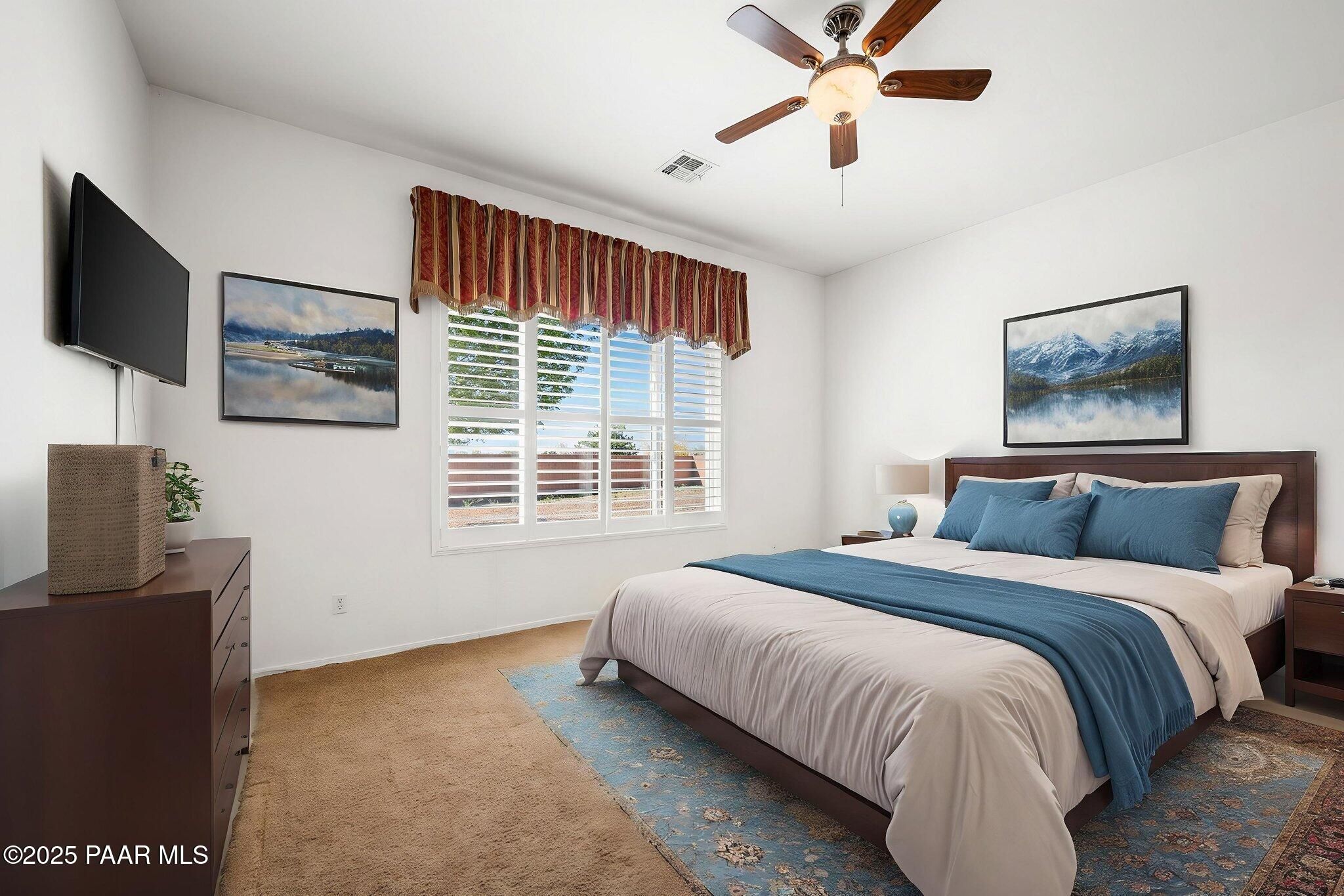 Incredible value in Pronghorn Ranch! This spacious home on a .33-acre cul-de-sac lot offers big-ticket updates already done: brand-new roof and new Anderson sliders/windows throughout. High 10' ceilings, skylights, and a split floor plan create a bright, open feel. The split floor plan offers great flow, with a functional kitchen including pullout drawers, and the cozy living area with built-in surround sound. Enjoy sunset views from the private back patio, mature landscaping, and timeless plantation shutters. With just a few personal touches, this home offers instant equity and long-term value in one of Prescott Valley's most desirable neighborhoods packed with amenities - pool, pickleball, fitness, events and more!