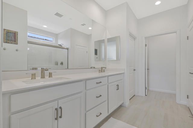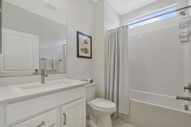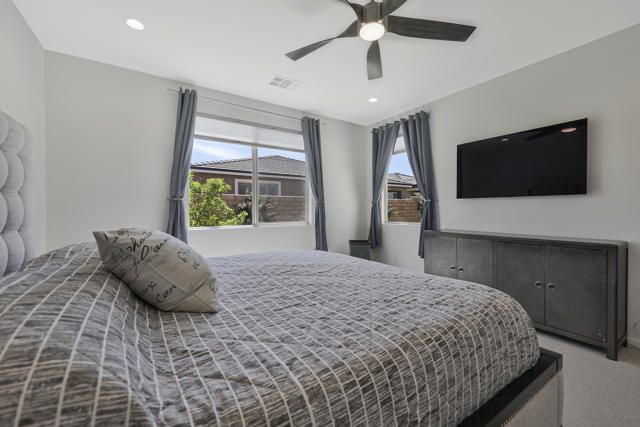 Innovative and Contemporary, this Comfortable Modern Design Features High Ceilings, Open Floor Plan, Light Porcelain Tile Floors, and Immaculate White Cabinetry and Countertops throughout. Gourmet Kitchen with Spacious Countertops, Upgraded Whirlpool Stainless Appliances, Island with Bar Seating and Pantry. Primary Bedroom with En-Suite Bath and Luxurious Oversized Walk-In Closet. Secondary Guest Room Privately Located away from Primary. This Popular Silver Creek Plan also features a Generous Sized Office which could easily be made into a Third Bedroom. Surround Sound and Motorized Shades in Great Room. Glass Sliders Open Great Room/Dining/Kitchen to Covered Patio--Perfect for Indoor Outdoor Entertaining with Family and Friends. Professionally Designed Backyard Landscape with Lighting and Irrigation. Owned Solar Panels. So many upgrades and Move-in Ready! Seize the Day and get into the Fun that this Community has to offer! Community Club House, Pool, Spa, Fitness, Pickle Ball and Bocce Court! Furnishings Negotiable outside of Escrow.