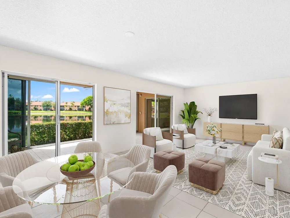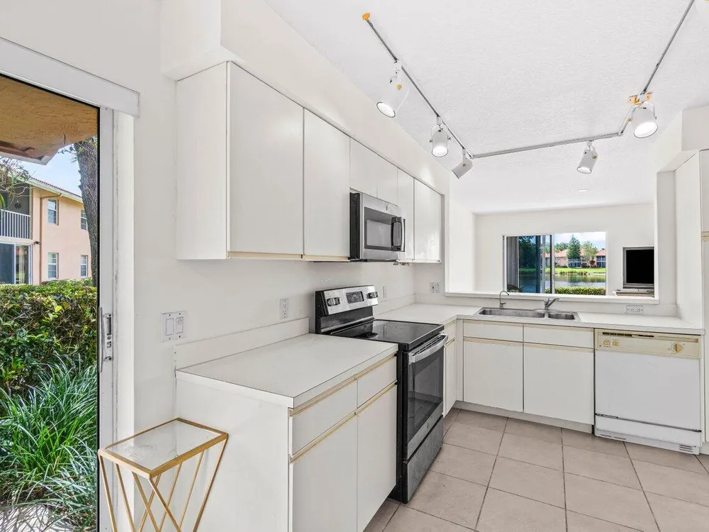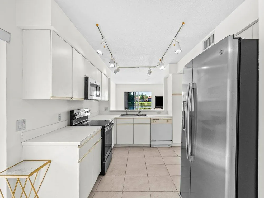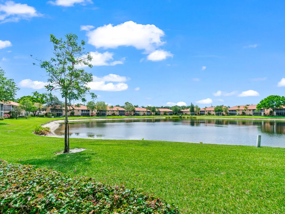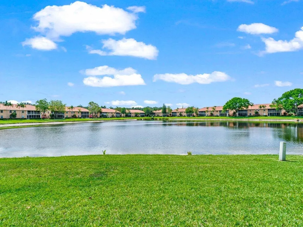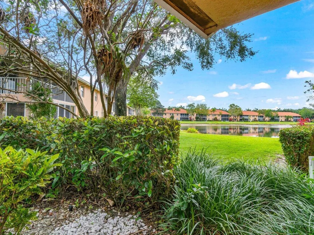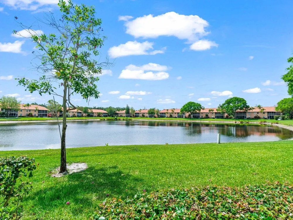 A must-see first floor, single level, three bedrooms, two bath end unit with spectacular water views from nearly every room! This private, peaceful residence has ample space for living and entertaining and two separate patios allow you to enjoy the indoor/outdoor Florida lifestyle and beautiful lake views. Tasteful interior upgrades include a new stainless-steel refrigerator, stove, and microwave in the kitchen, a newly remodeled guest bathroom, newly tiled master bedroom and shower, all the popcorn has been removed from the ceiling and the unit is freshly painted throughout! The complex will be repainted in soft hues of gray and all the assessments have been paid. Please see more.