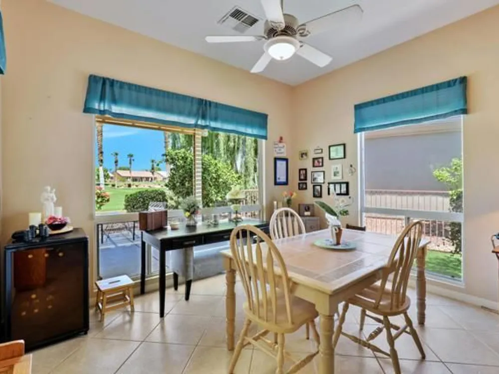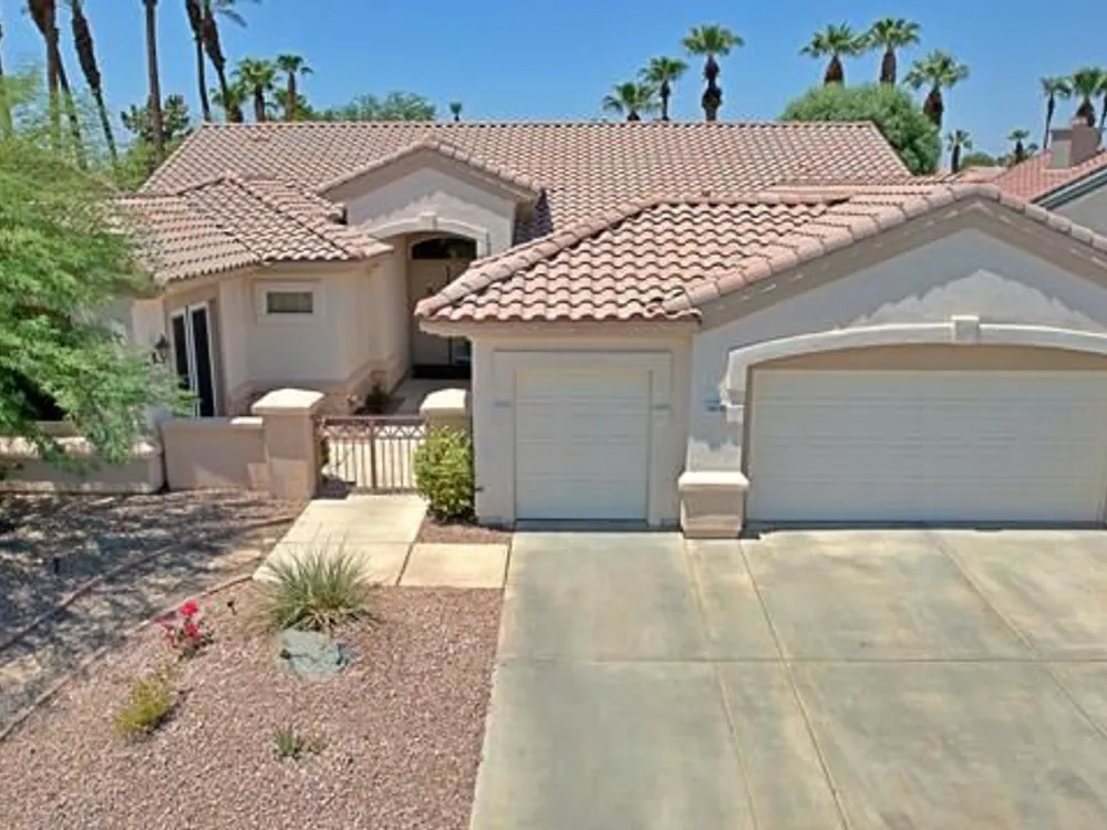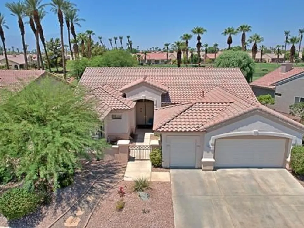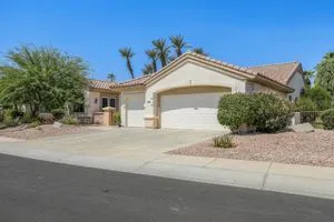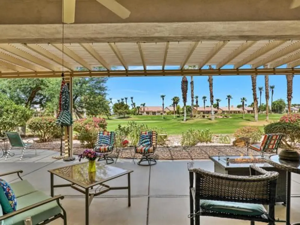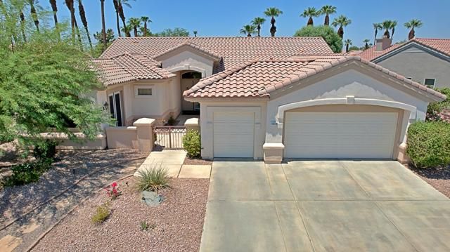 Welcome to this beautifully maintained 2,432 sq ft home, featuring 3 spacious bedrooms and 3 full bathrooms. Located in the highly sought-after Sun City Palm Desert, this rare Monaco model is on the San Gorgonio course, 17th hole! Offering breathtaking golf course views that can be enjoyed from your private backyard--complete with professional-grade misters for ultimate comfort year-round. Light, bright, and meticulously cared for, this home is move-in ready. Don't miss your chance to own a stunning property in one of the desert's most desirable communities!
