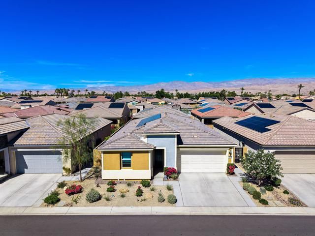 Welcome to high-end living in the gated 55+ community of Domani! This meticulously maintained home features an open-concept great room with custom shades and newly updated professional landscaping. Designed for maximum value, this property offers incredible monthly savings with IID electric service, leased solar, low HOA dues. The garage is a hobbyist's dream, fully equipped with a dedicated AC unit, epoxy flooring, and an insulated door. Additional premium upgrades include a whole-home water softener, indoor water filtration system, and rain gutters. Residents enjoy resort-style amenities including fitness center, pool, spa, dog park, and active pickleball and bocce ball courts.
