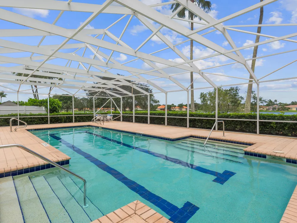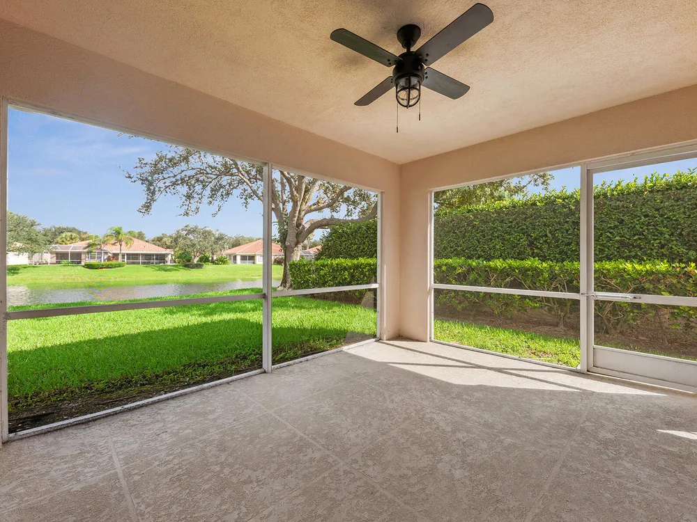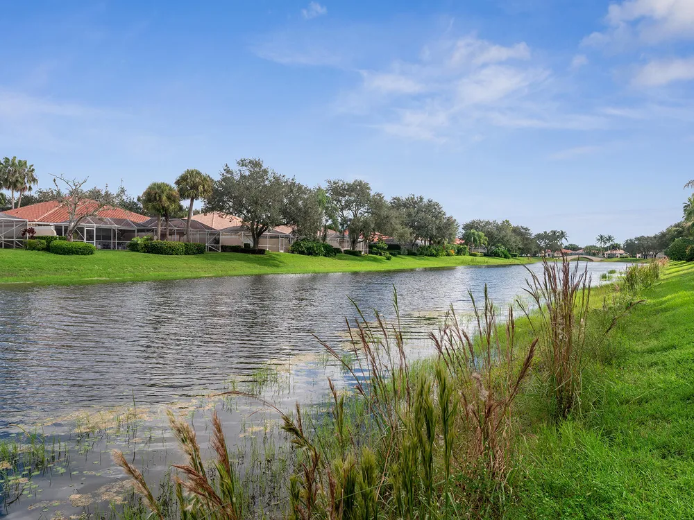 A Tropically Landscaped, Lakeside Lot with Views of the Tranquil Lake, is One Attributes that makes this Capri, An Irresistibly Good Buy, In RiverWalk, A 24 Hour Manned Gated Community in One of the Best Locations in Palm Beach County, 15-20 minutes to Everything including Palm Beach, the Ocean & Airport! This is Only the Beginning! The Wide & Inviting Entry Courtyard, Enhanced by a Gorgeous Vine Covered Wall, leads to the Foyer with a Gleaming White Ceramic Tile Floor, that Opens to the Carpeted Great Room with a Full Wall Mirrored Entertainment Center! The Ceramic Tile Kitchen, the Hub for Everyday Living & Casual Entertaining has, Ceramic Tile Backsplashes, All the Appliances including a Refrigerator, Ceramic Top Range, New Dishwasher & a Microwave, a Pantry & a Ceiling Fan Overlooking