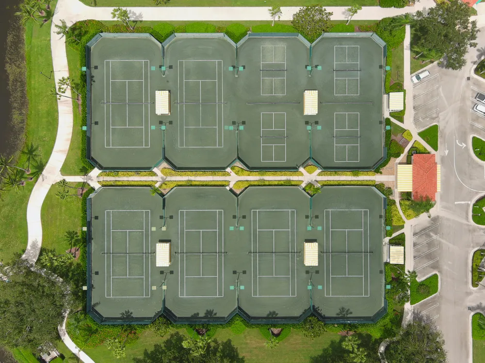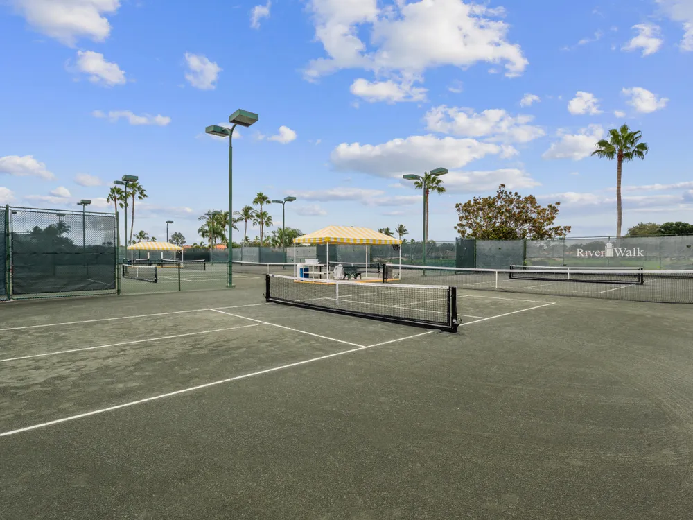 - Bocce, Restaurant, Clubhouse, Community Room, Fitness Center, Game Room, Pickleball, Picnic Area, Playground, Pool, Sidewalks, Street Lights, Tennis Court(s)