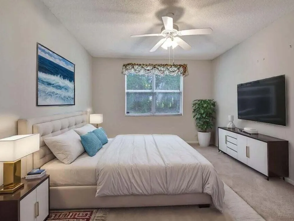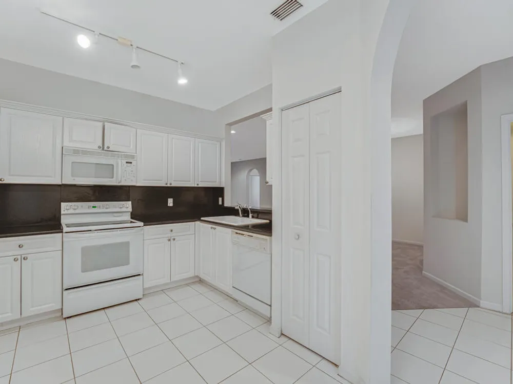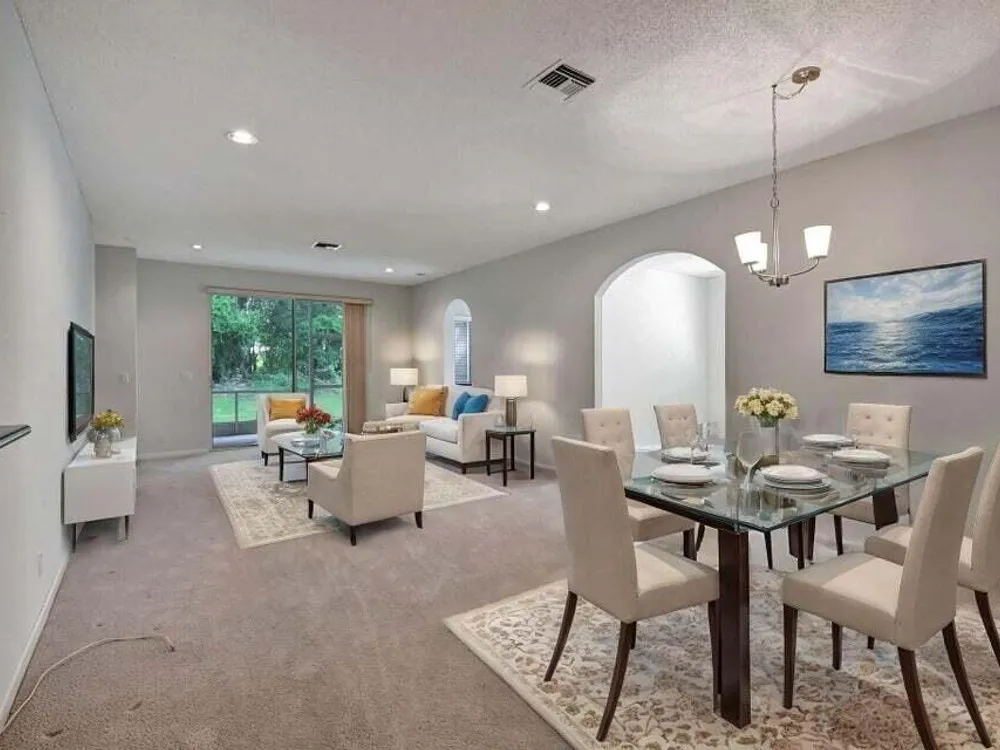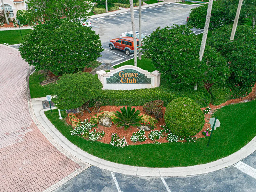 Brand new carpet and newly painted first floor unit has 2 bedroom plus spacious den. New A/C unit and new roof. This is an immaculate clean slate. So easy to make your own. Great quiet location and easy walk to clubhouse. The Grove is a wonderful active lifestyle community with tons of activities and amenities. Please see photos for Clubhouse amenities.
