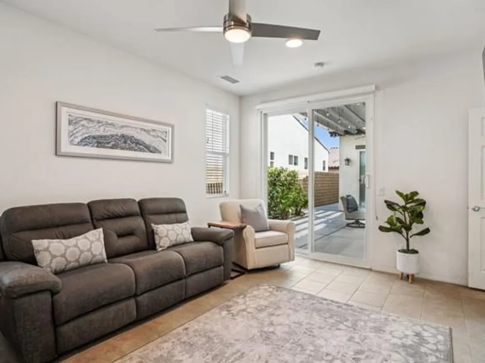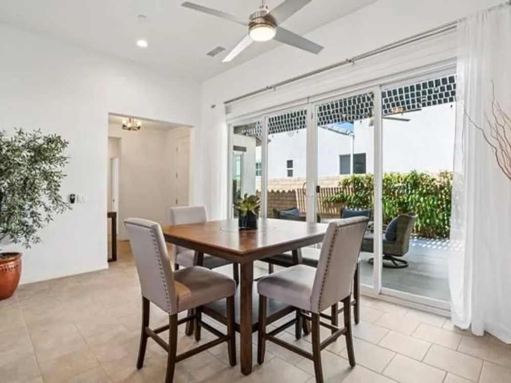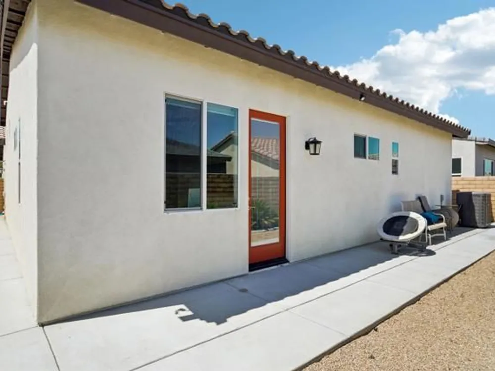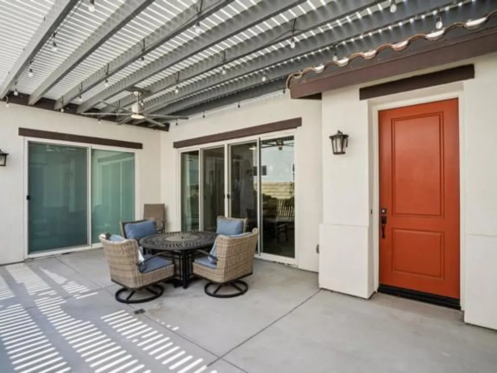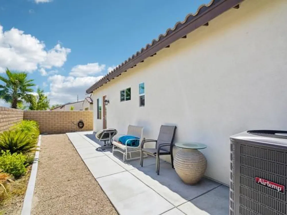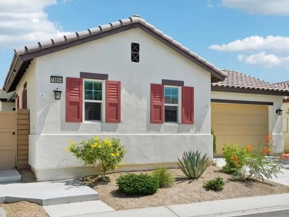 Welcome to Domani, a vibrant 55+ gated community offering resort-style living in the heart of the Coachella Valley. This beautifully furnished, well maintained 3-bedroom, 3.5-bath home features an open-concept layout with soaring ceilings, abundant natural light, and seamless flow between the living, dining, and kitchen areas--perfect for entertaining. The spacious kitchen includes ample cabinetry, modern appliances, and a large island ideal for casual dining. Enjoy indoor-outdoor living in the private courtyard-style patio complete with a pergola ideal for relaxing evenings. Just a short walk from the community's amenities, including a clubhouse, pool, spa, and fitness center. Experience the best of active adult living in this stylish and move-in ready home.
