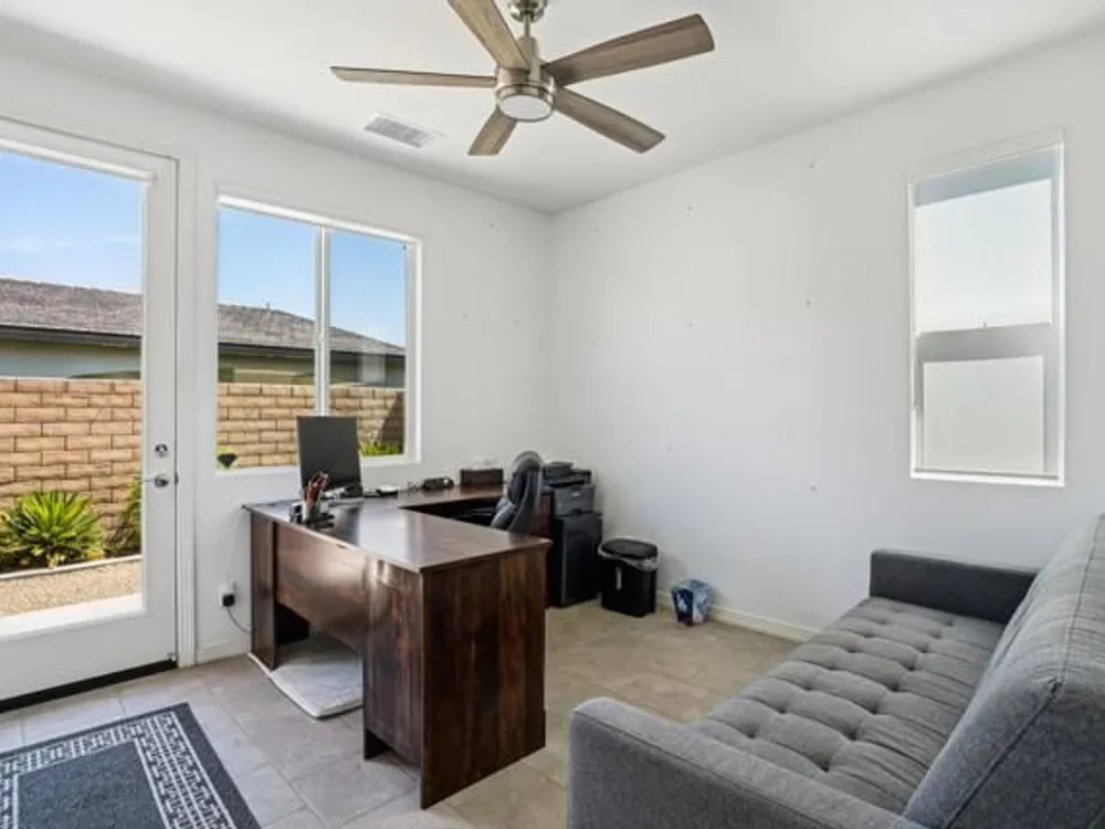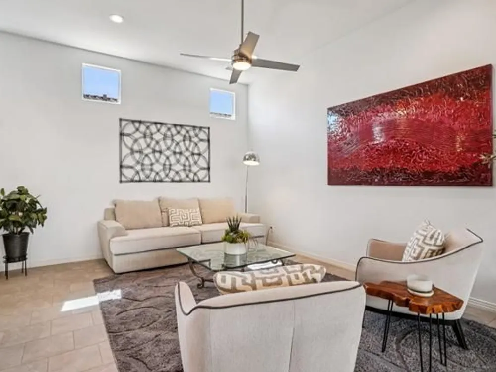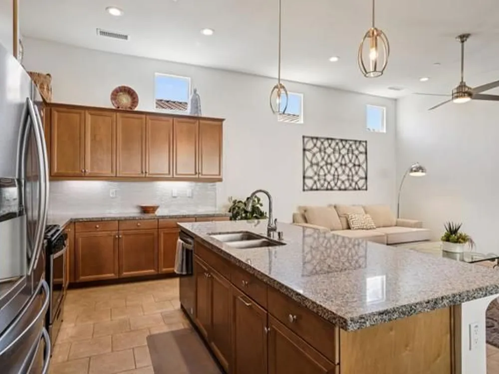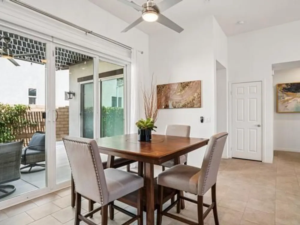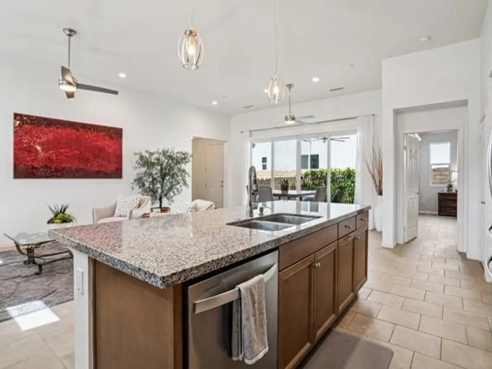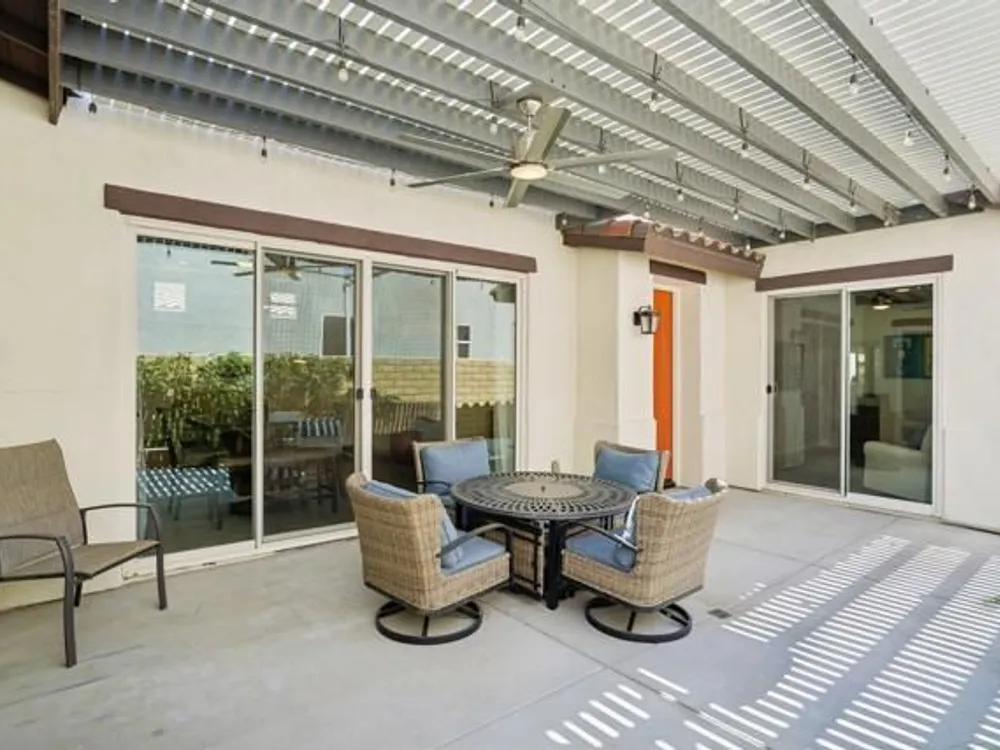 Welcome to Domani, a vibrant 55+ gated community offering resort-style living in the heart of the Coachella Valley. This beautifully furnished, well maintained 3-bedroom, 3.5-bath home features an open-concept layout with soaring ceilings, abundant natural light, and seamless flow between the living, dining, and kitchen areas--perfect for entertaining. The spacious kitchen includes ample cabinetry, modern appliances, and a large island ideal for casual dining. Enjoy indoor-outdoor living in the private courtyard-style patio complete with a pergola ideal for relaxing evenings. Just a short walk from the community's amenities, including a clubhouse, pool, spa, and fitness center. Experience the best of active adult living in this stylish and move-in ready home.