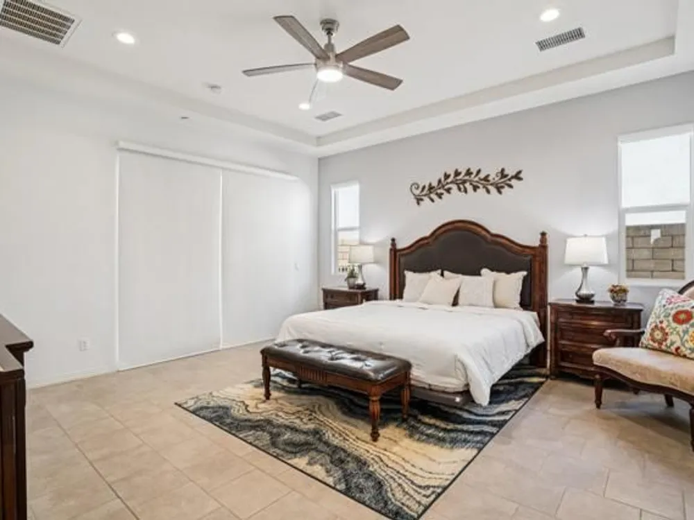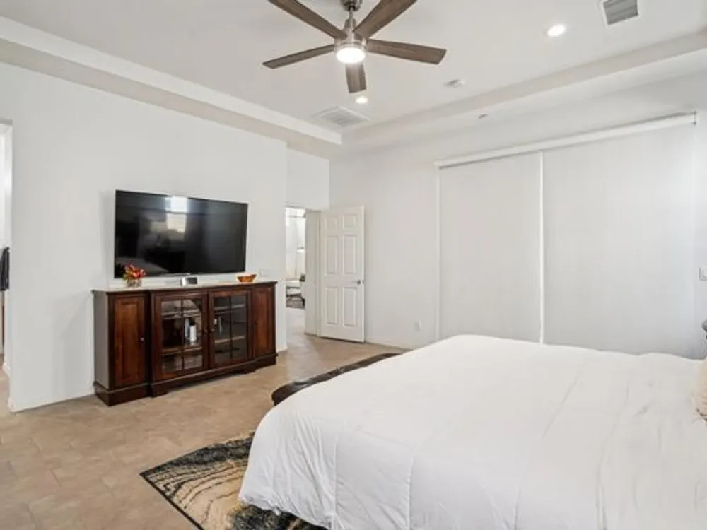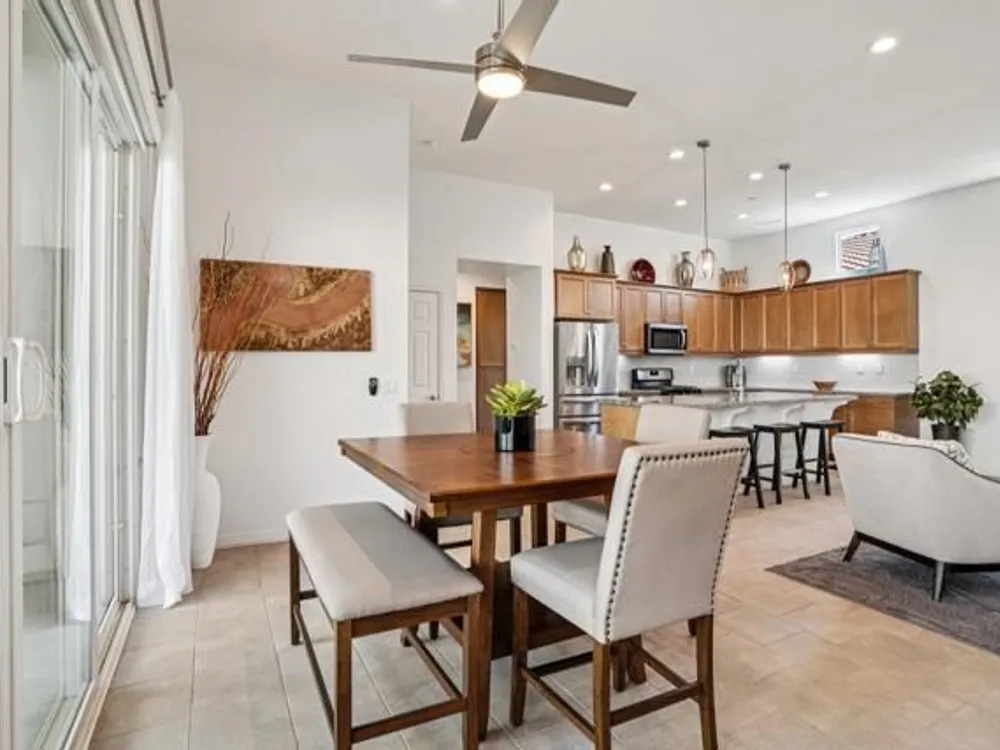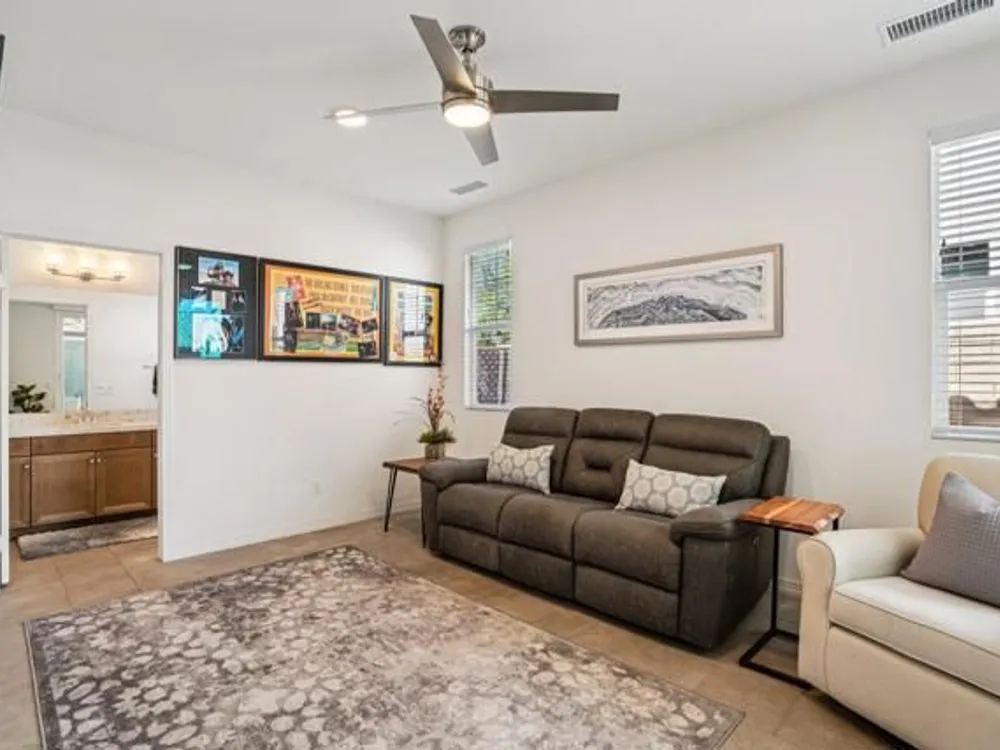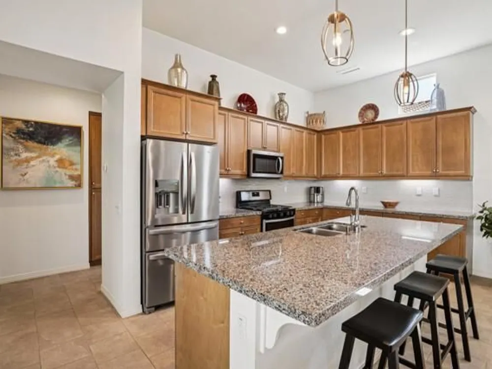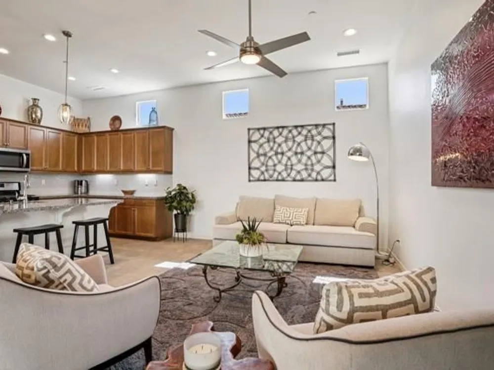 Welcome to Domani, a vibrant 55+ gated community offering resort-style living in the heart of the Coachella Valley. This beautifully furnished, well maintained 3-bedroom, 3.5-bath home features an open-concept layout with soaring ceilings, abundant natural light, and seamless flow between the living, dining, and kitchen areas--perfect for entertaining. The spacious kitchen includes ample cabinetry, modern appliances, and a large island ideal for casual dining. Enjoy indoor-outdoor living in the private courtyard-style patio complete with a pergola ideal for relaxing evenings. Just a short walk from the community's amenities, including a clubhouse, pool, spa, and fitness center. Experience the best of active adult living in this stylish and move-in ready home.