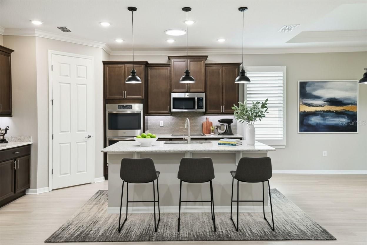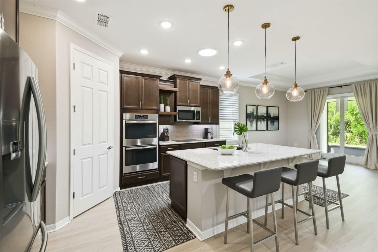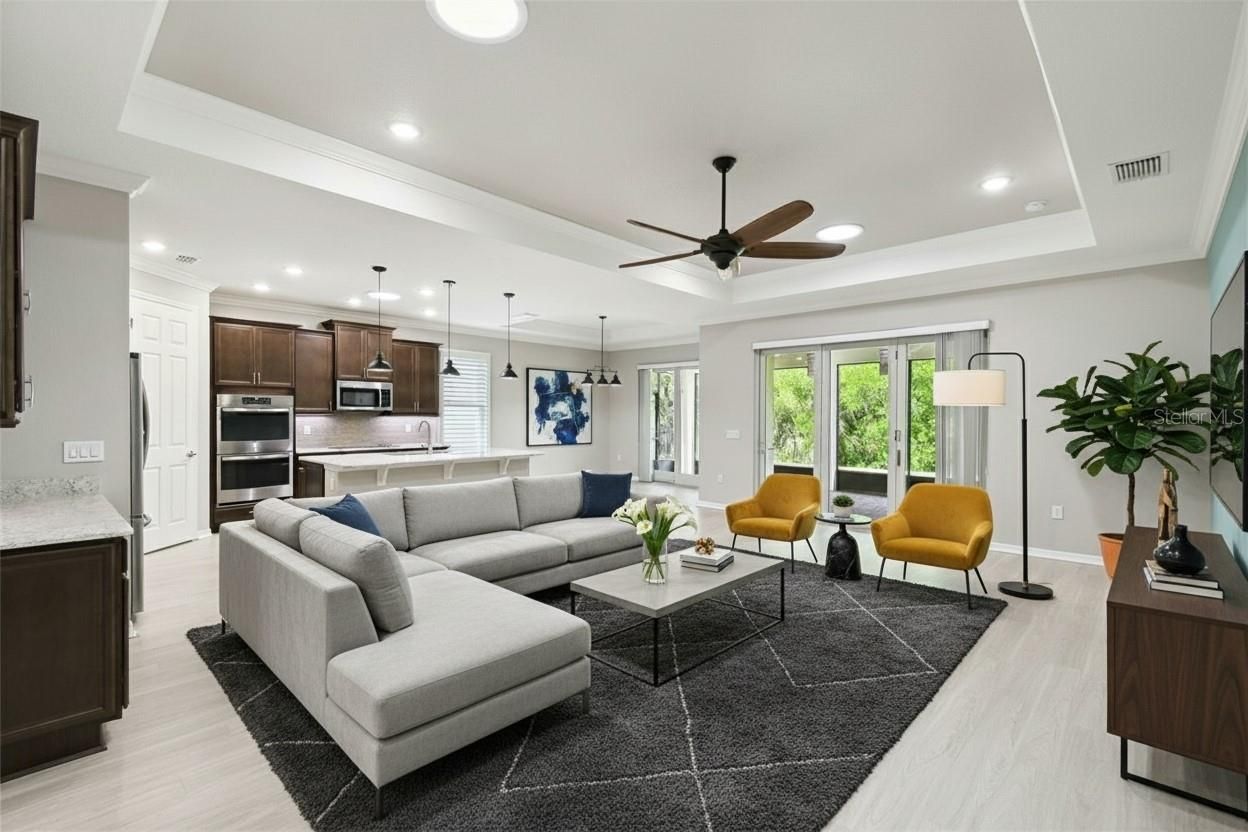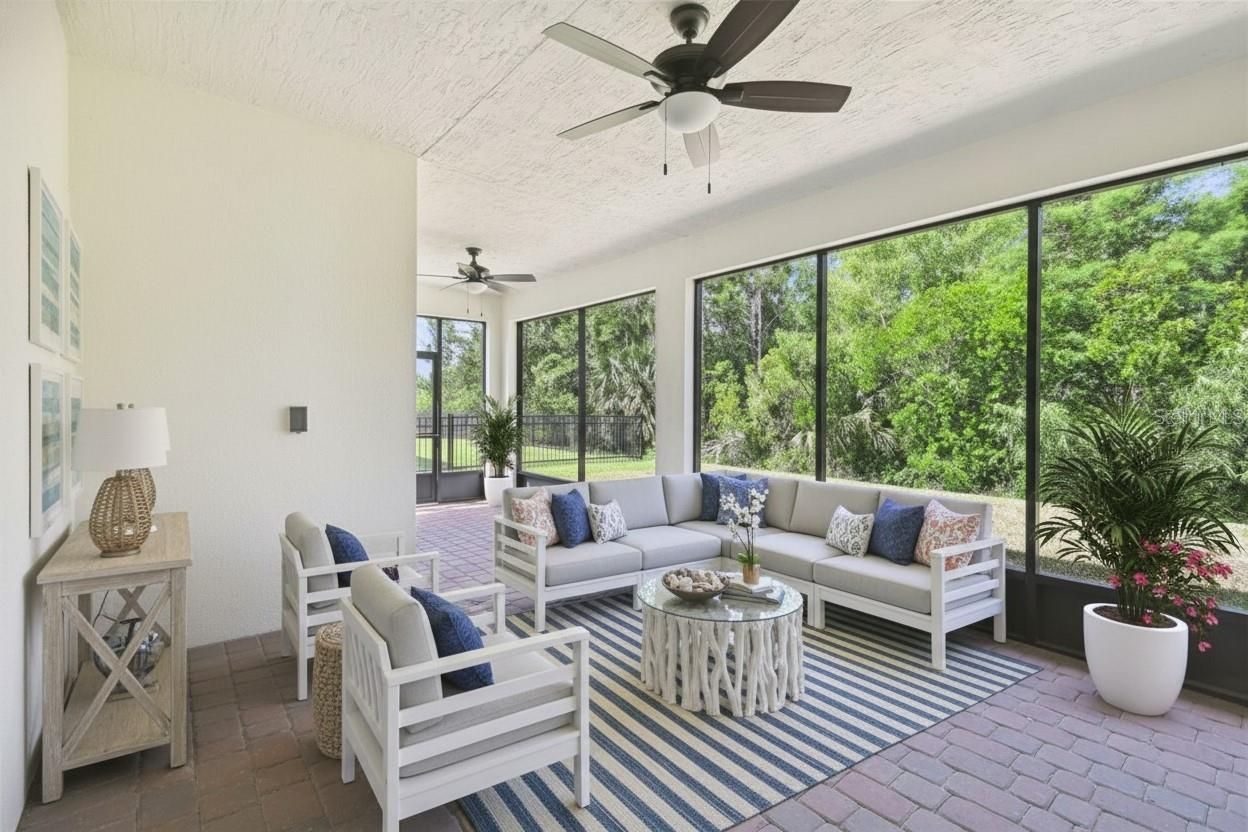 One or more photo(s) has been virtually staged. Back On Market! Buyer's financing Fell Through! Welcome to this like-new, custom-designed Siena model, offering 3 bedrooms, 2.5 bathrooms, a bonus room, and a host of luxurious upgrades. Perfectly situated on a serene conservation lot, this home is a true masterpiece of style, comfort, and functionality. Step onto the inviting front porch and enter through a custom leaded stained-glass door into an open-concept great room enhanced by crown molding and luxury vinyl plank flooring, this home is equipped with brand new custom high-impact hurricane windows and sliders that are higher thermo efficient, offering peace of mind and energy efficiency. 10 solar tubes that fill the space with natural light along with Plantation shutters and high air volume ceiling fans throughout the home add both elegance and comfort. The heart of the home is the chef’s kitchen, designed with entertaining and functionality in mind. It features quartz countertops, a stylish tile backsplash, a double oven, a cook top, and an eat-at bar. The custom walk-in pantry offers ample storage space, ensuring everything stays organized and within reach. Adjacent to the kitchen is a spacious dining area with sliders that open to the screened lanai. This outdoor space provides the perfect setting for enjoying your morning coffee, dining al fresco, or simply taking in the tranquil conservation views. The large primary bedroom is a true retreat, complete with a tray ceiling, crown molding, and peaceful conservation views with large natural lighting. The en-suite bathroom features a large custom shower with a built-in seat, dual vanities, and two spacious custom walk-in closets to meet all your storage needs. The second and third bedrooms are generously sized, each with their own walk-in closet, providing plenty of storage for family or guests. The guest bathroom includes a tub/shower combination, ensuring comfort and convenience for visitors. The bonus room, with double-glass entry doors and serene conservation views, offers endless possibilities. Use it as a home office, hobby room, fitness space, or even a private retreat, the choice is yours! The dedicated laundry room has custom cabinets and a sink, making laundry tasks efficient and organized. The backyard is expansive and offers plenty of space to add a pool or create a custom outdoor oasis. It is also suitable for fencing, making it a perfect area for the family's furry friends. The 2-car garage, complete with an additional golf cart garage, features epoxy-sealed flooring and plenty of overhead storage, ensuring a clean and organized space for vehicles and belongings. Located on a quiet conservation lot, this home offers privacy and tranquility while being just a short distance from community amenities. With its like-new condition, Insurance discounts, high-end upgrades, and thoughtful design, this custom Siena model is completely move-in ready. From the new hurricane-grade windows to the luxurious finishes throughout, this home is truly one of a kind. All this in one of the top 55+ communities in America. Solivita offers residents access to state of the art amenities and work out facilities, dance and aerobics studios, 14 heated swimming pools, 2 heated spas, tennis courts, pickleball courts, softball, shuffleboard, bocce ball, billiards room, art gallery, 3 restaurants and 2 championship 18-hole golf courses. Schedule your private tour today and experience the beauty and comfort of this incredible home!