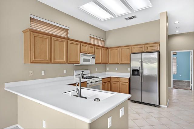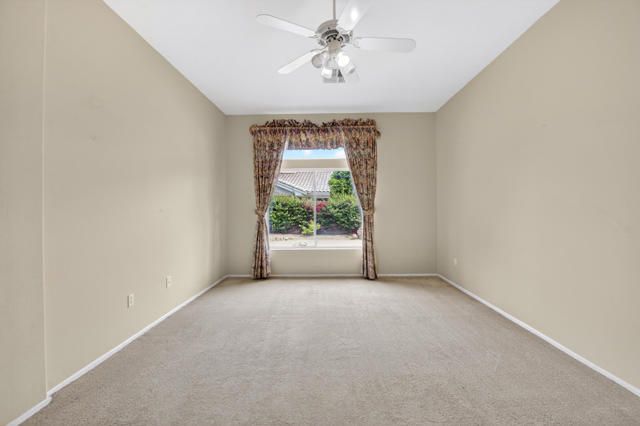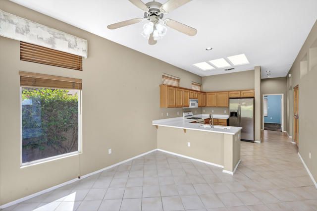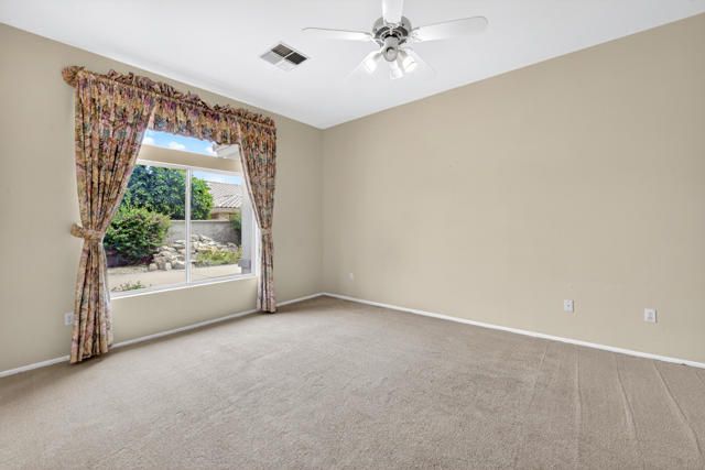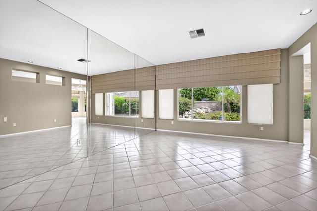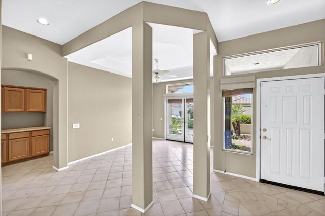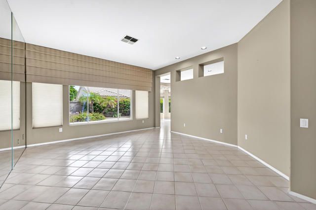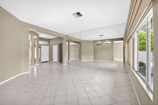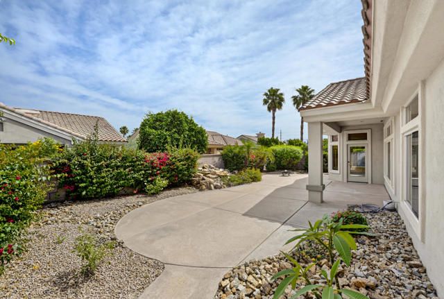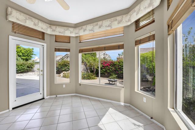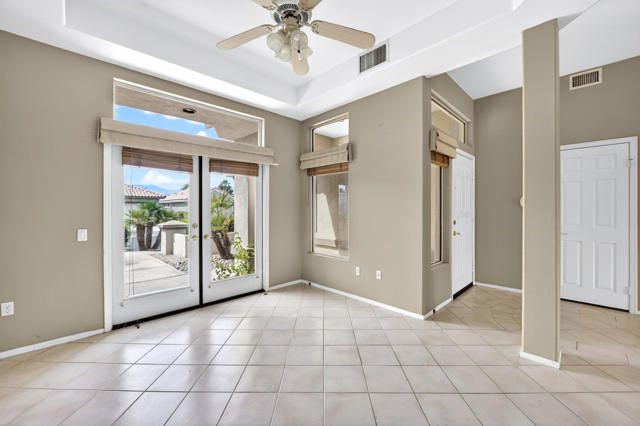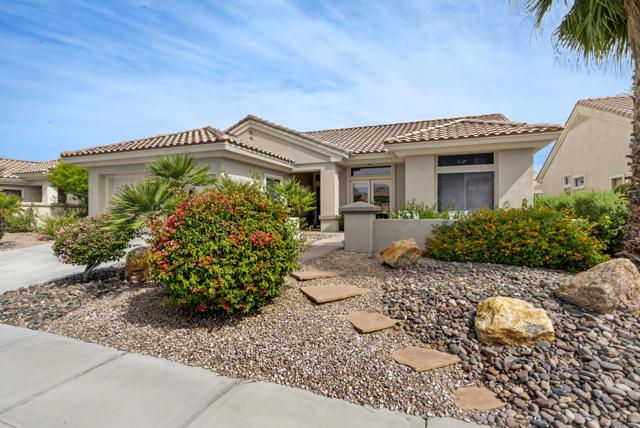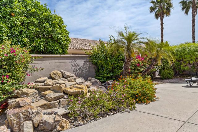 Located within the highly sought-after 55+ community of Sun City Palm Desert, this Lenox floor plan offers a rare opportunity to create your own desert retreat while enjoying a spacious and light-filled layout. With 1,730 square feet, this 2-bedroom, 2-bath home includes a flexible bonus space ideal for a den, office, or additional living area. Upon entry, you're welcomed by an open-concept design that enhances the sense of space throughout. The expansive great room features large-scale tile flooring and a dramatic wall of mirrors, reflecting natural light and creating an airy, inviting atmosphere. Oversized windows and sliding glass doors frame views of the private backyard and bring the outdoors in. The kitchen is bright and functional, complete with abundant cabinetry, generous counter space, a breakfast bar, and a charming dining nook surrounded by windows--perfect for enjoying morning light. The spacious primary bedroom offers a peaceful retreat with ample room, while the ensuite bath features dual vanities, a large walk-in shower enclosure, and plenty of storage. A guest bedroom is well-positioned for privacy and comfort. Step outside to a serene backyard with mature desert landscaping, winding hardscape, and a covered patio--offering a quiet setting for relaxing or entertaining. The front courtyard entry adds charm and curb appeal and easily enjoyable with french doors. Exterior of home was painted in 2023. Priced to sell, this home presents an incredible value and the perfect canvas to update and customize to your personal style. Sun City Palm Desert offers a true resort lifestyle with 3 clubhouses, an indoor pool, multiple outdoor pools, two championship golf courses, tennis, pickleball, bocce ball, and even a softball field. With over 80 clubs and social groups, there's something for everyone, while the HOA includes cable TV and internet--making everyday living both convenient and connected.